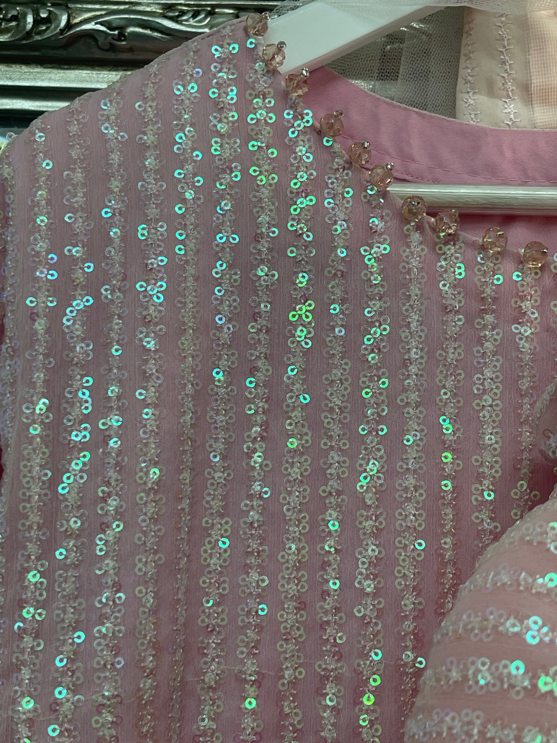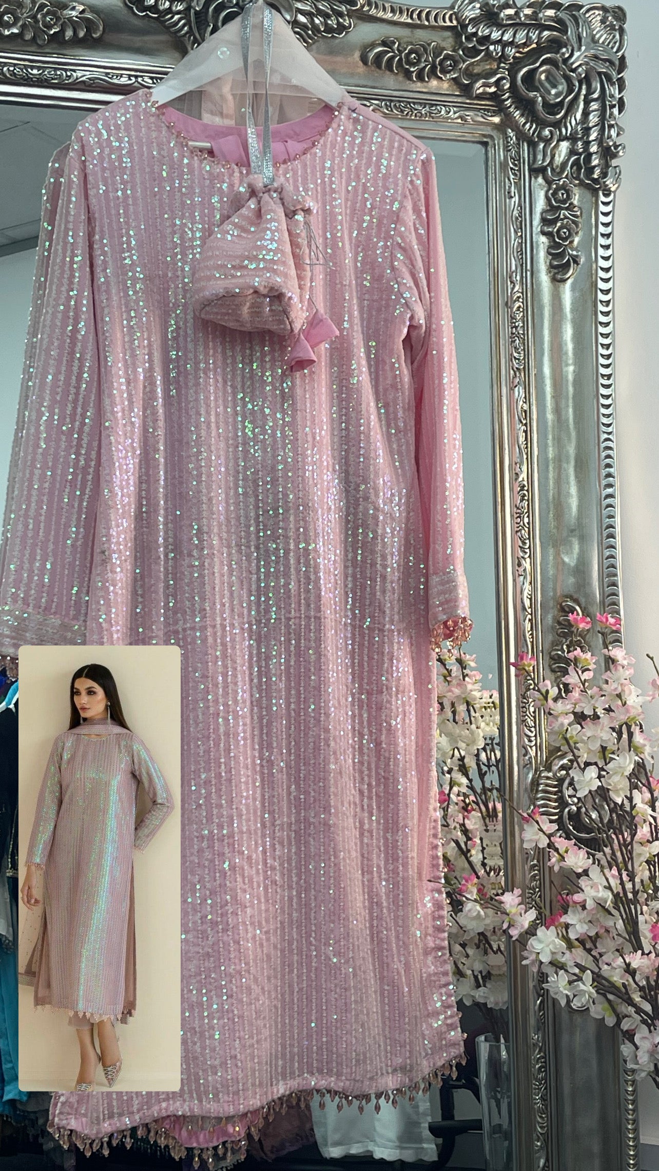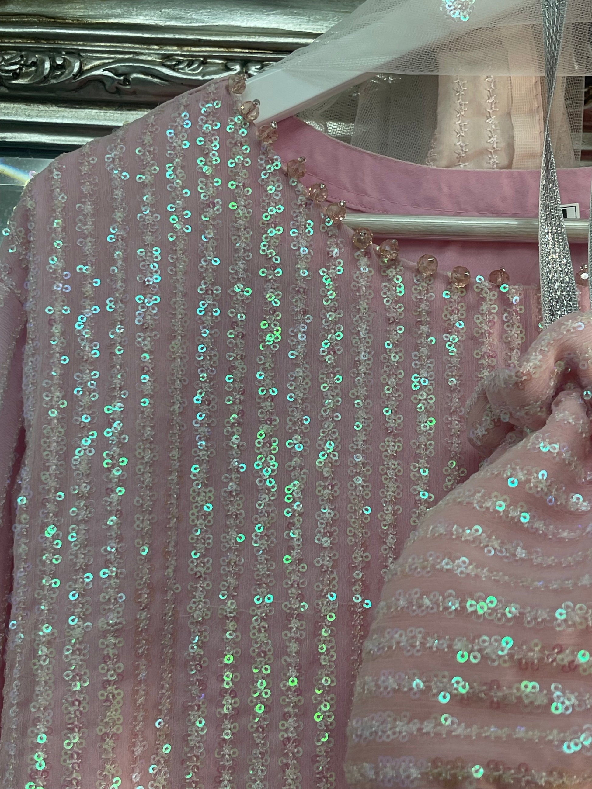 stunning suits in chiffon material. Heavily embroidered with thread and sequins.