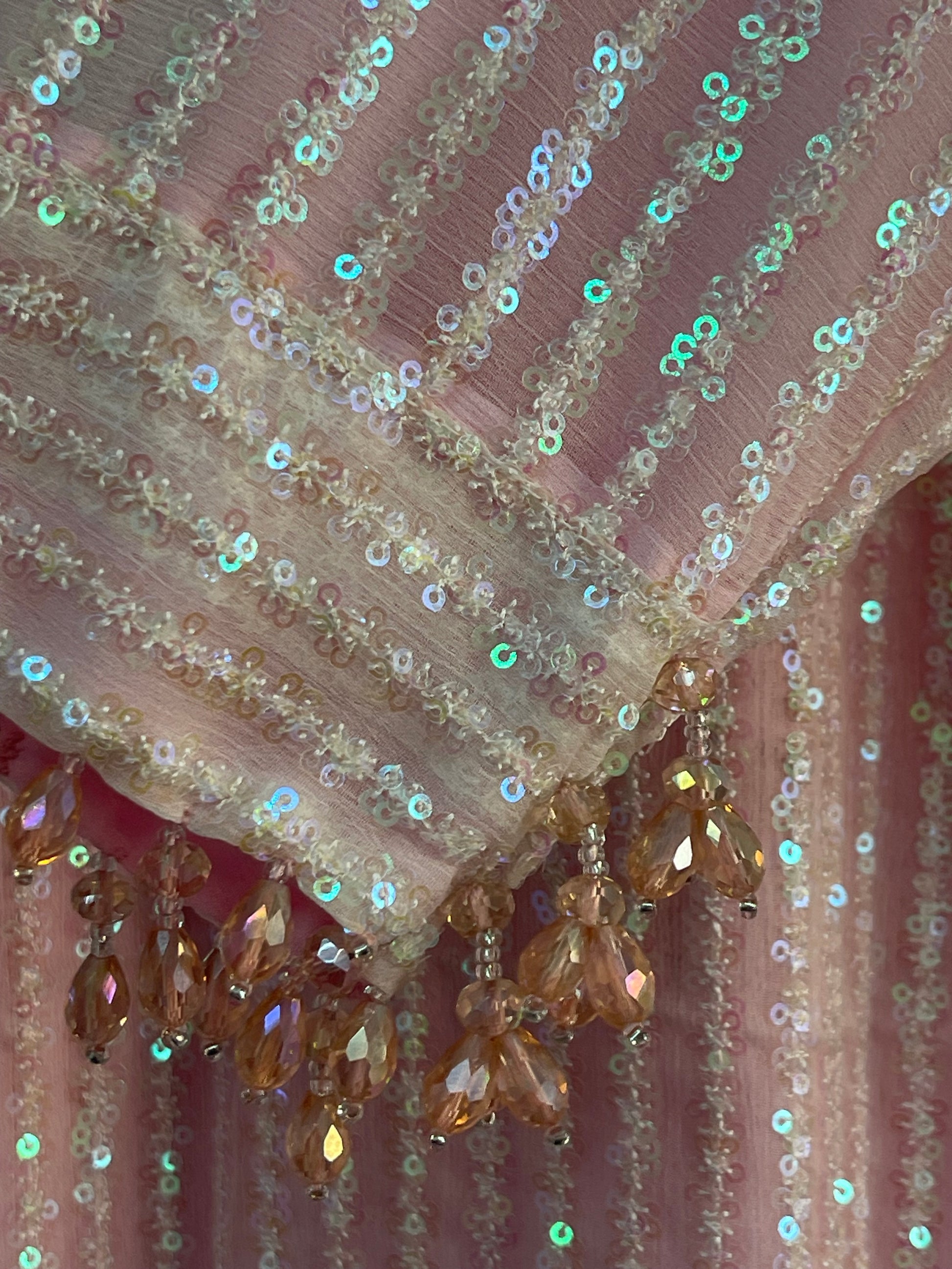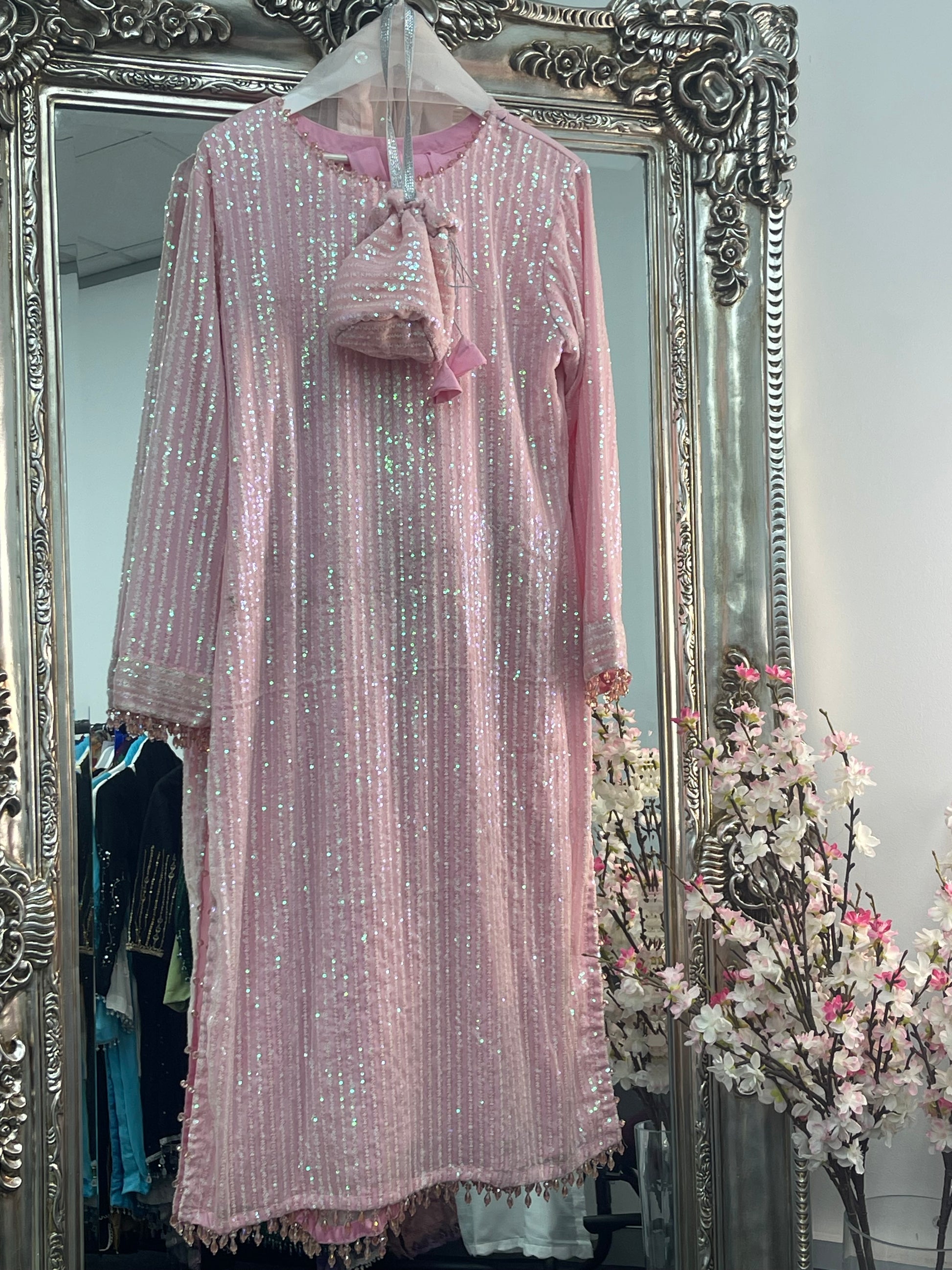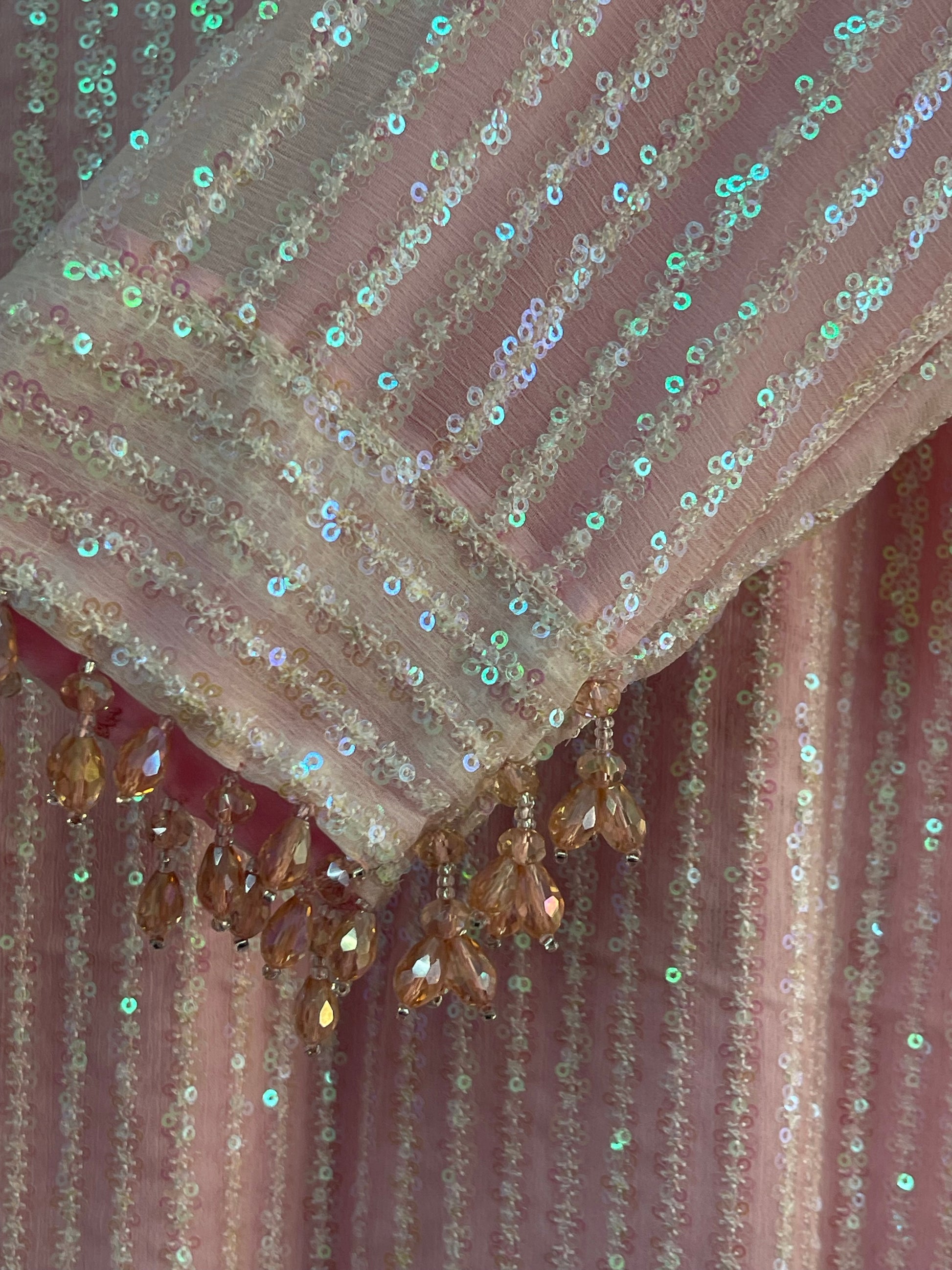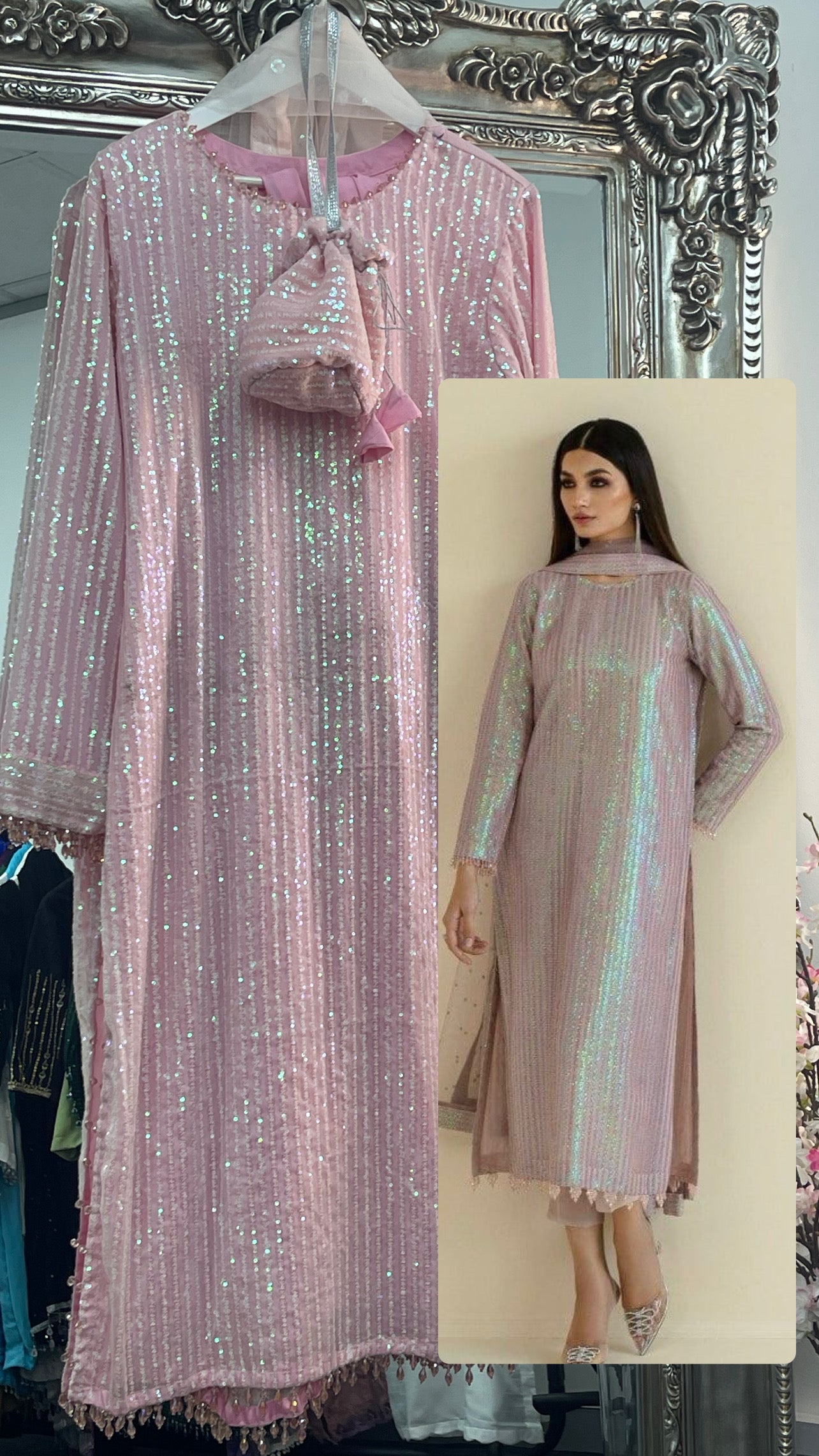stunning suits in chiffon material. Heavily embroidered with thread and sequins.
