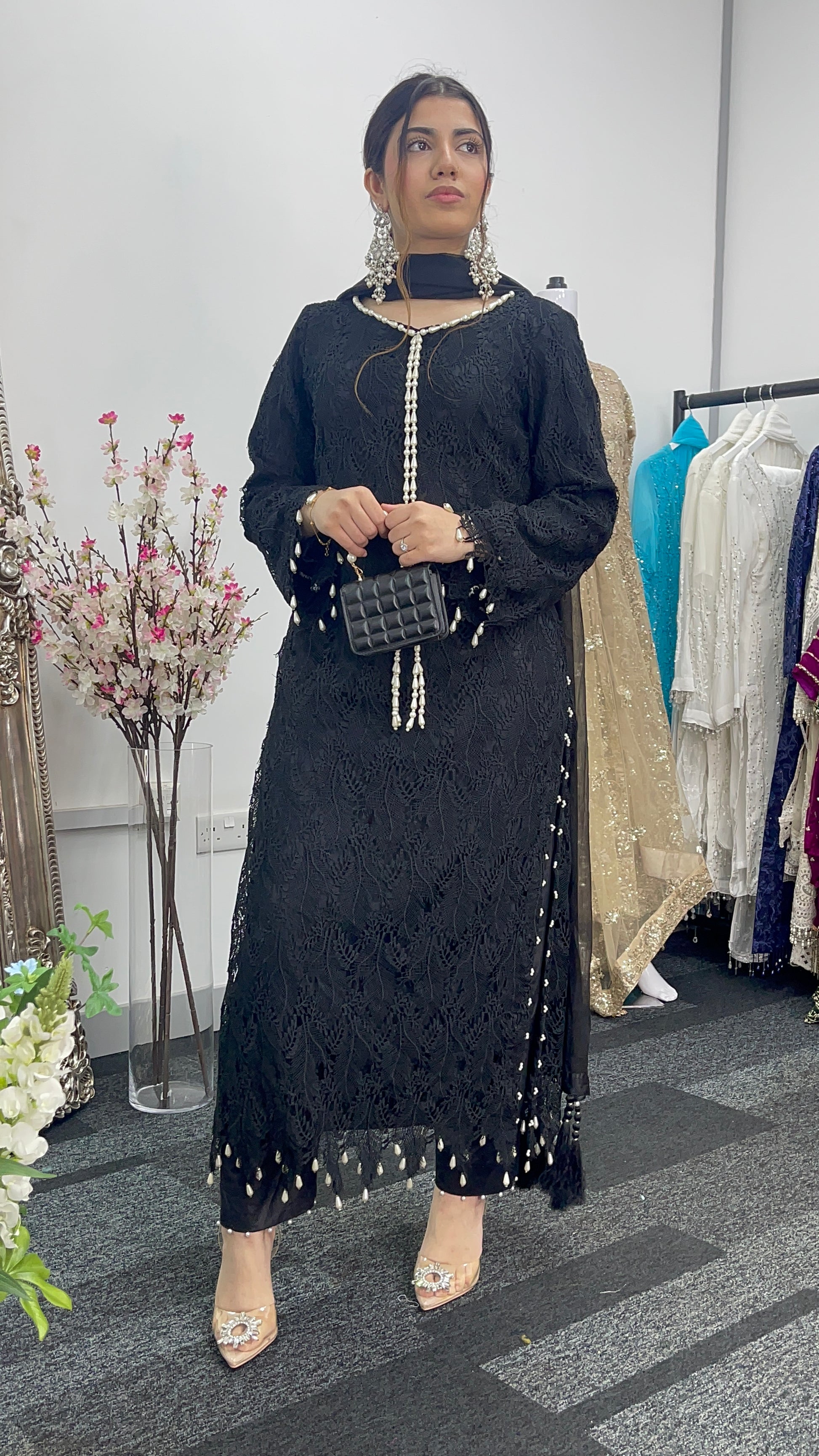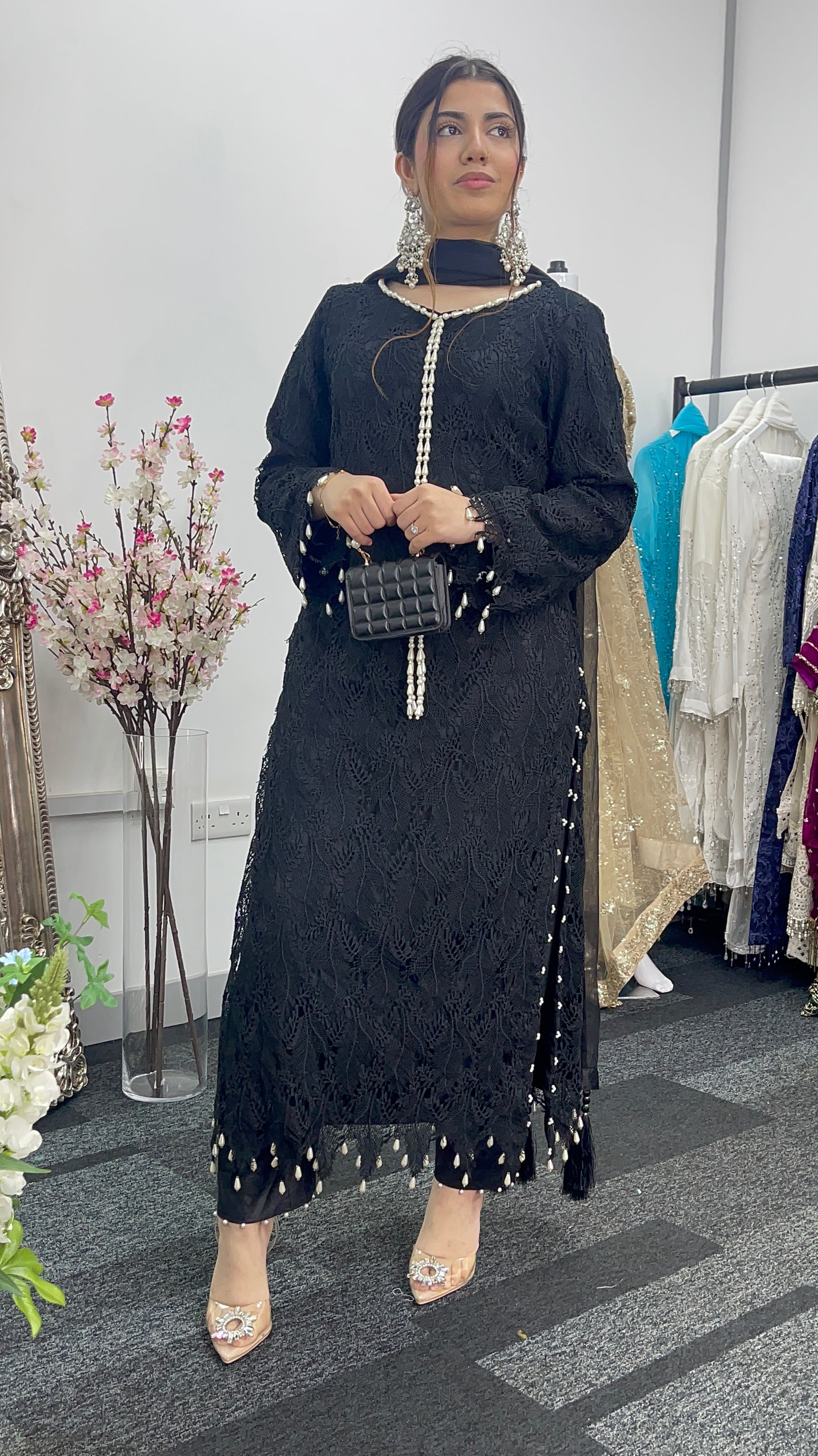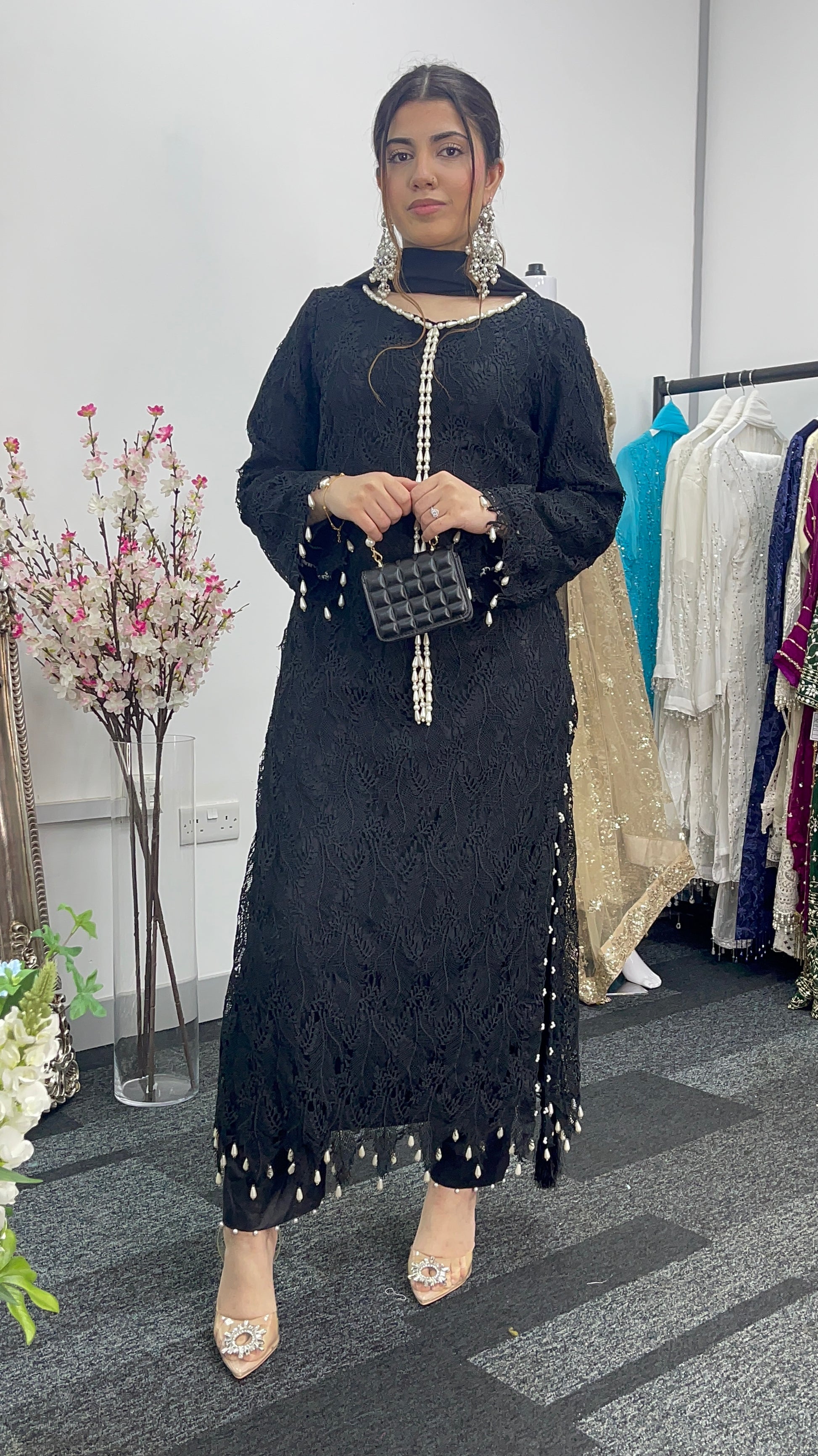 • Stunning crochet net shirt with heavy cutwork front, back & sleeves