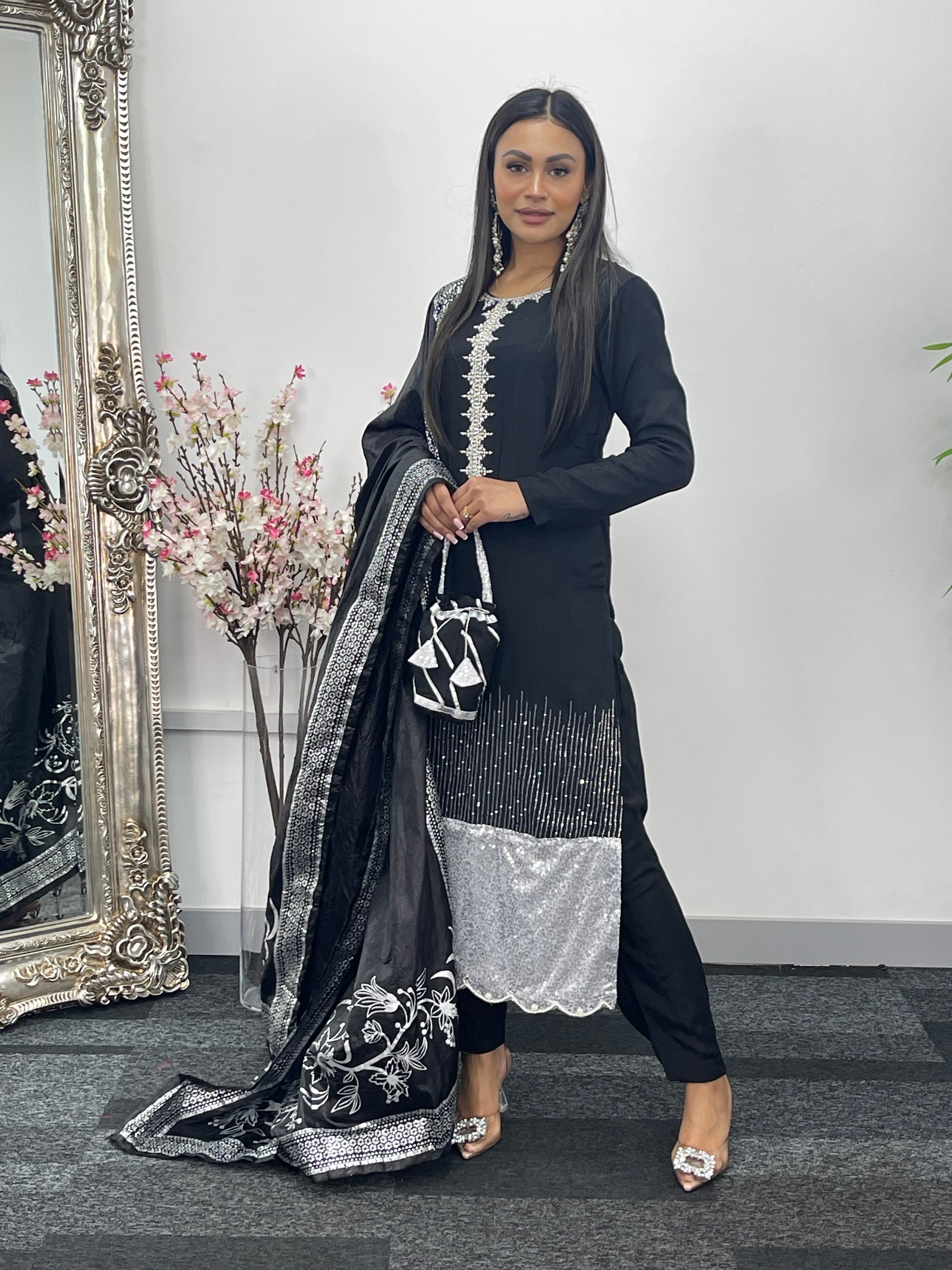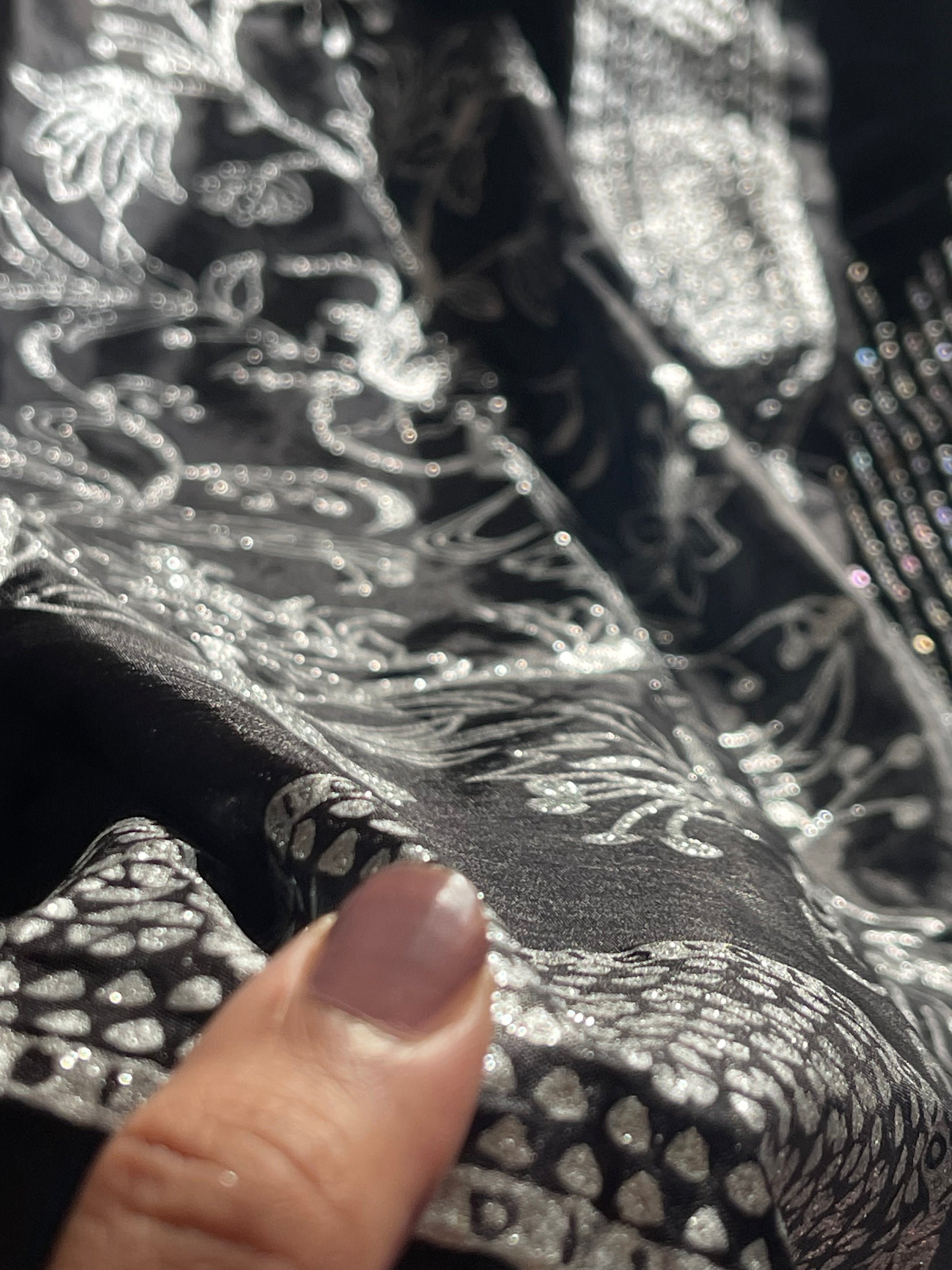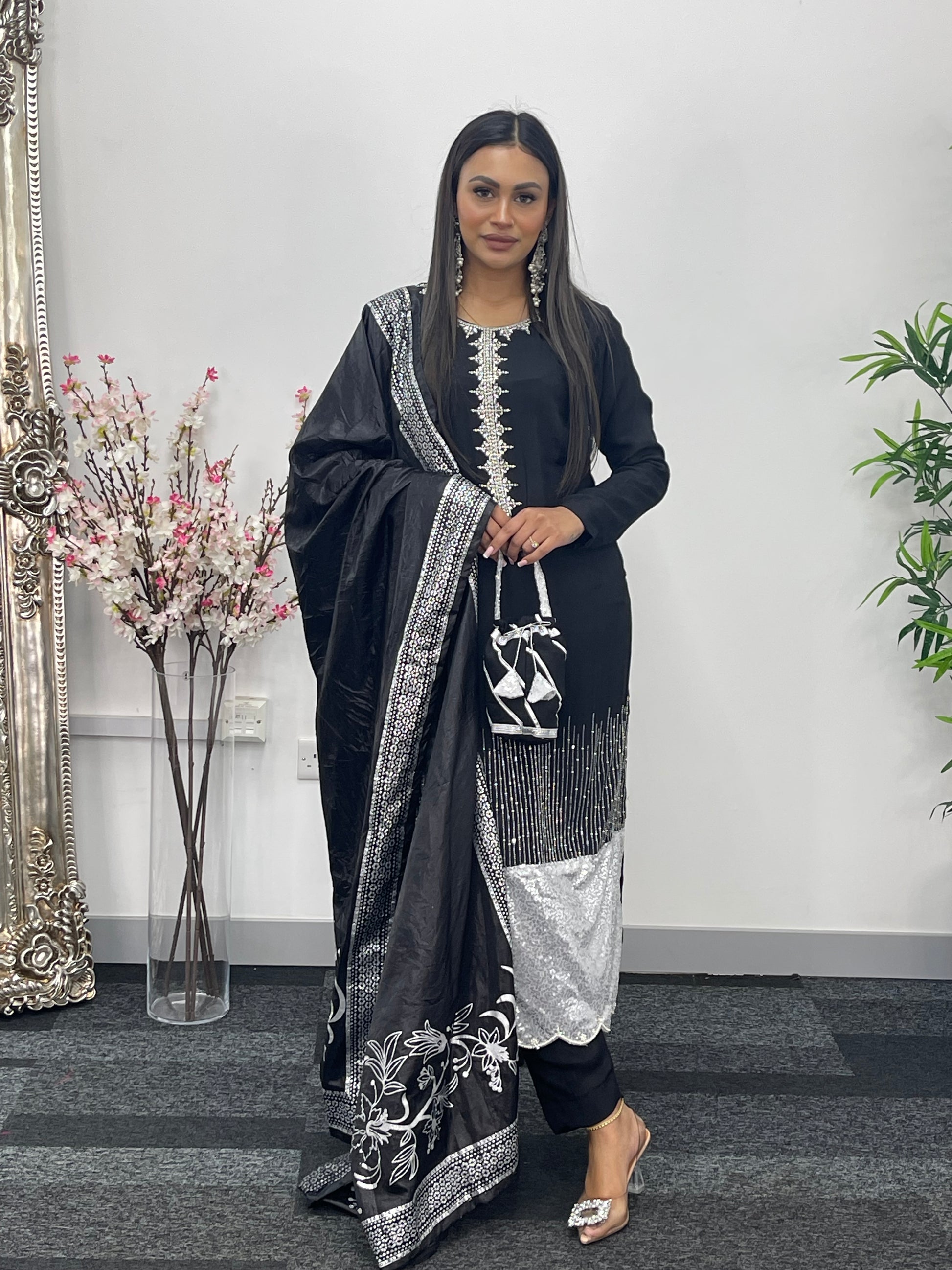 Elevate your wardrobe with our stunning Black Ensemble! Inspired by the exquisite beauty of Lulusar, this piece is a perfect blend of elegance and artistry.