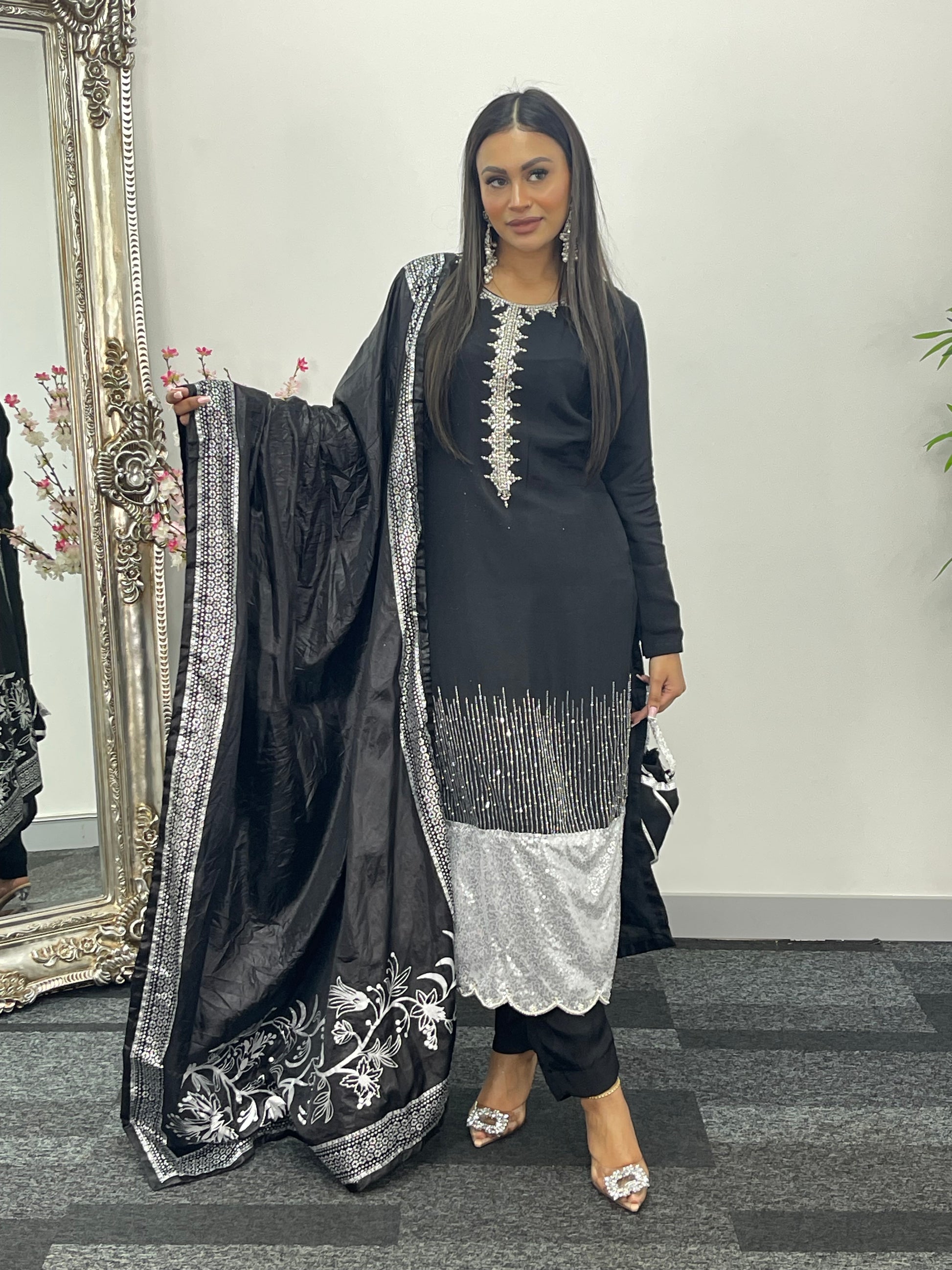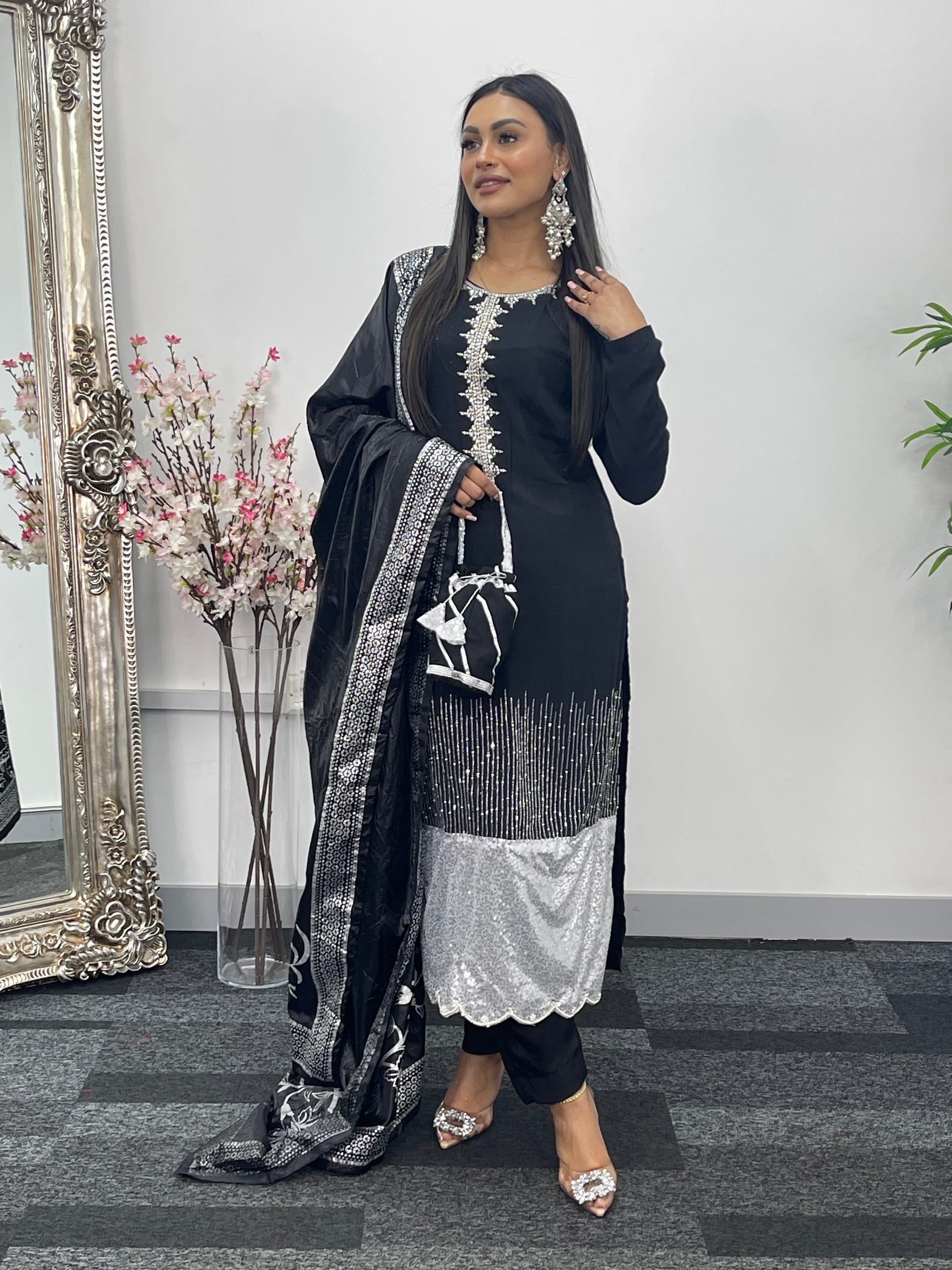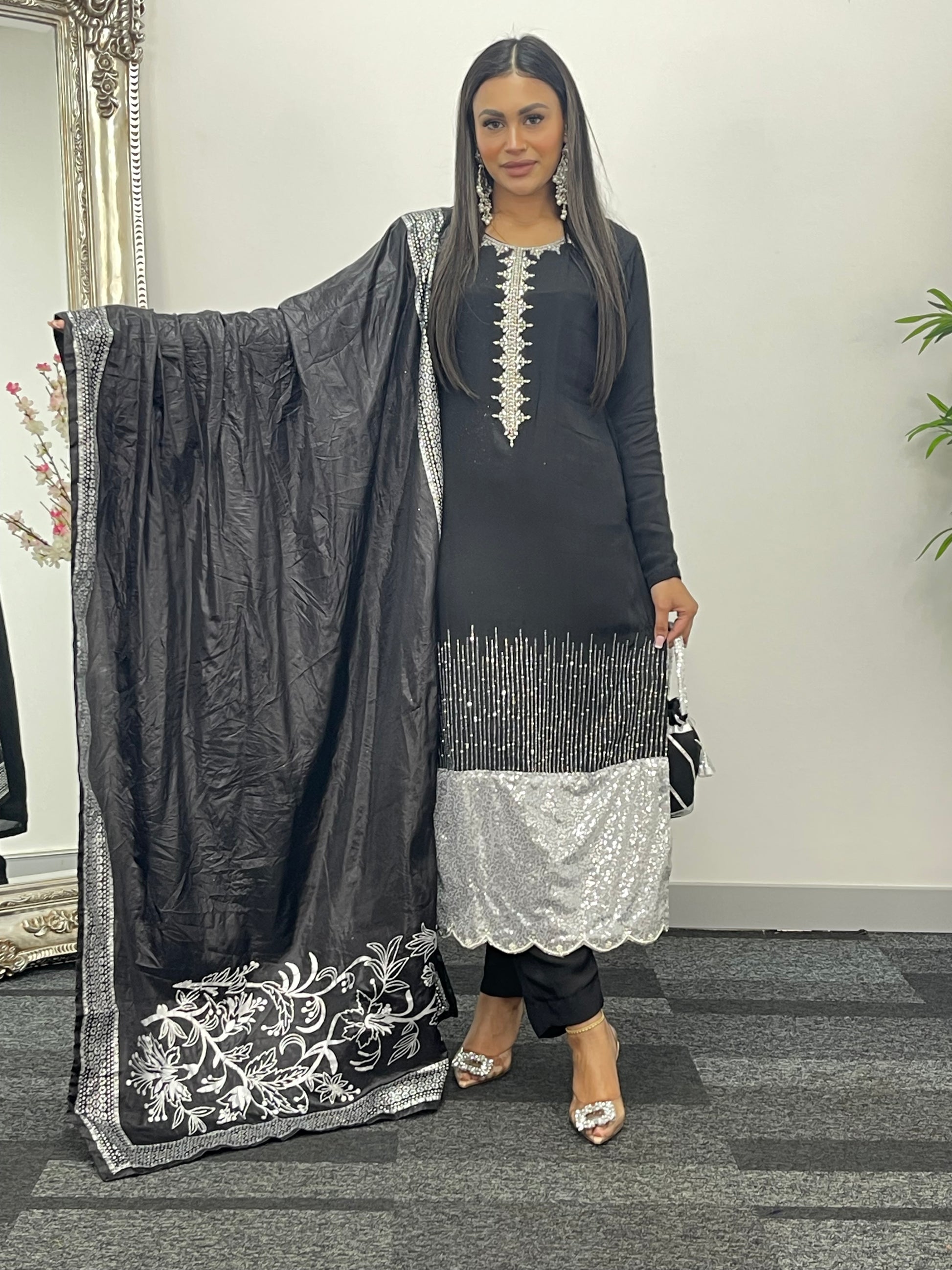 Elevate your wardrobe with our stunning Black Ensemble! Inspired by the exquisite beauty of Lulusar, this piece is a perfect blend of elegance and artistry.