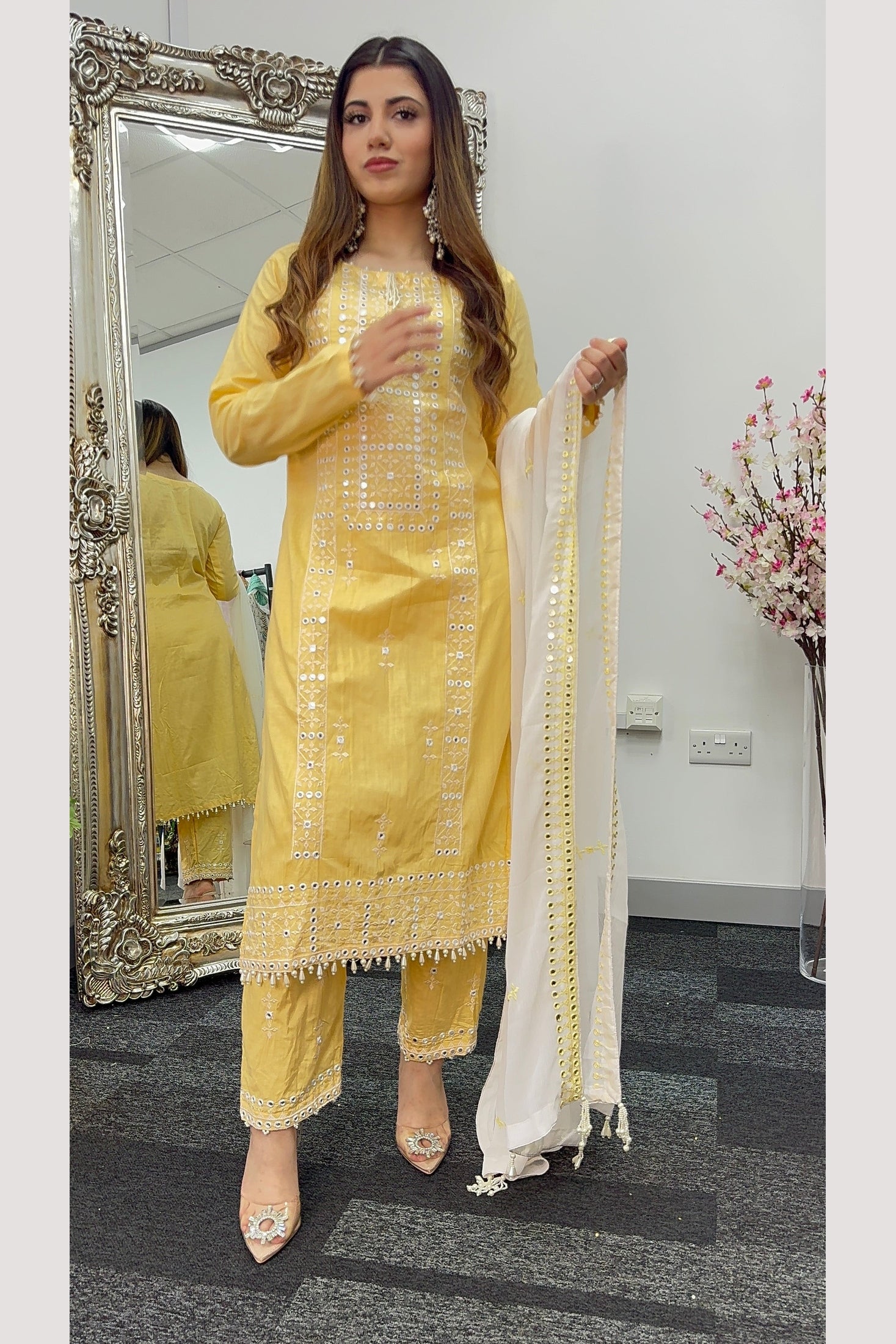 hanging pearls detailing on the daman