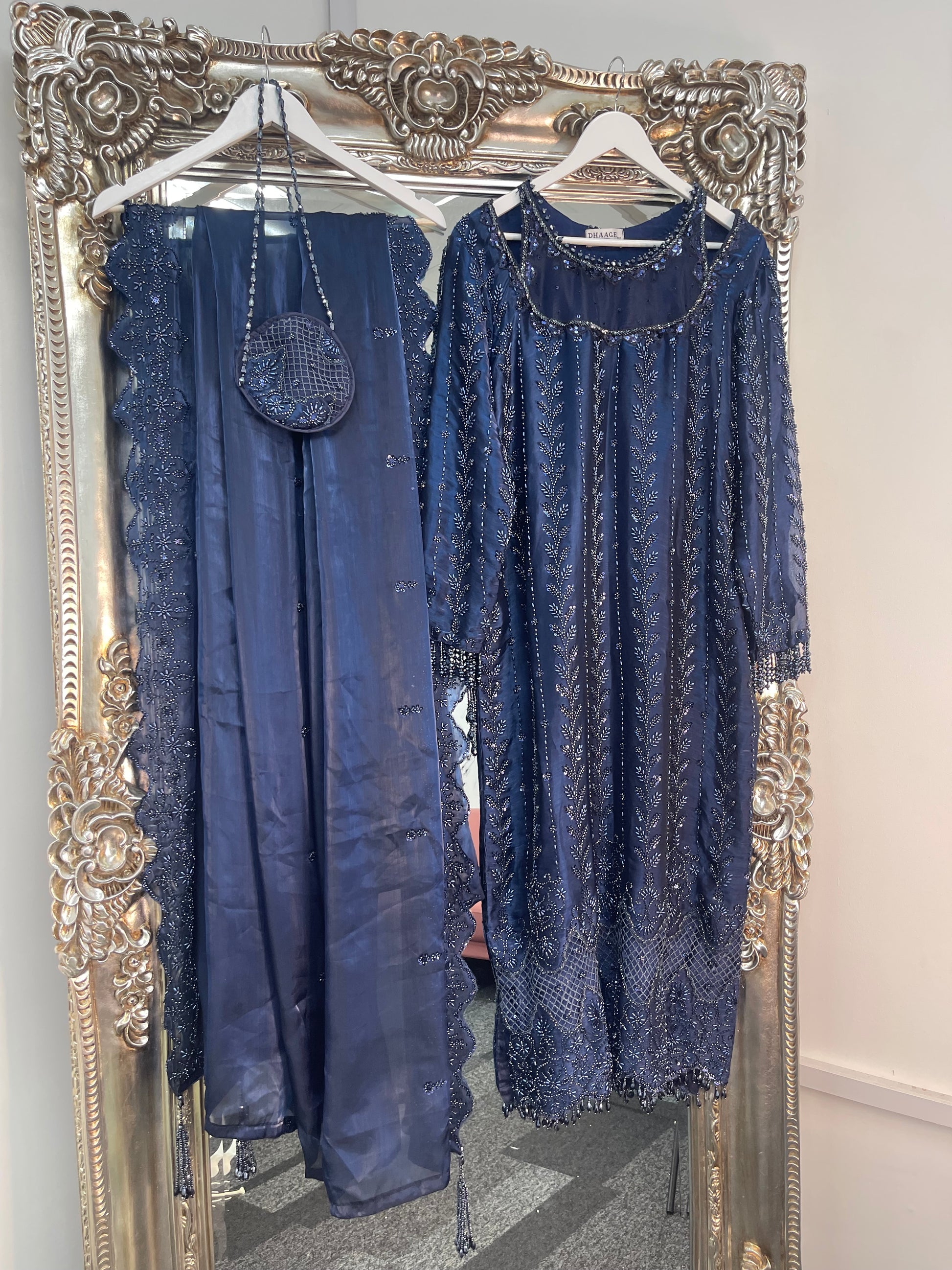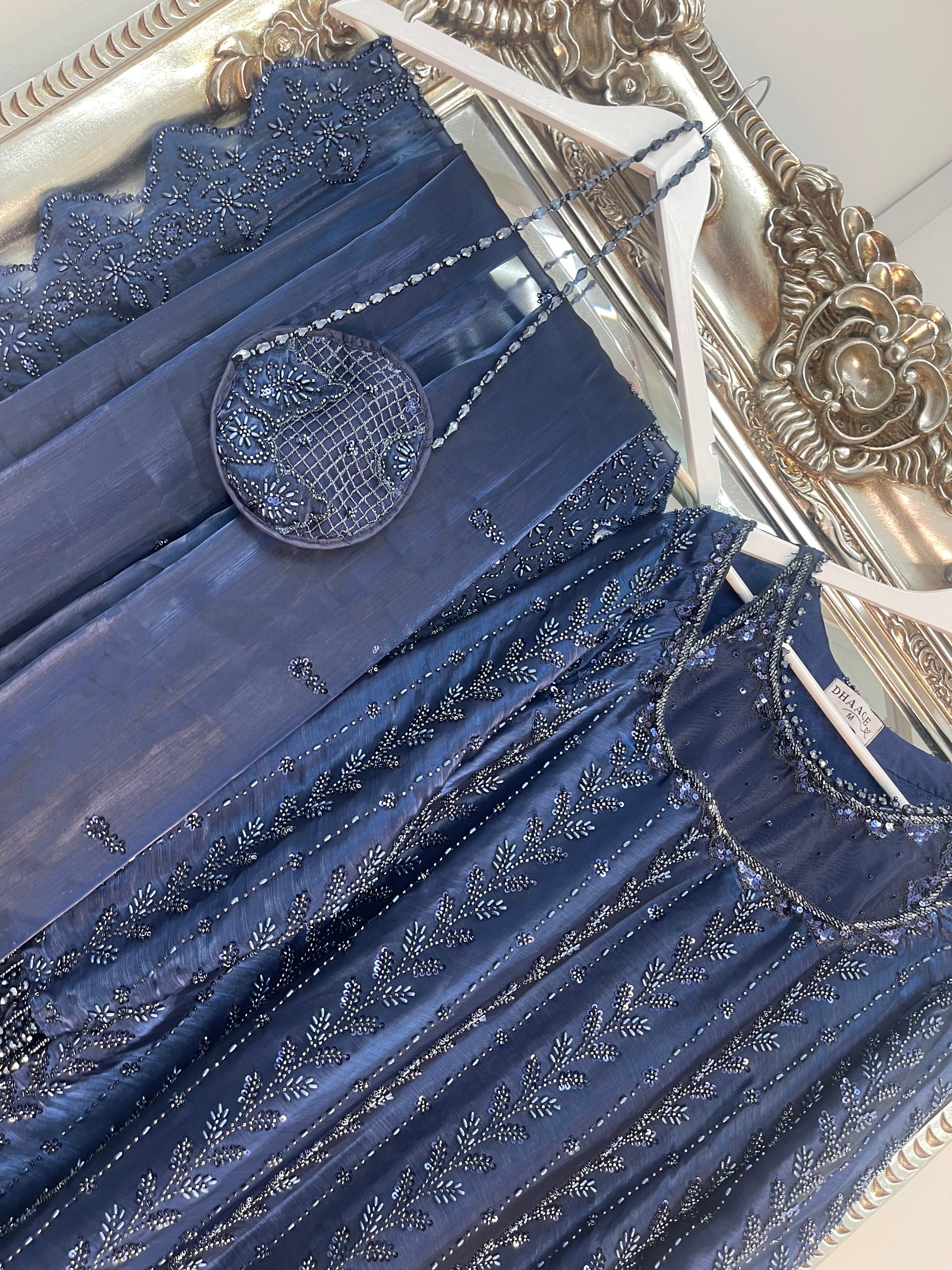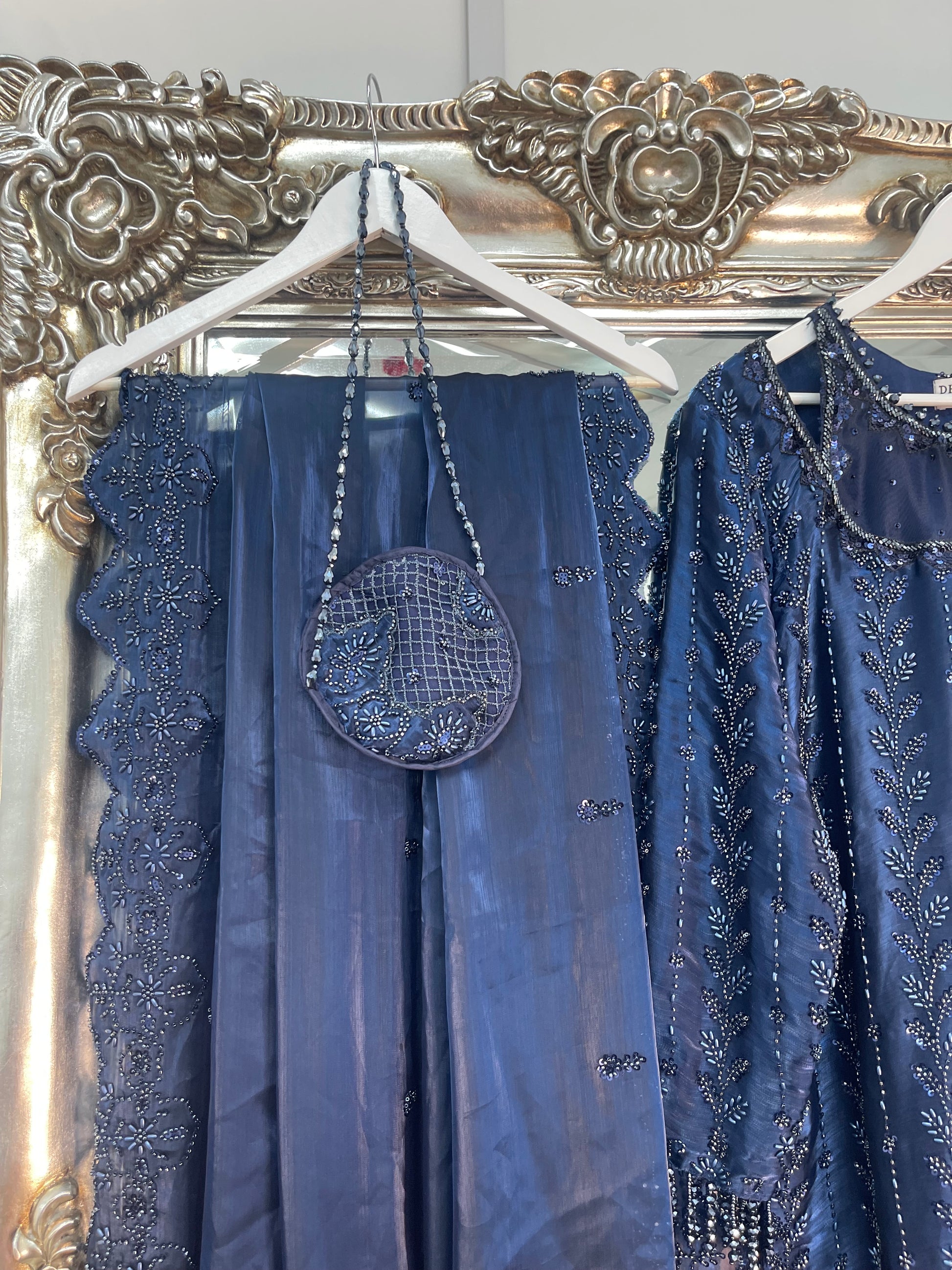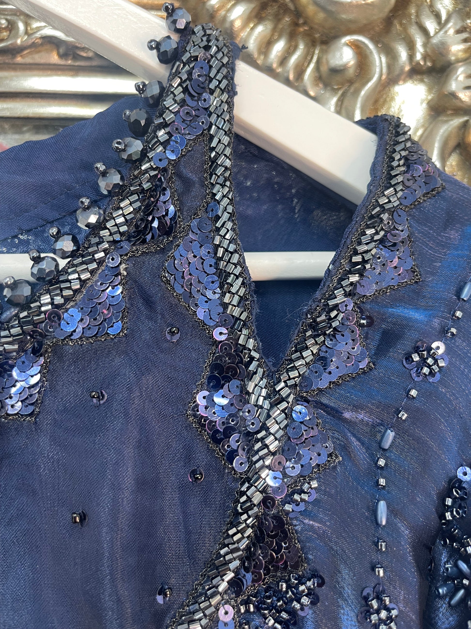 Introducing a stunning silk shirt adorned with intricate heavy cutdana embellishments.