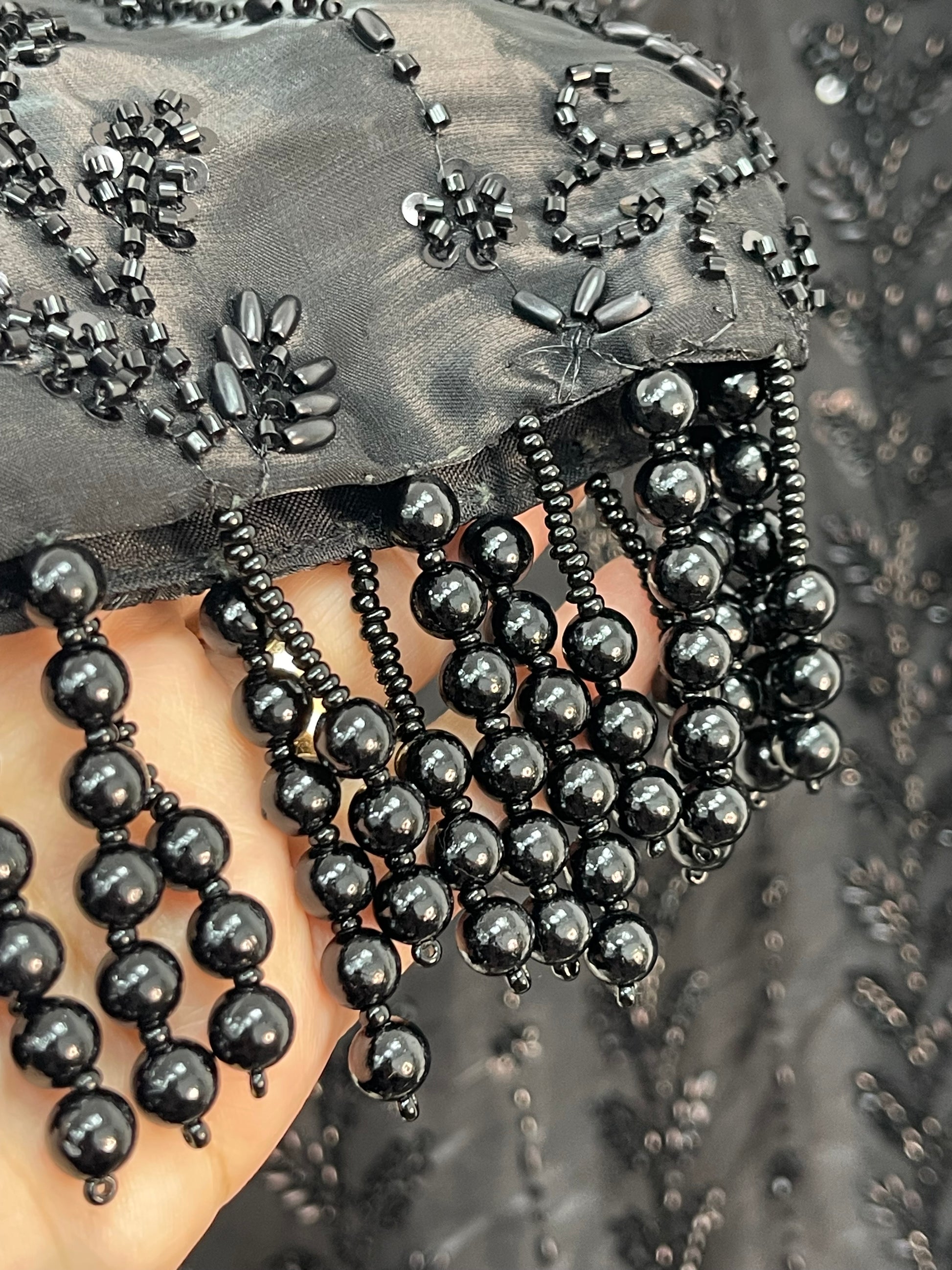 This elegant piece features sleeves with crystal detailing and charming latkans.