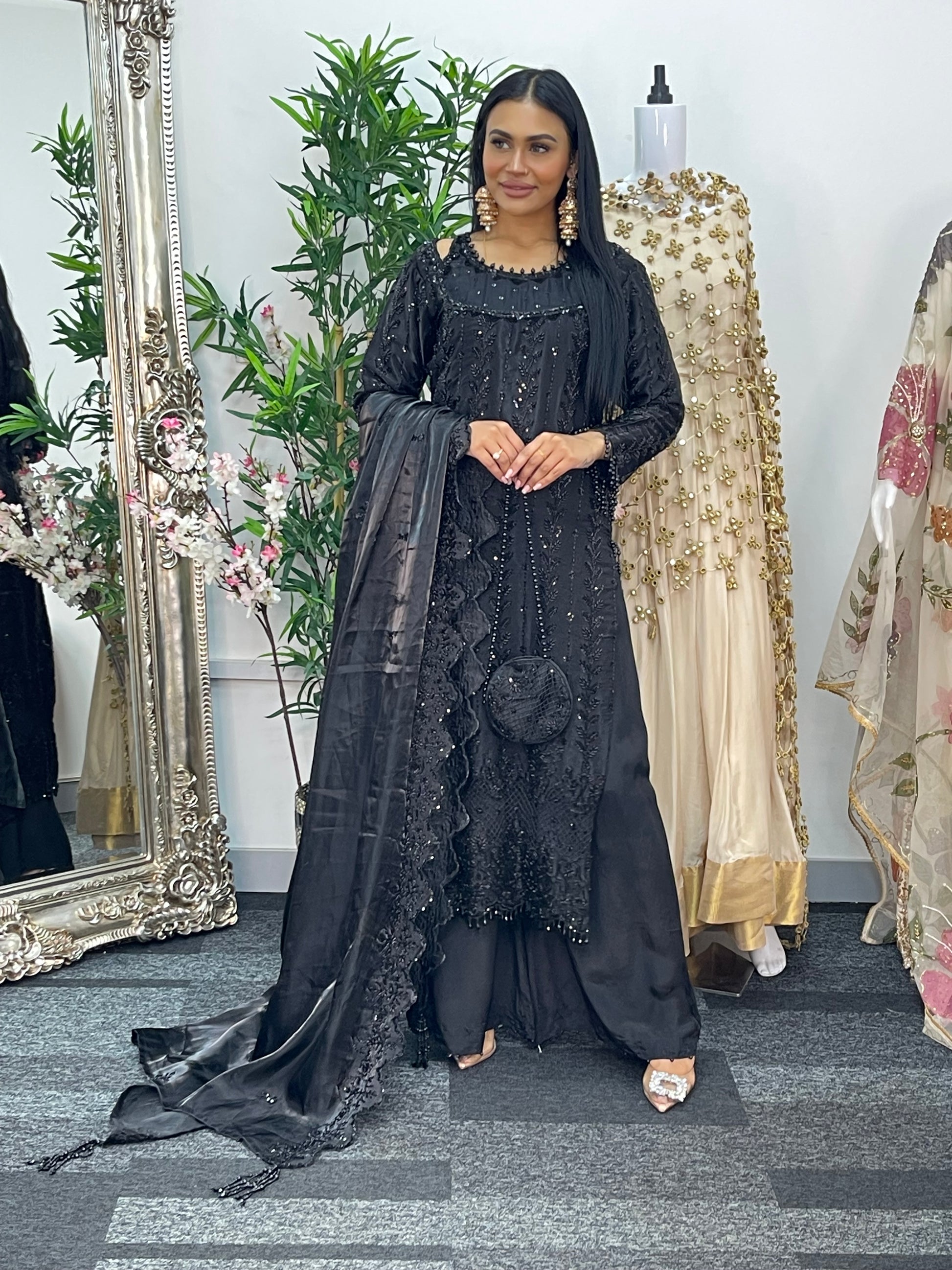 Stunning cutwork on daman and sleeves. Sleeves are fully lined.