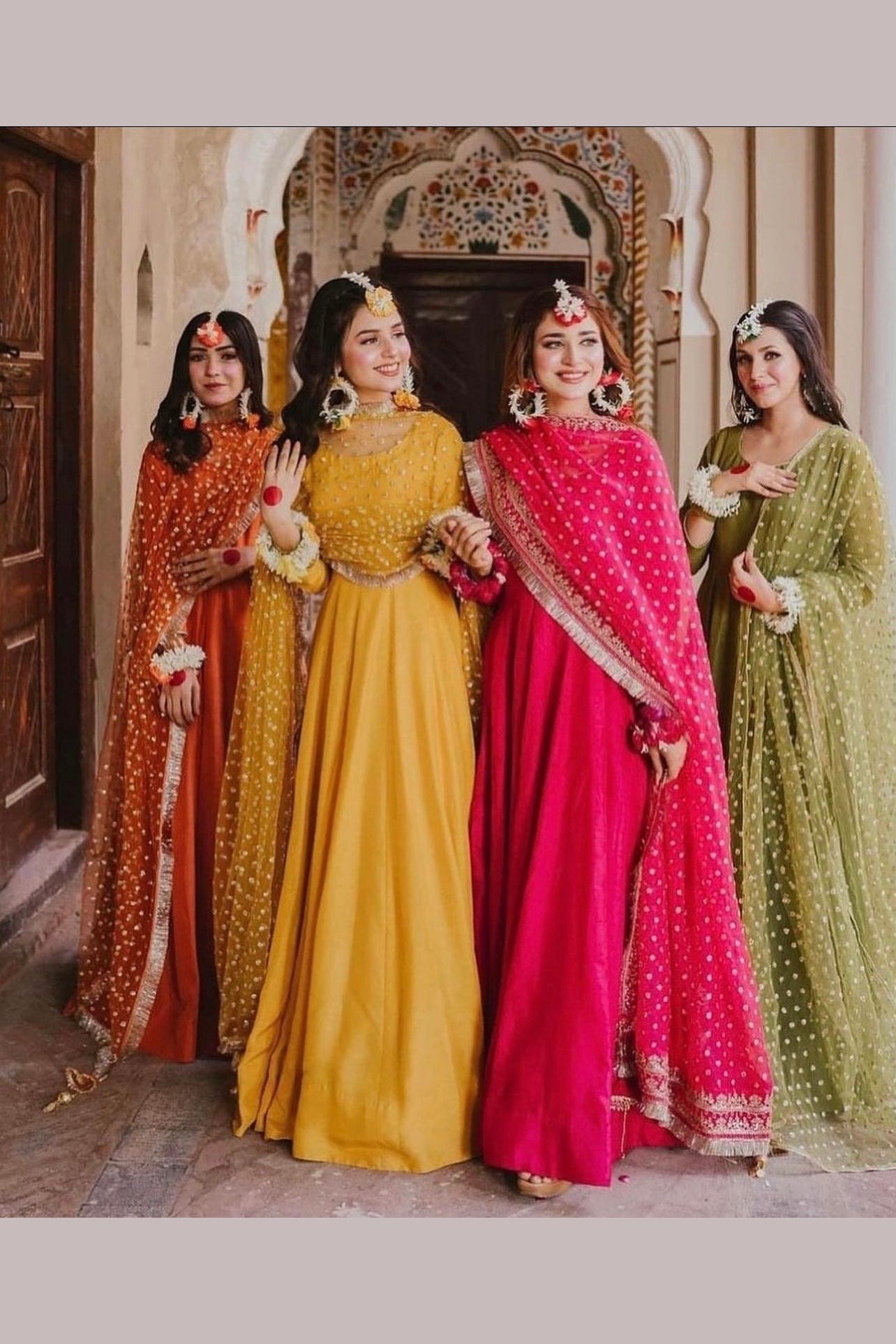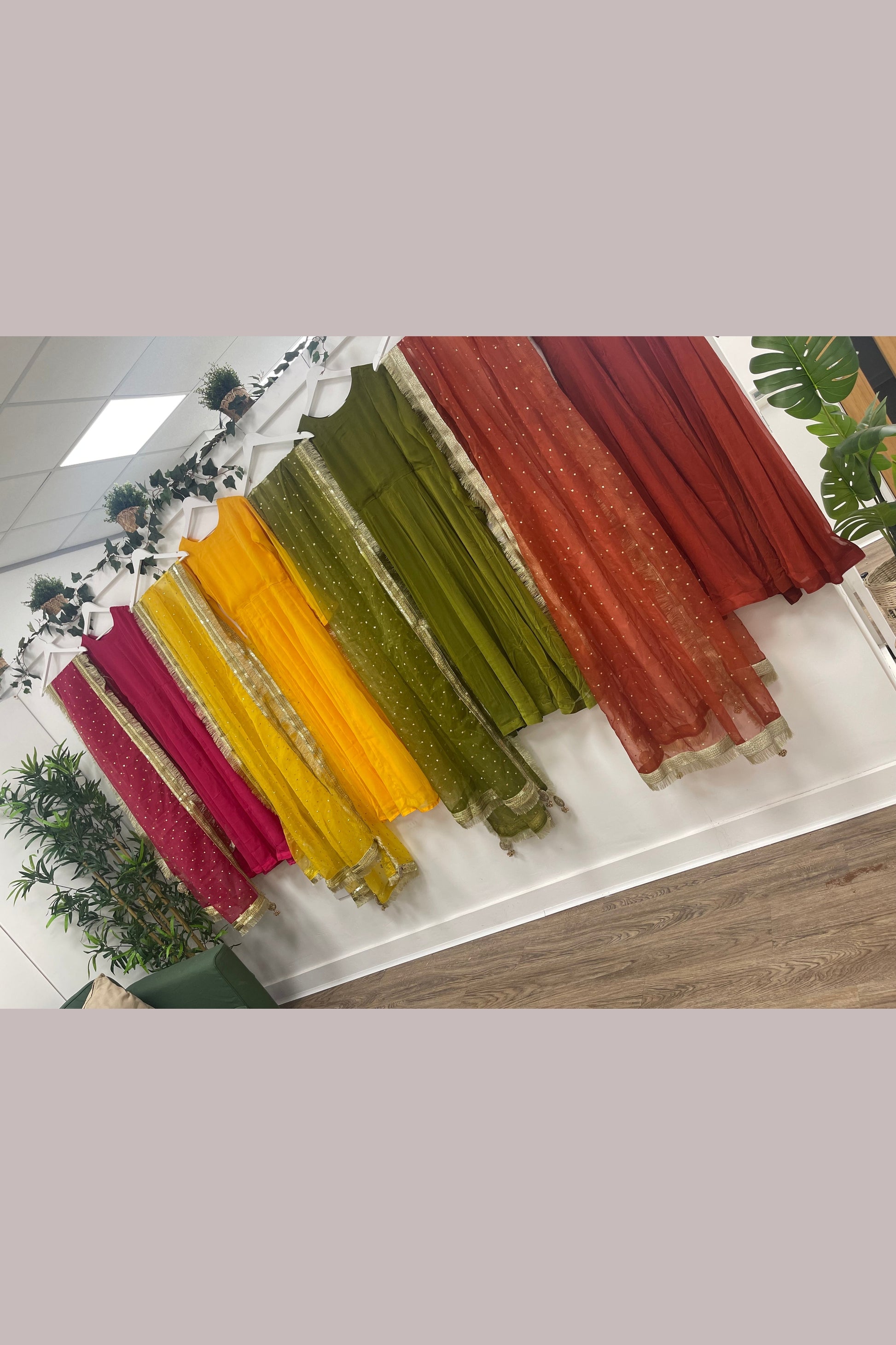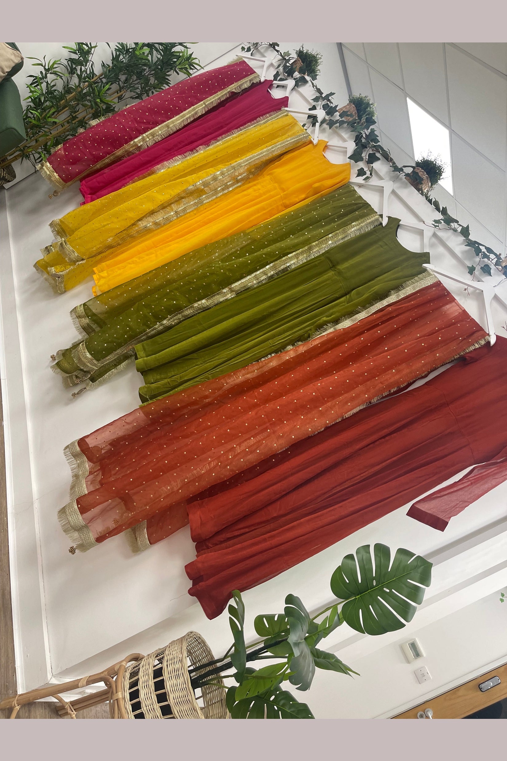 Chulbul - Mehndi Dress - Pink - Yellow- Green - Orange - Anarkali