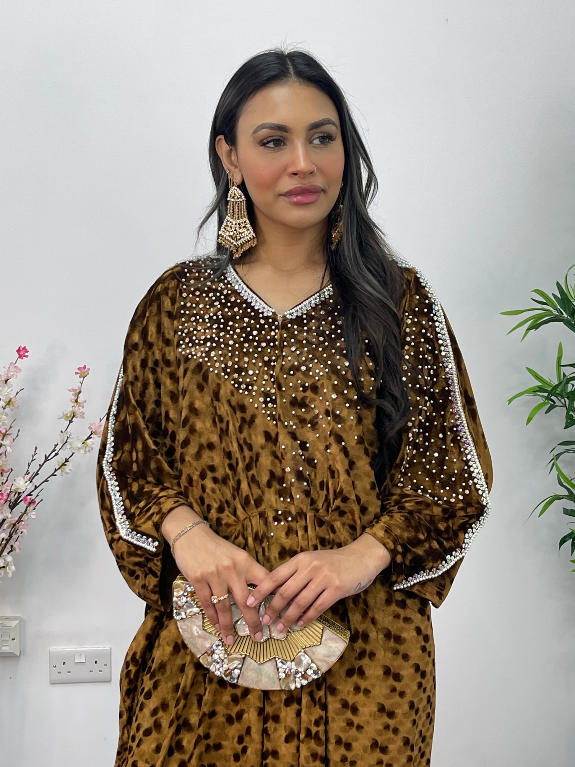 Coffee Brown Kaftaan - Diamond Kaftan - Velvet AA