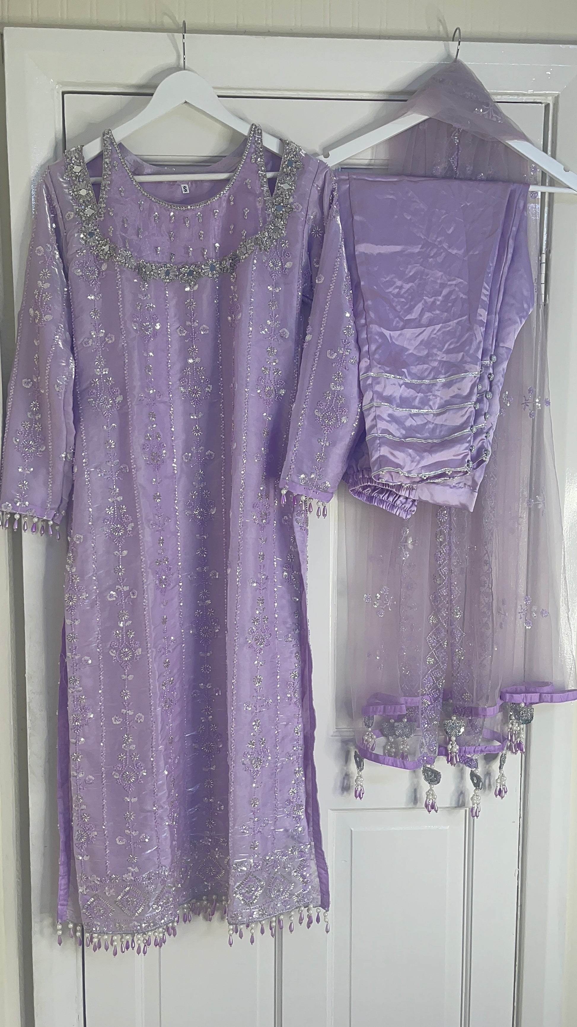 Ronaq- Korean Silk Cut Dana - Party Wear - Lilac