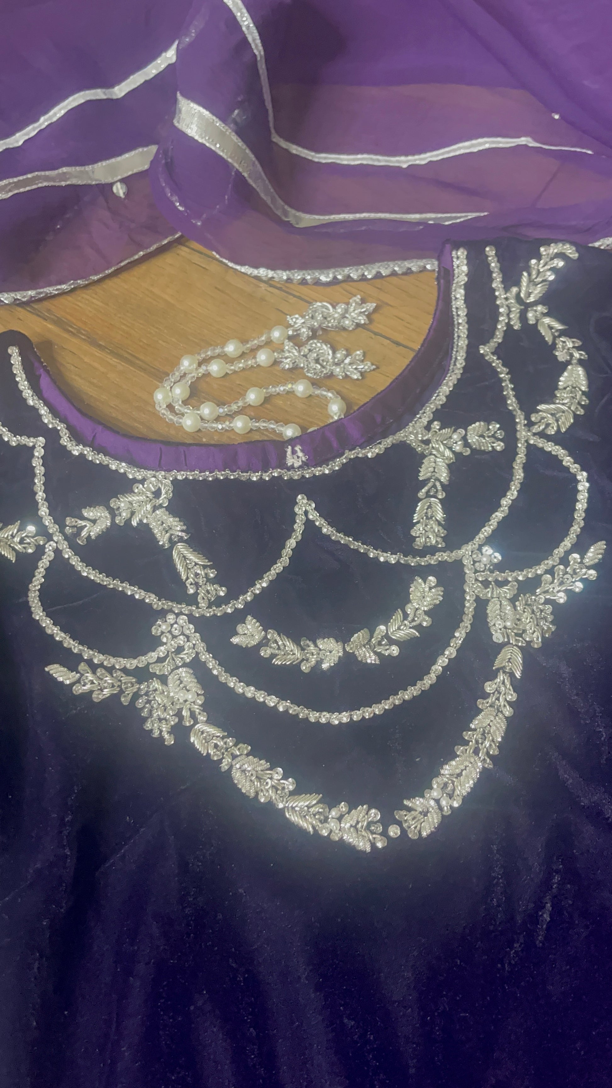 offering a complete and refined look for any occasion. Discover the epitome of luxury fashion with our Purple Velvet Pret.