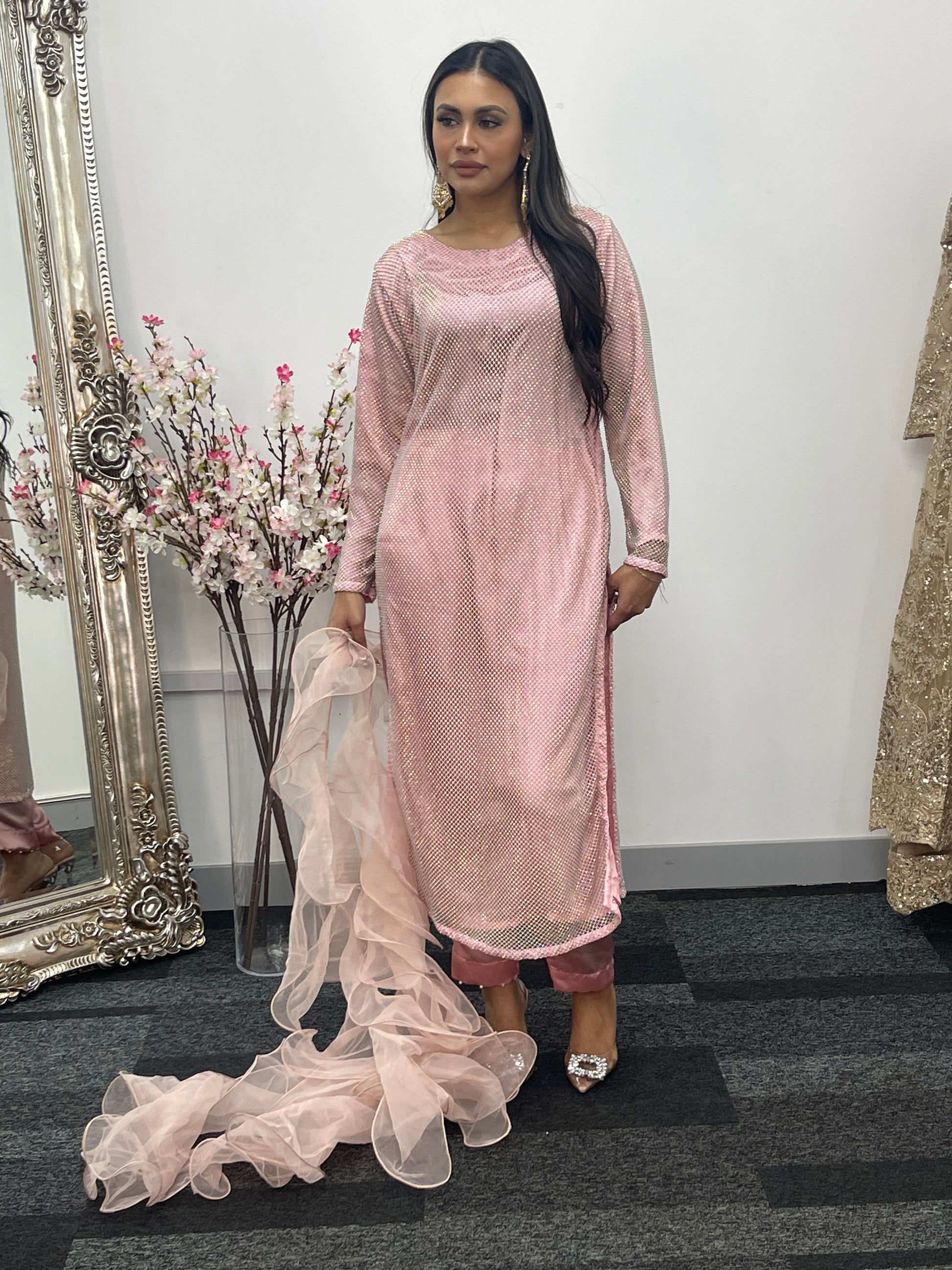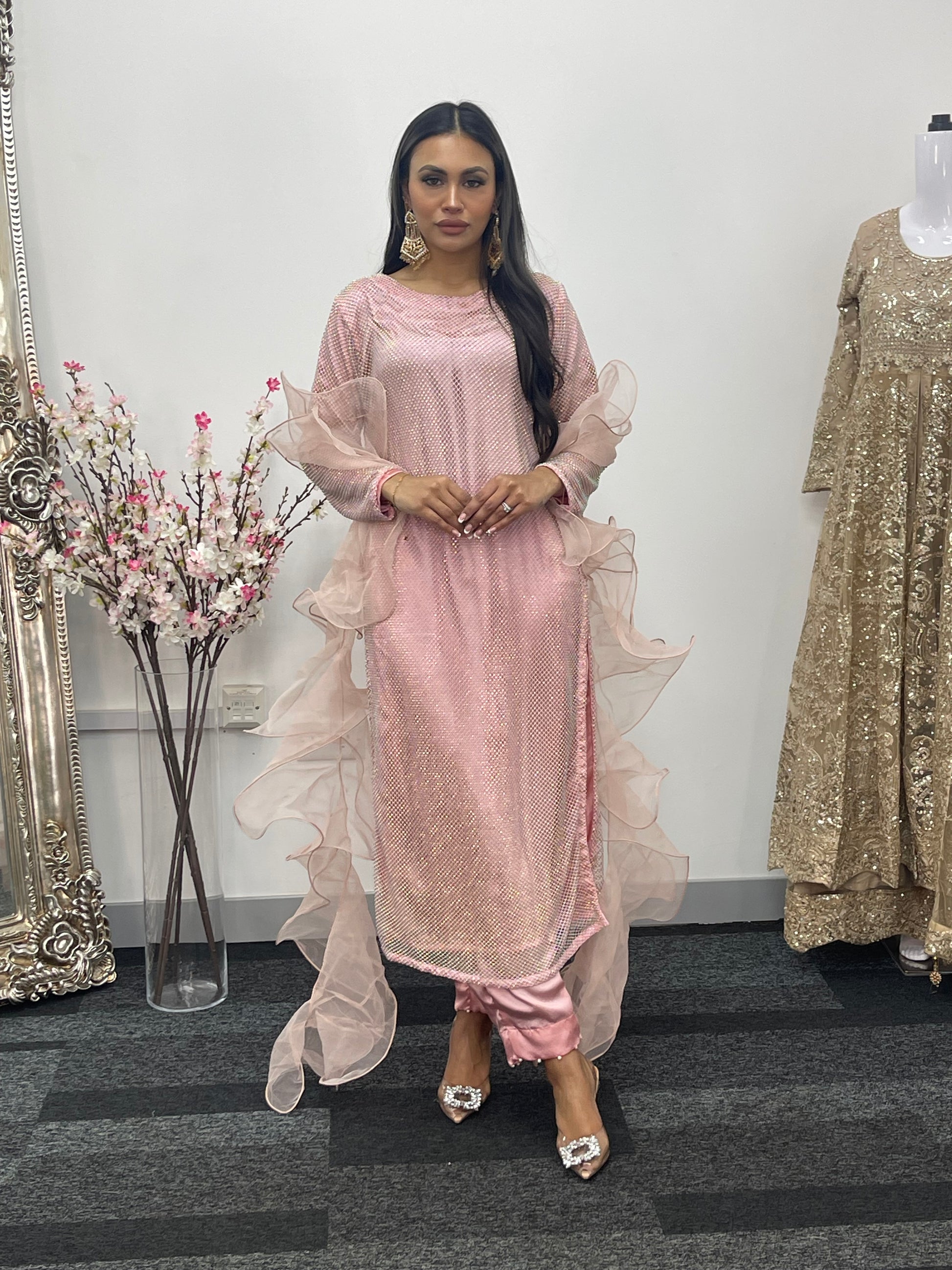 • Romantic Ruffled Dupatta: A flowing, ruffled dupatta (scarf) completes the look, adding a touch of ethereal beauty.