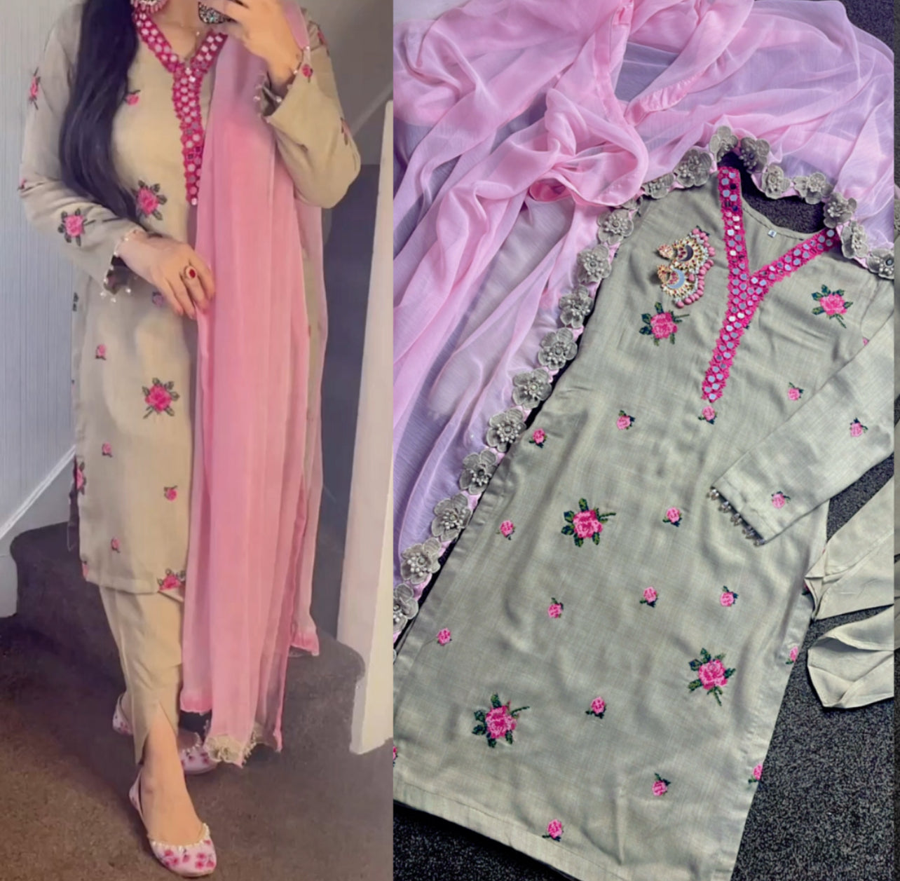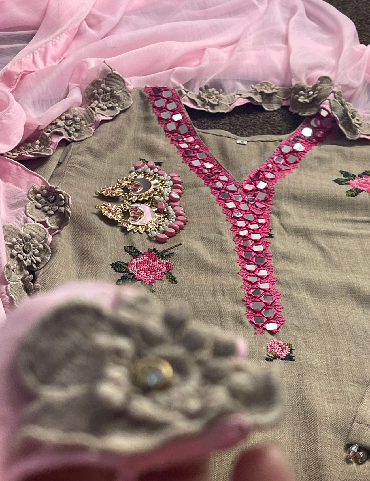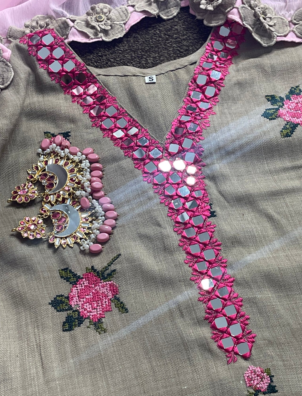 • Classic shawl shirt with sindhi tanka embroidery front, back & sleeves