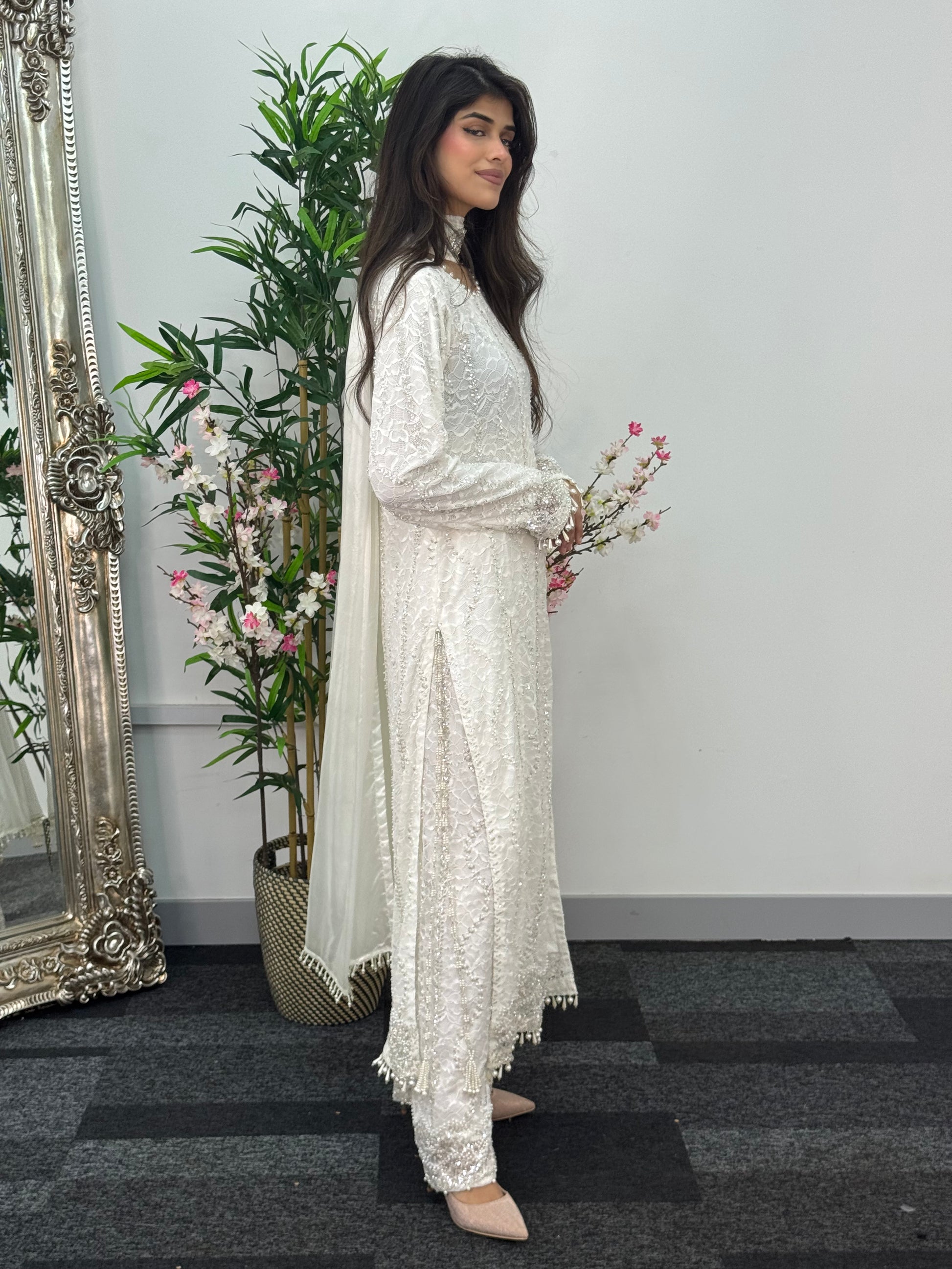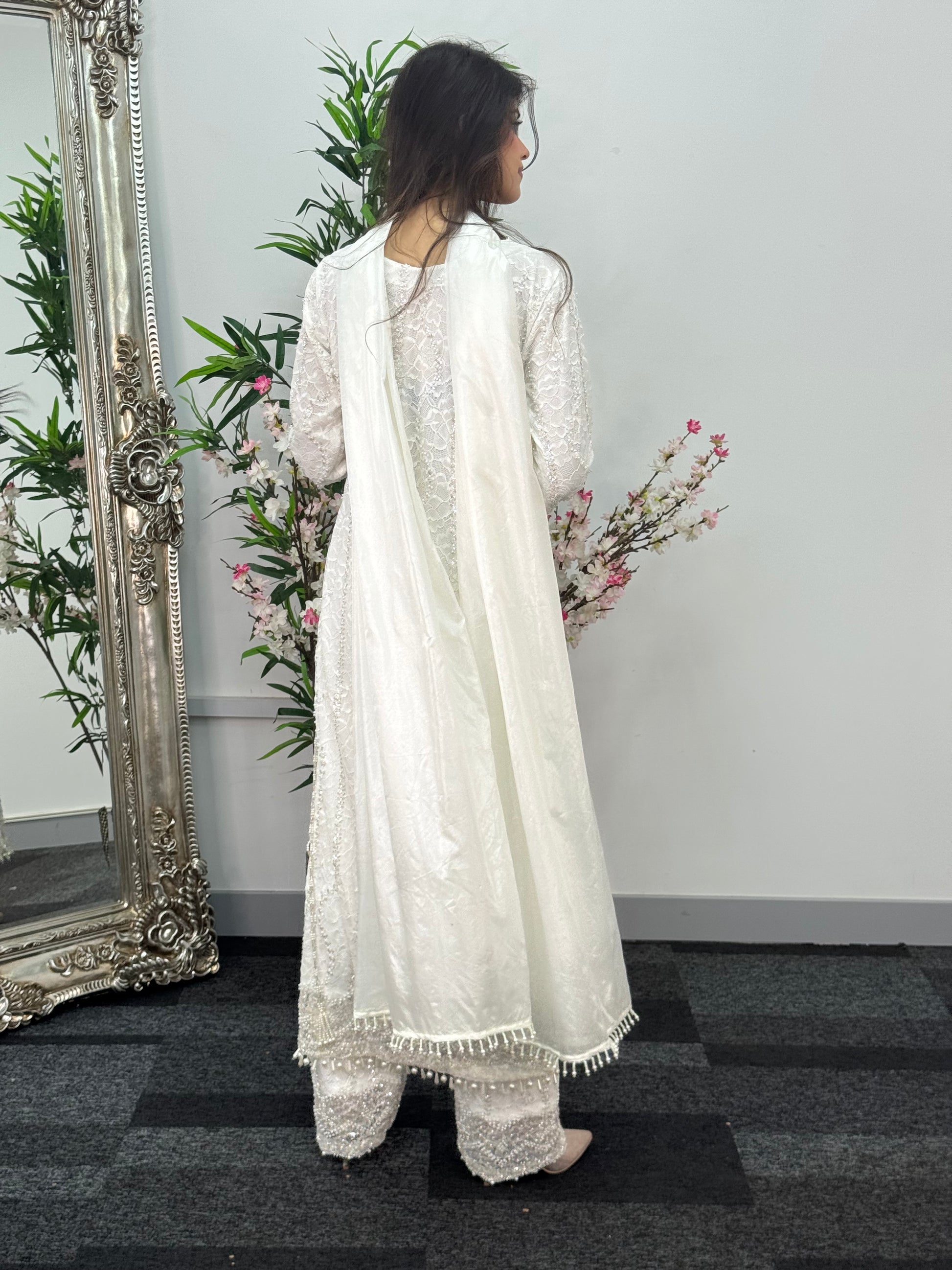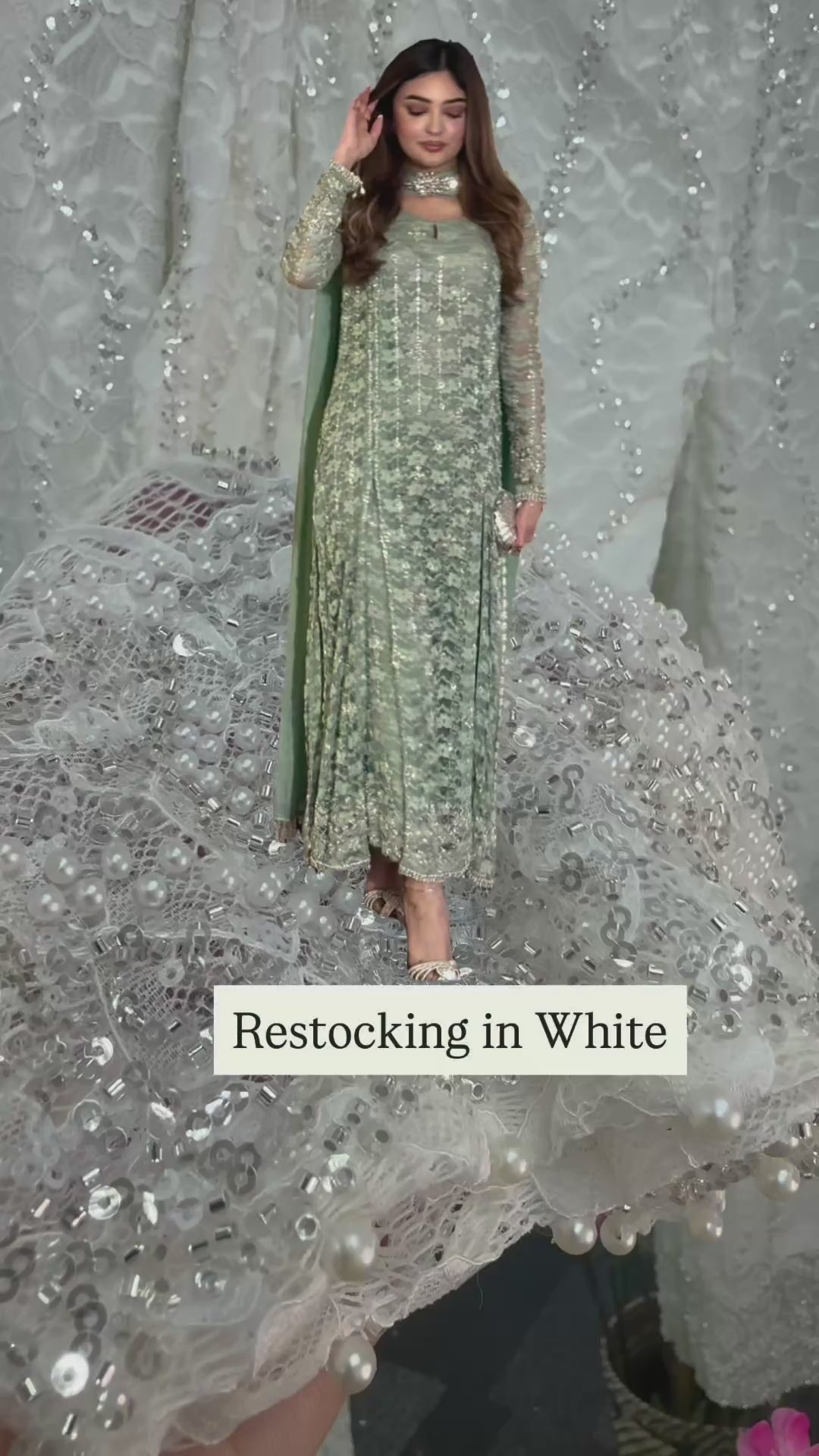 • High quality pearls details on the sleeves, front & back side of the daman