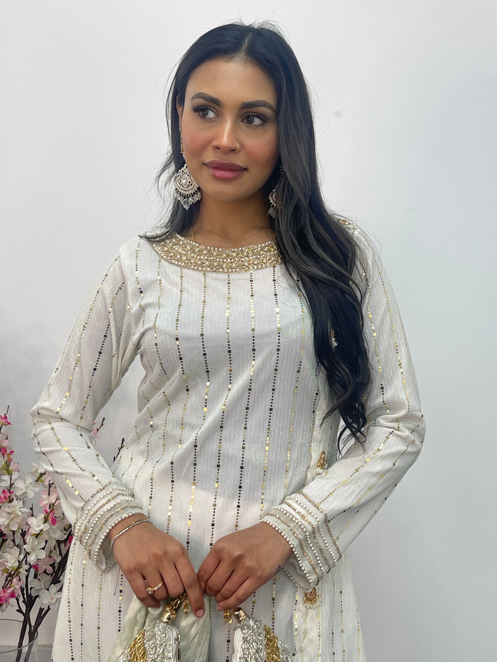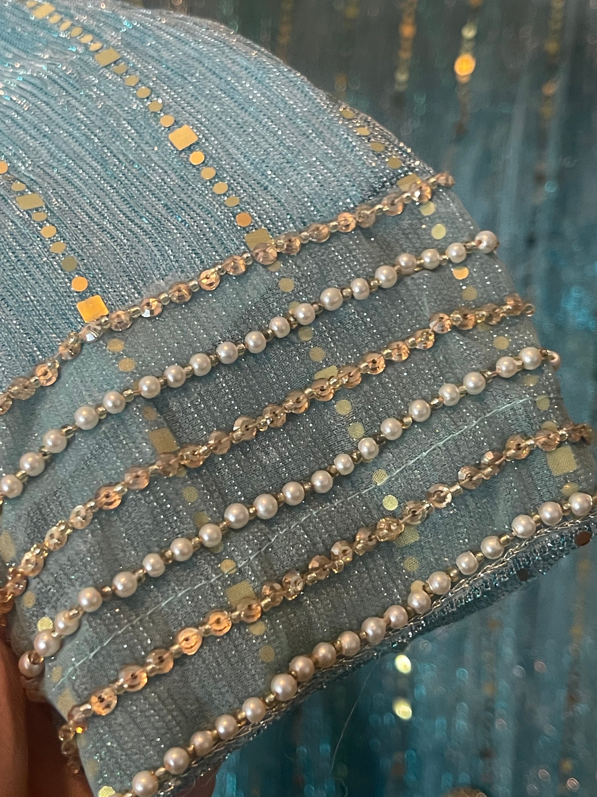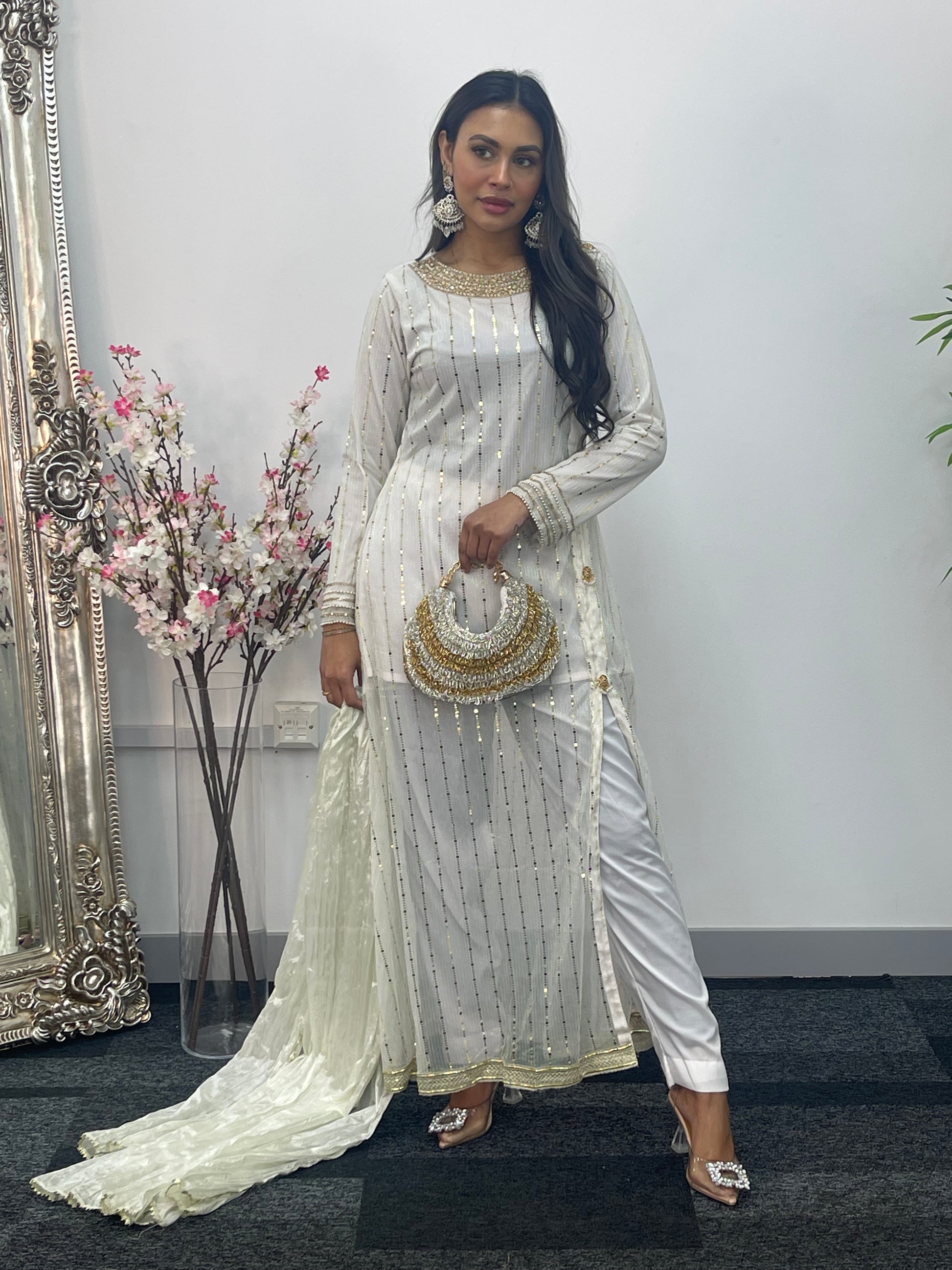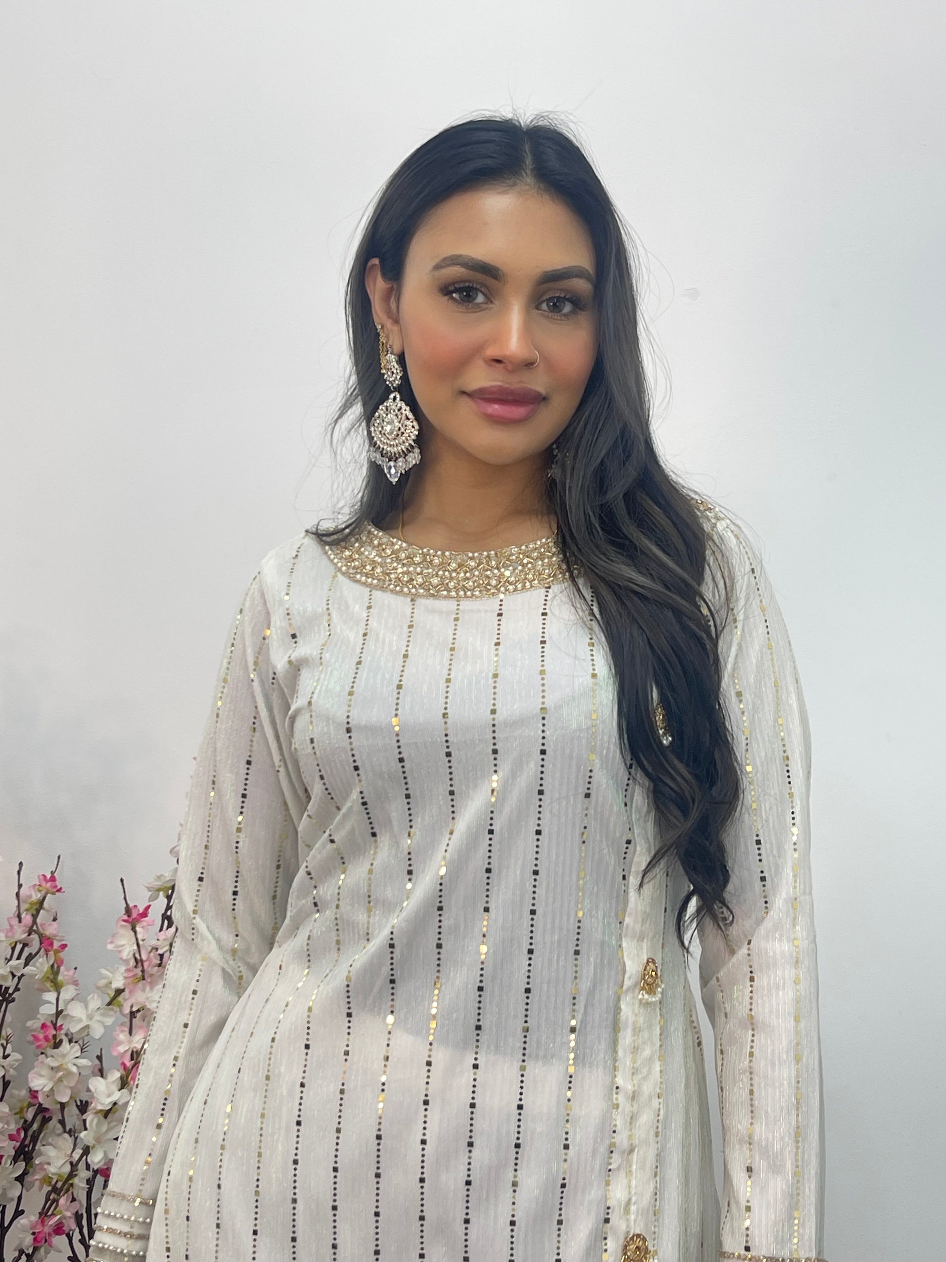 • Intricate Adda Work: The neckline and sleeves are beautifully adorned with detailed Adda work, adding a touch of sophistication to your ensemble.