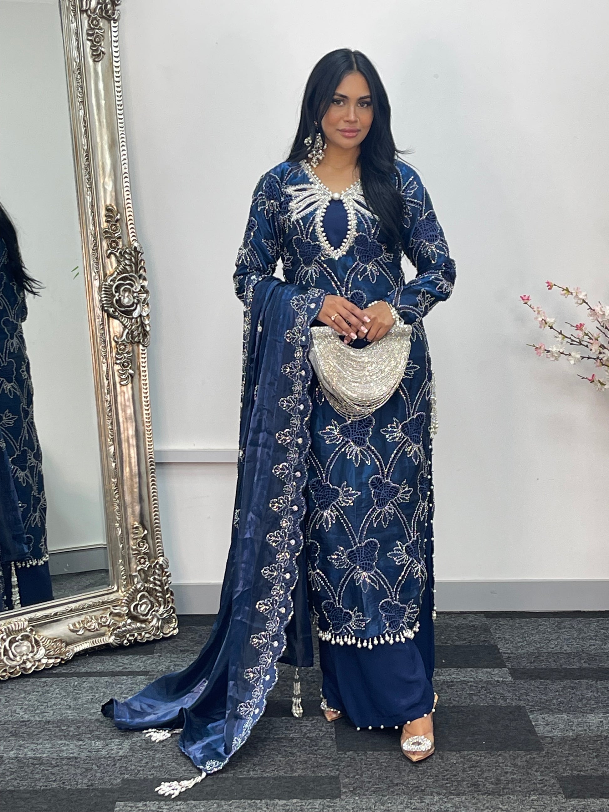 Introducing a stunning Korean silk shirt adorned with intricate heavy cutdana embellishments.