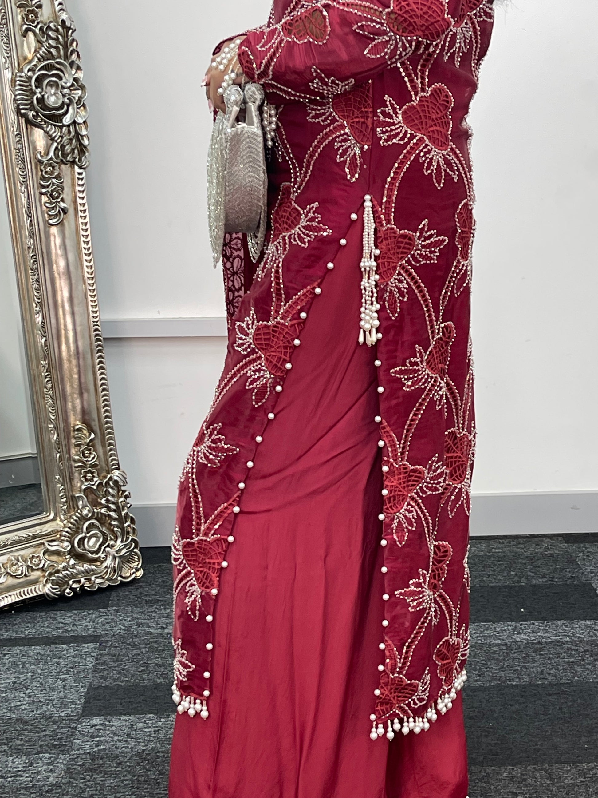 Introducing a stunning Korean silk shirt adorned with intricate heavy cutdana embellishments.