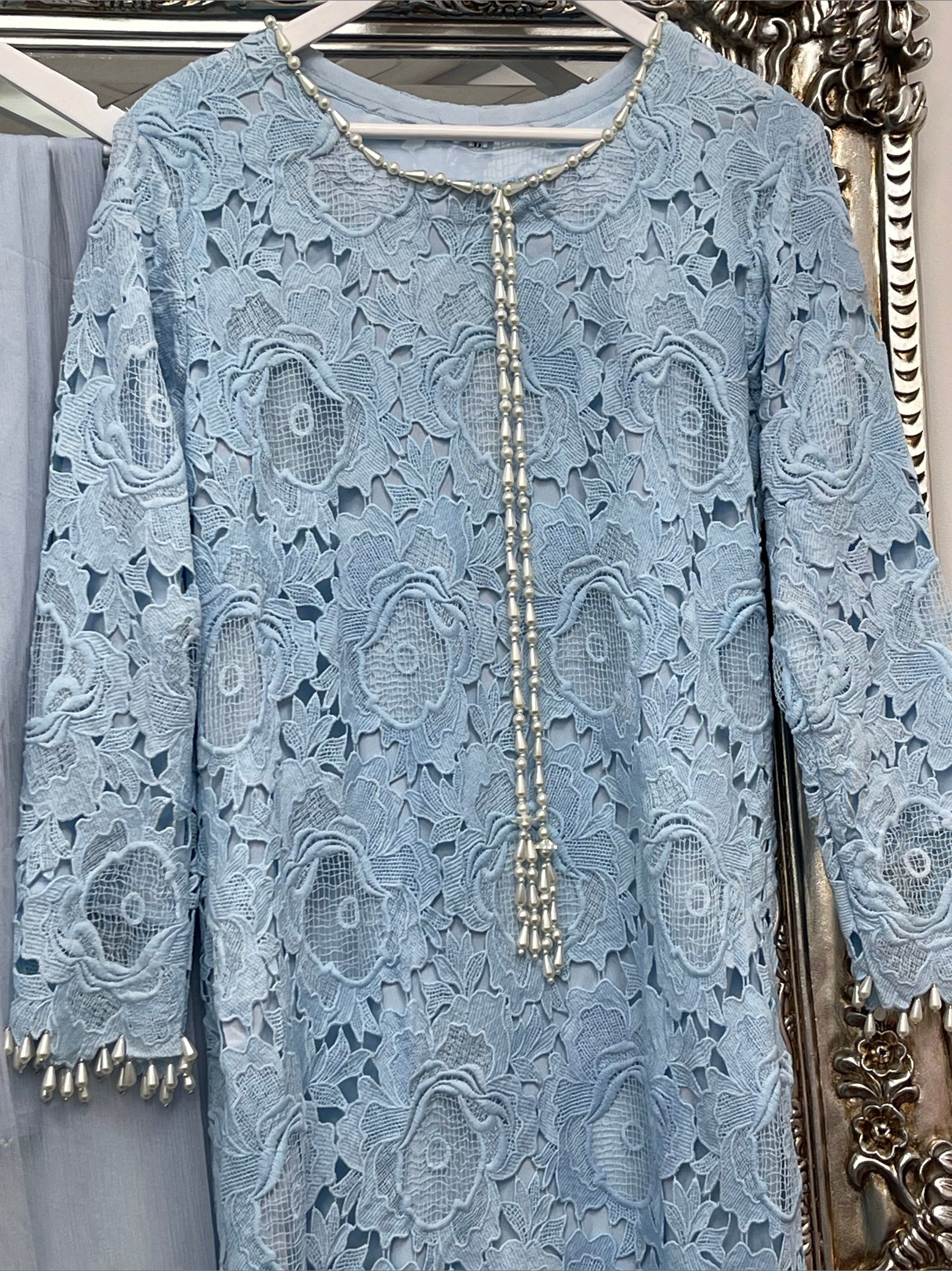 • Stunning crochet net shirt with heavy cutwork front, back & sleeves