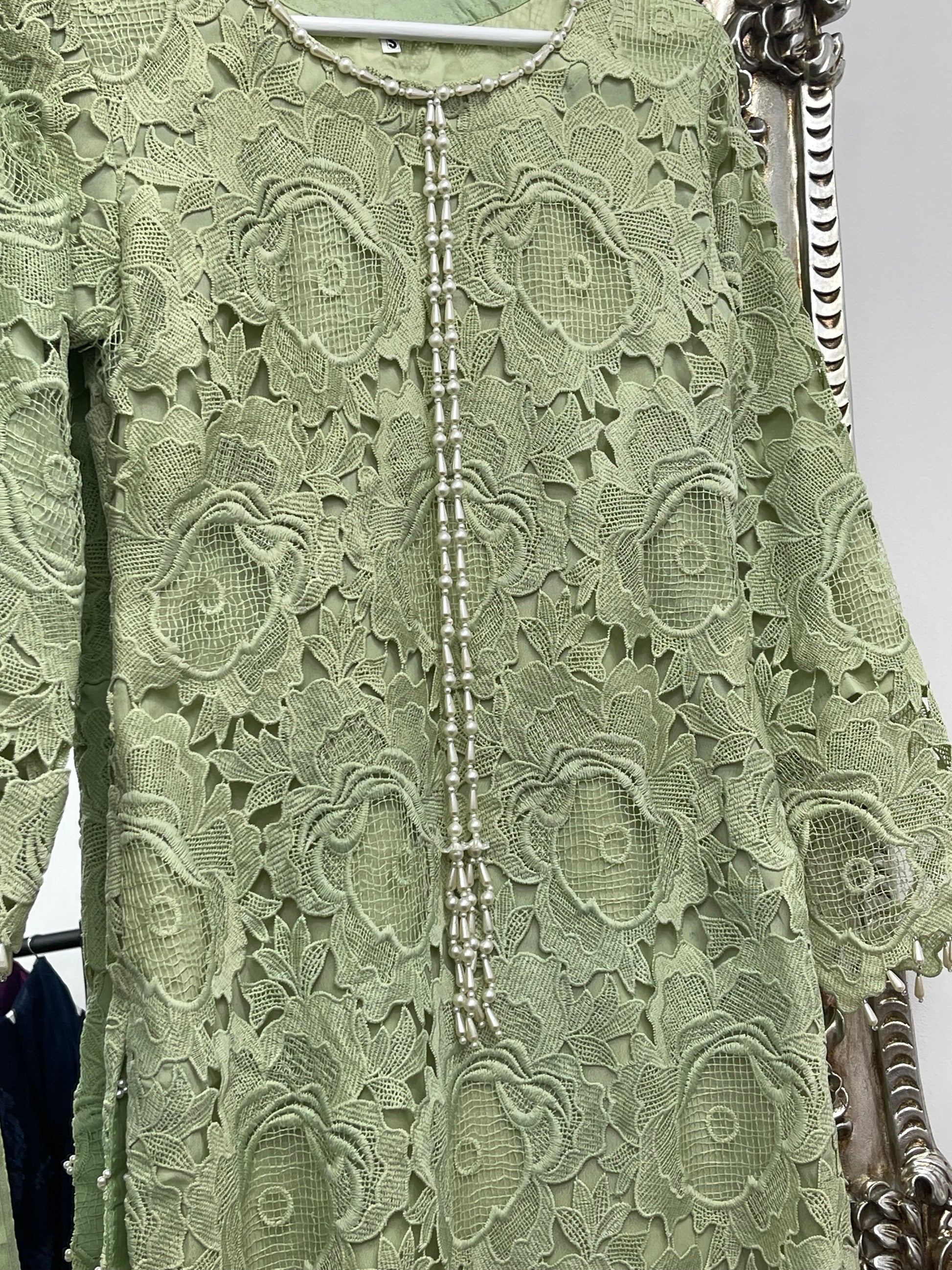 • Stunning crochet net shirt with heavy cutwork front, back & sleeves