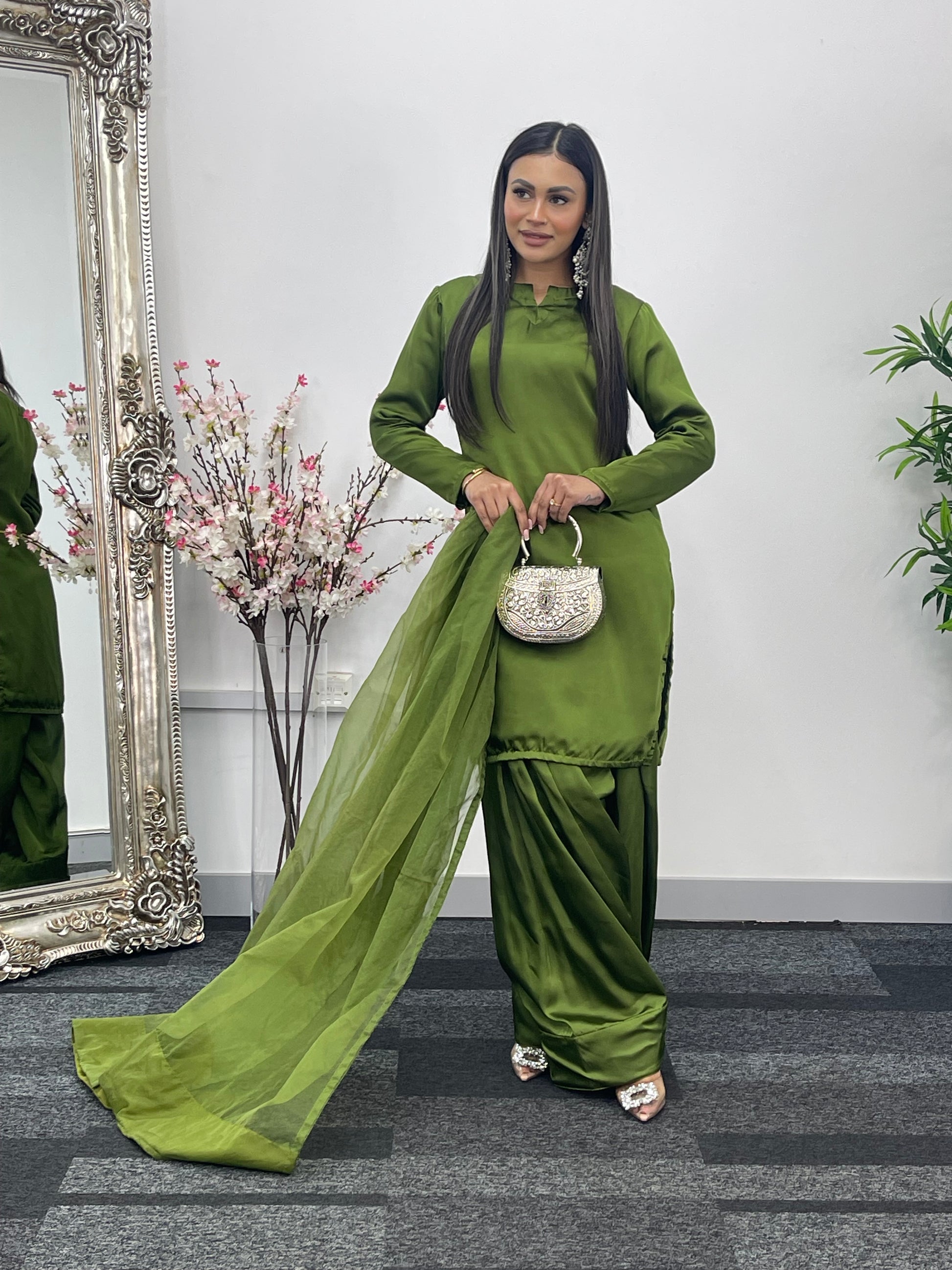 Saba - Farshi Shalwar - olive green - P