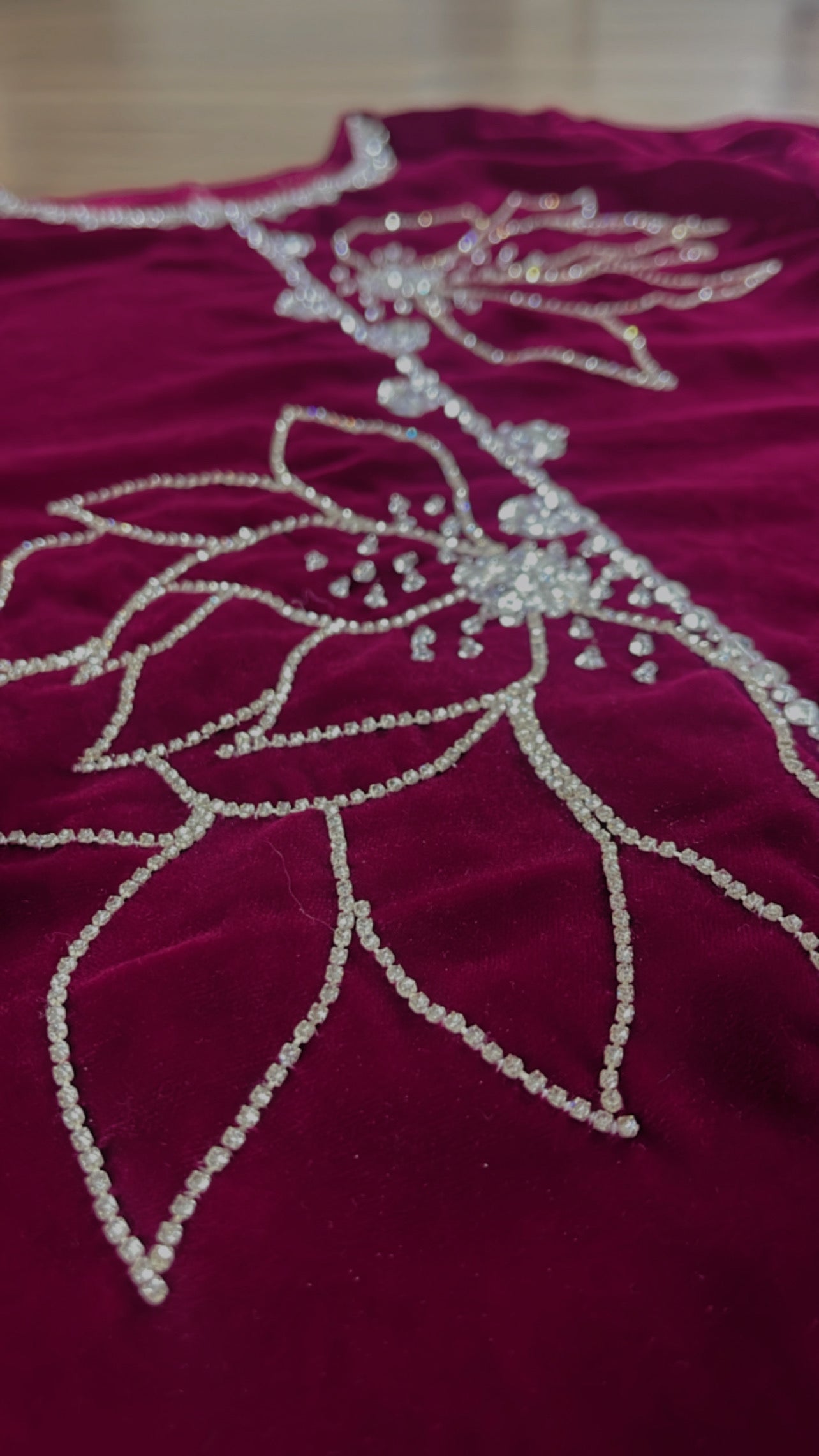 • Luxurious magenta pink velvet fabric with stunning adda work.