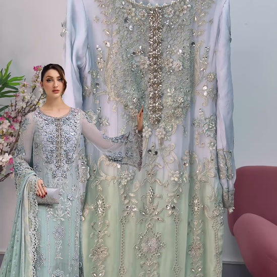 embroidered chiffon shirt with heavy adda work