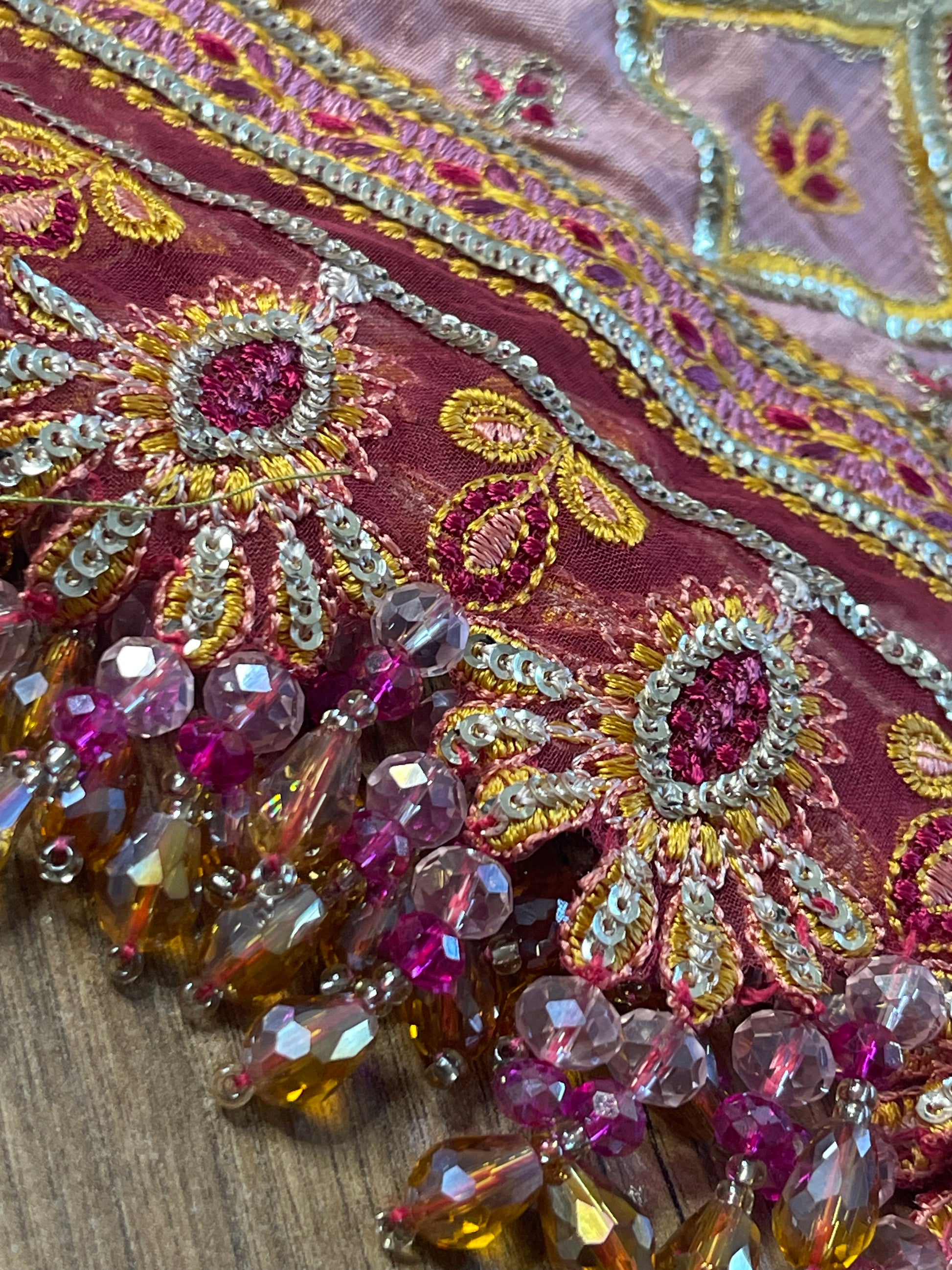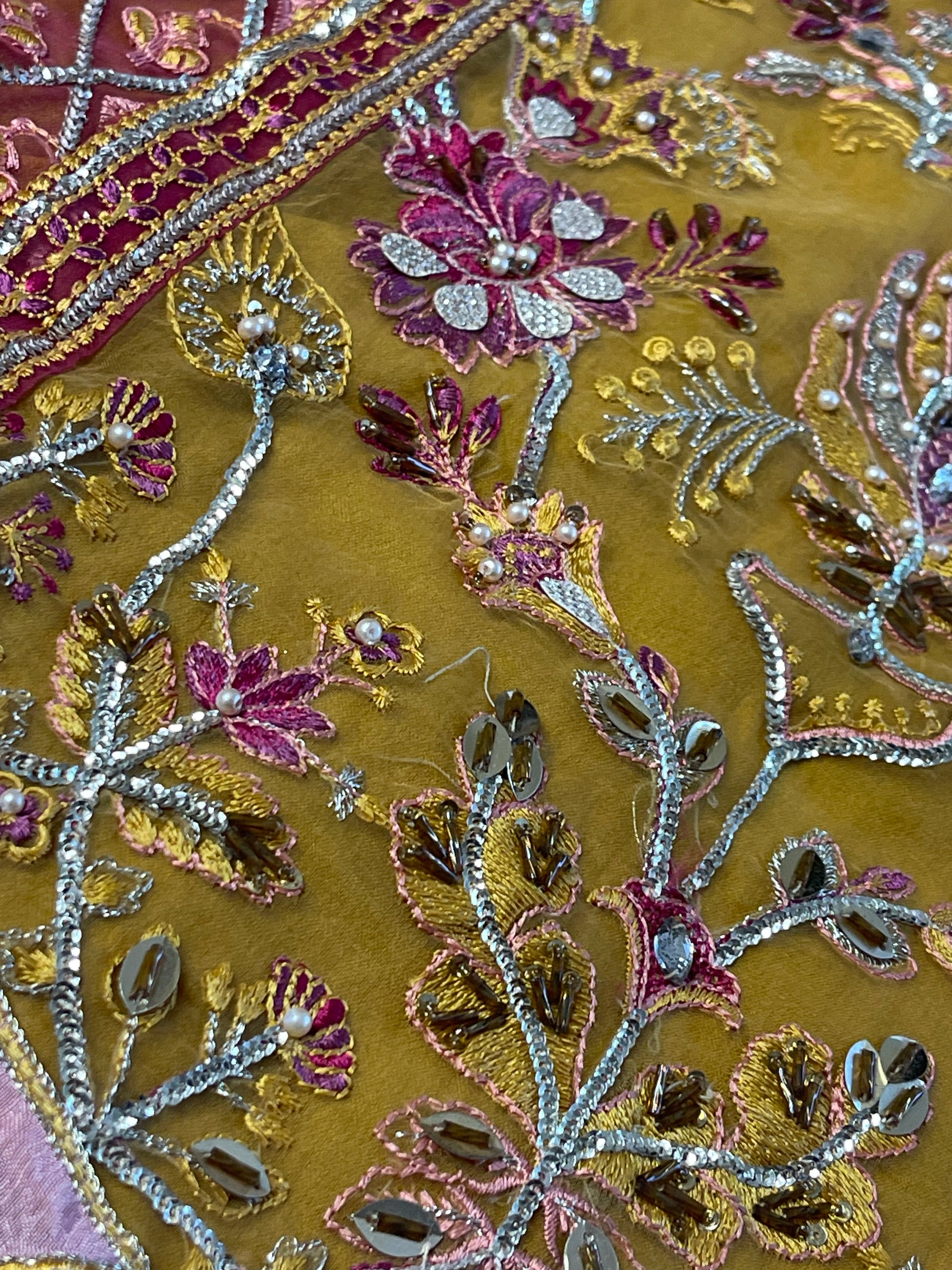 Beautiful organza dupatta with 4 sided embroidery and crystal details