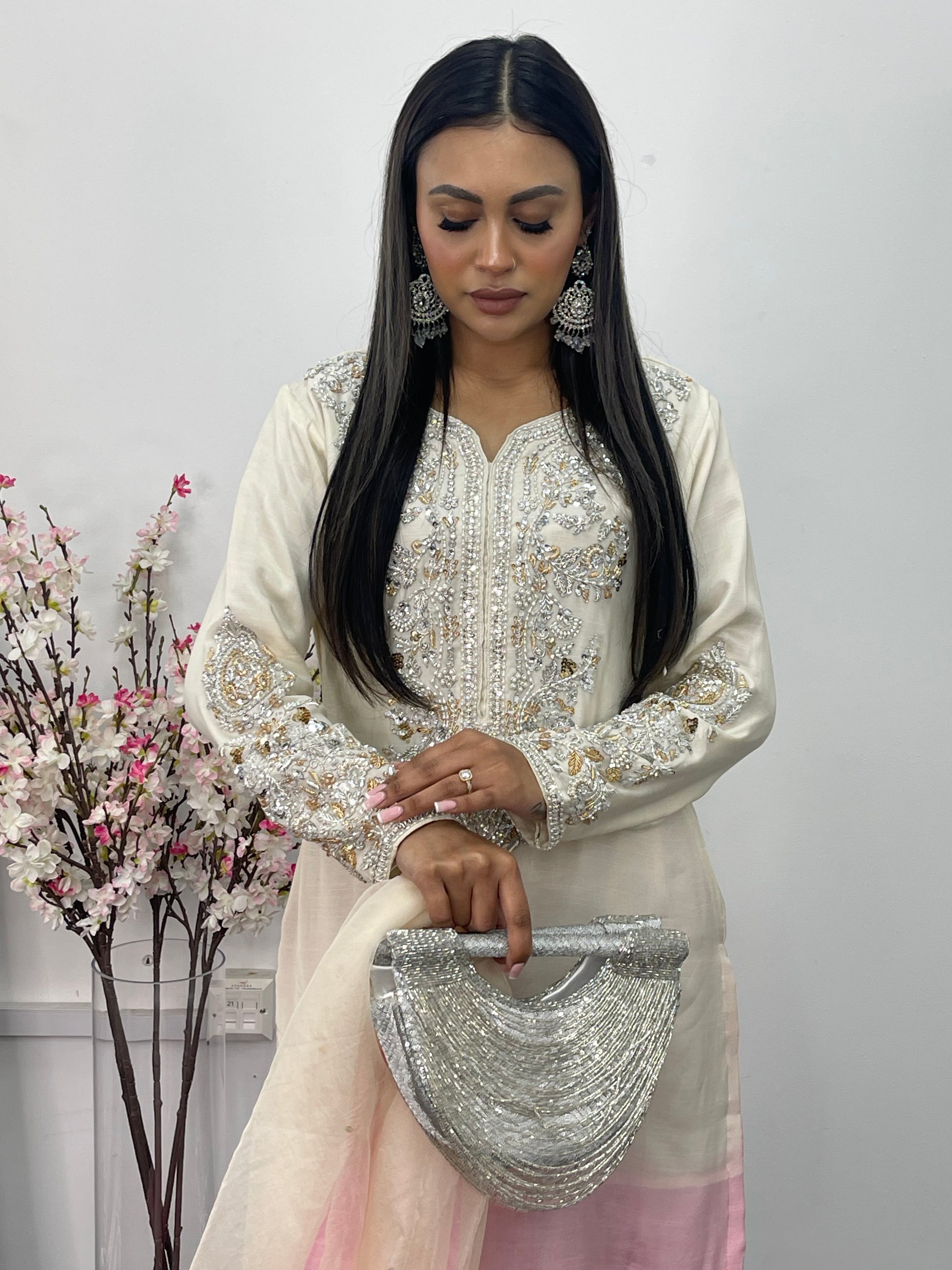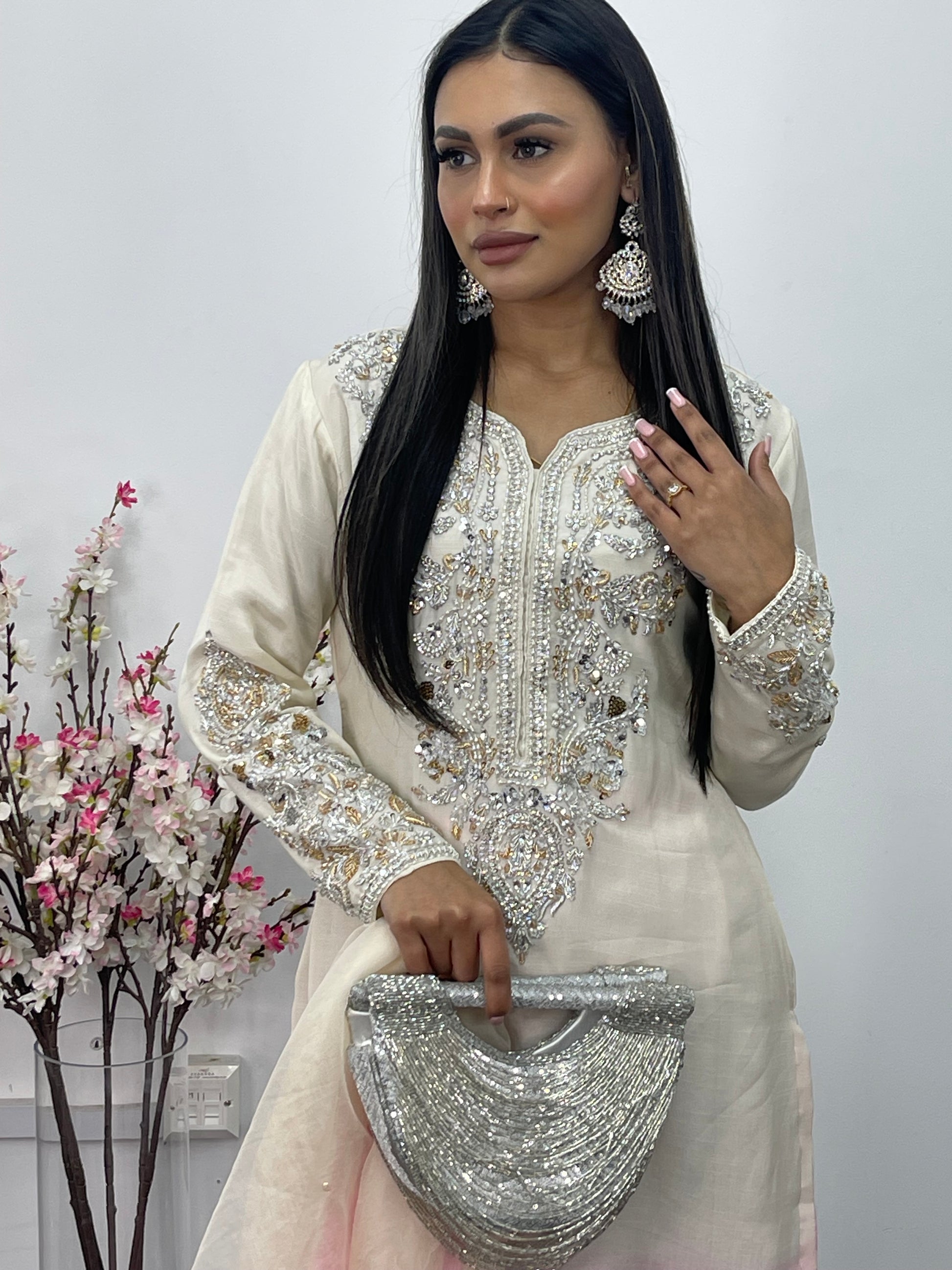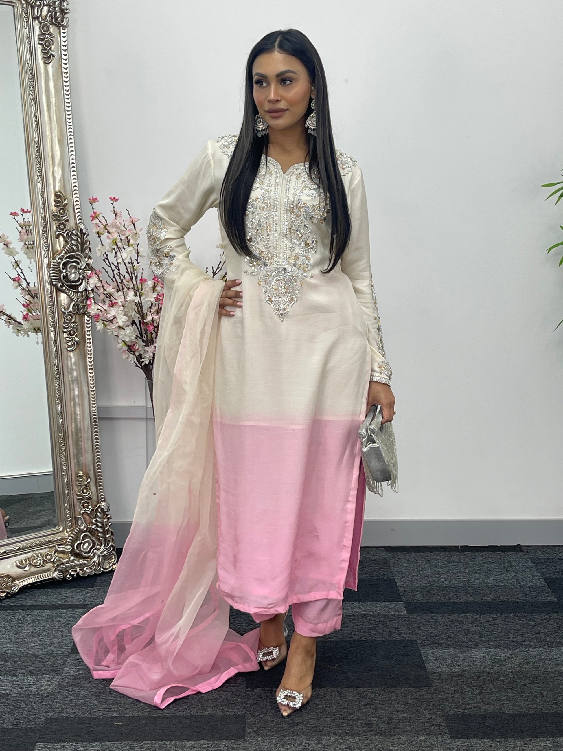 (Pre Order 3/4 Weeks)“Gulaabi” Luxury Outfit - Ombre Pink & Ivory