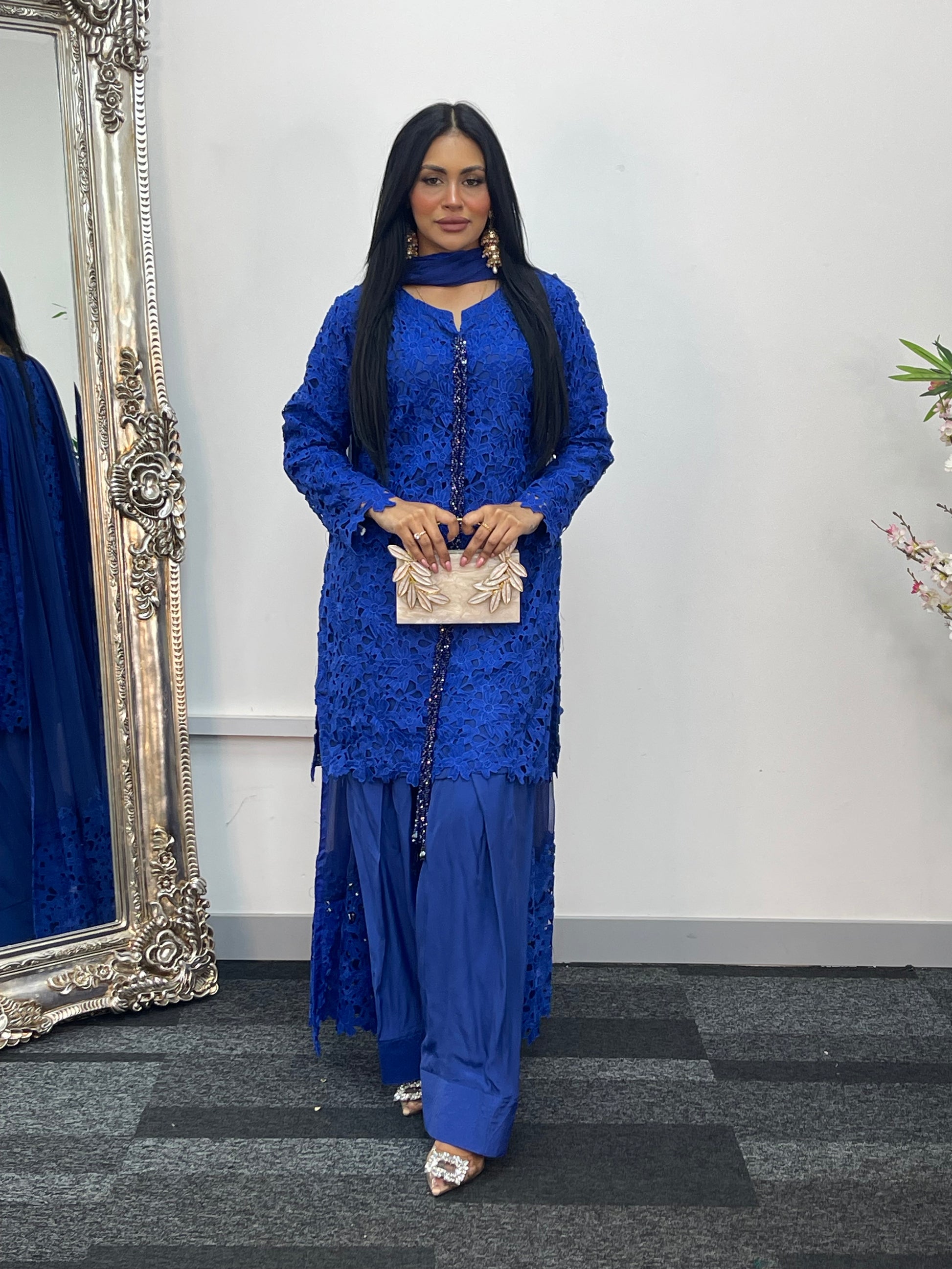 • Floor length long Chiffon dupatta with cutwork crochet pallu patch.
