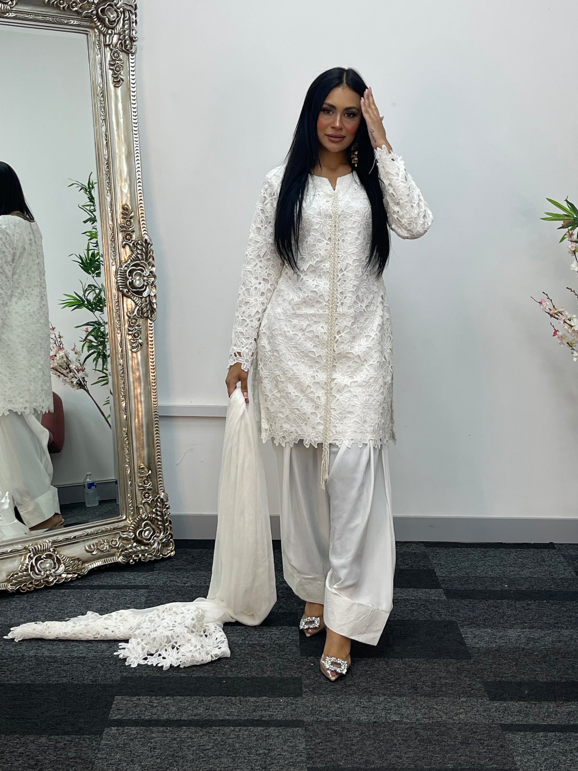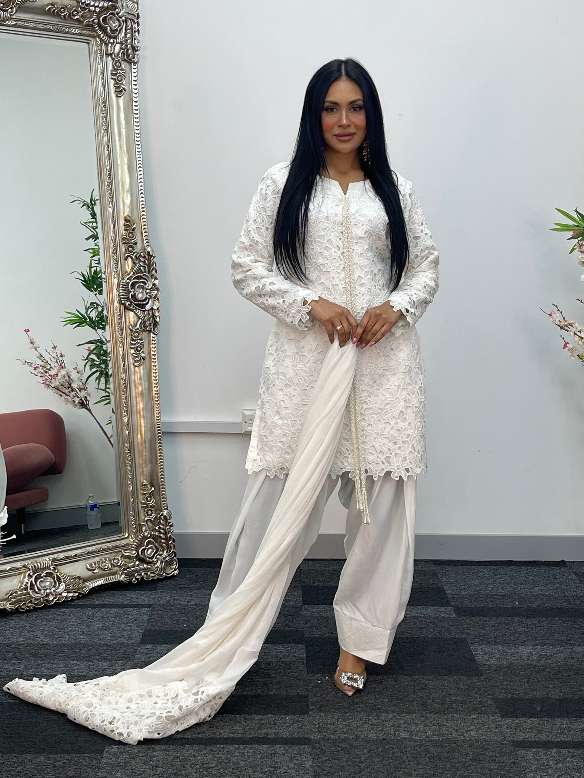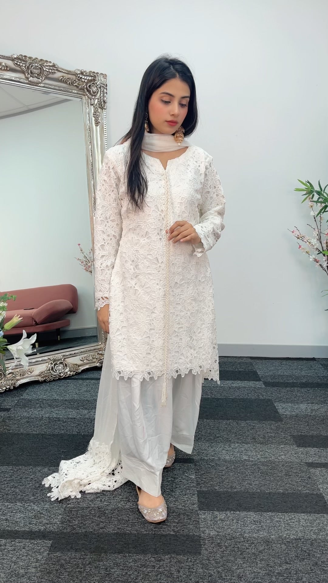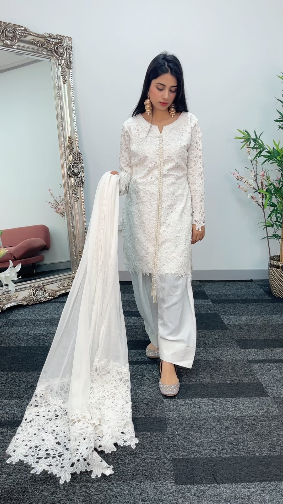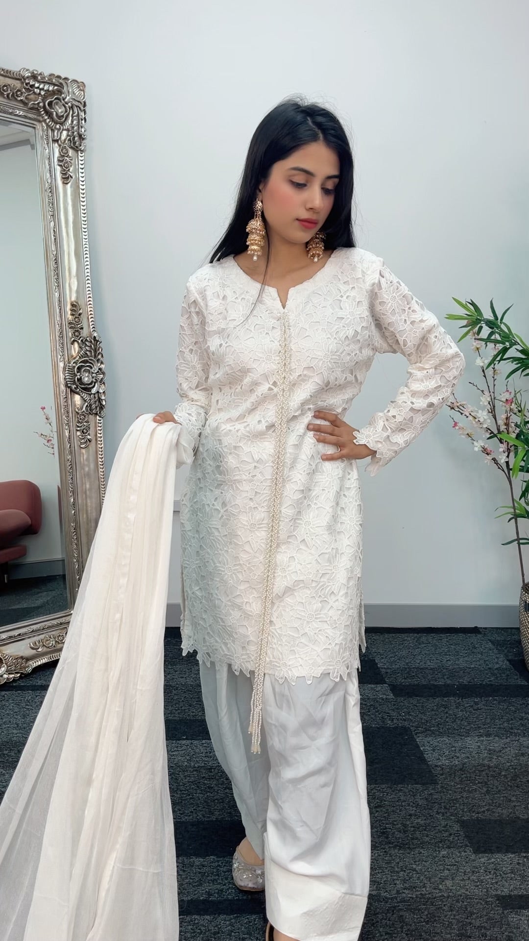 • Floor length long Chiffon dupatta with cutwork crochet pallu patch.