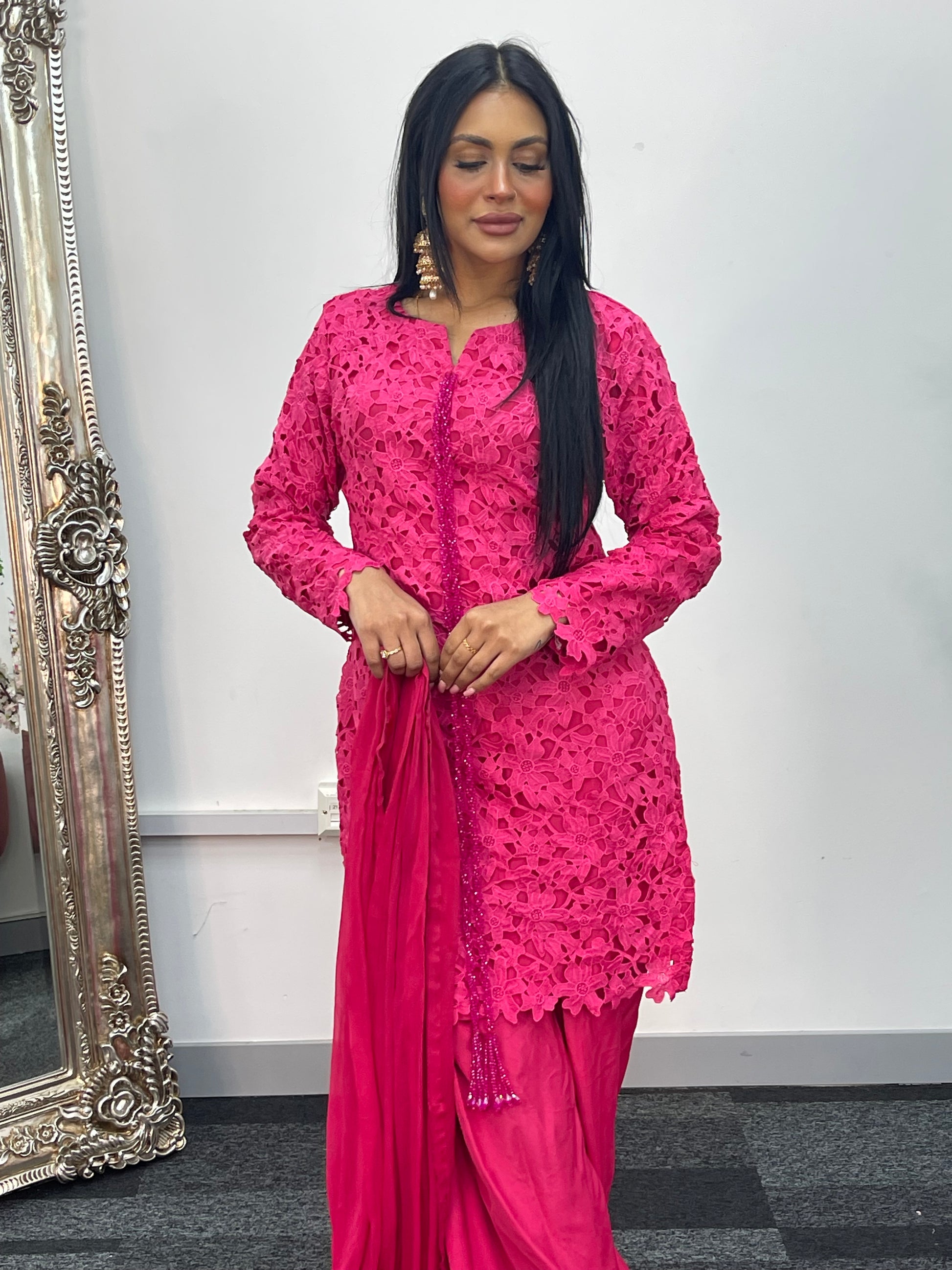 • Floor length long Chiffon dupatta with cutwork crochet pallu patch.