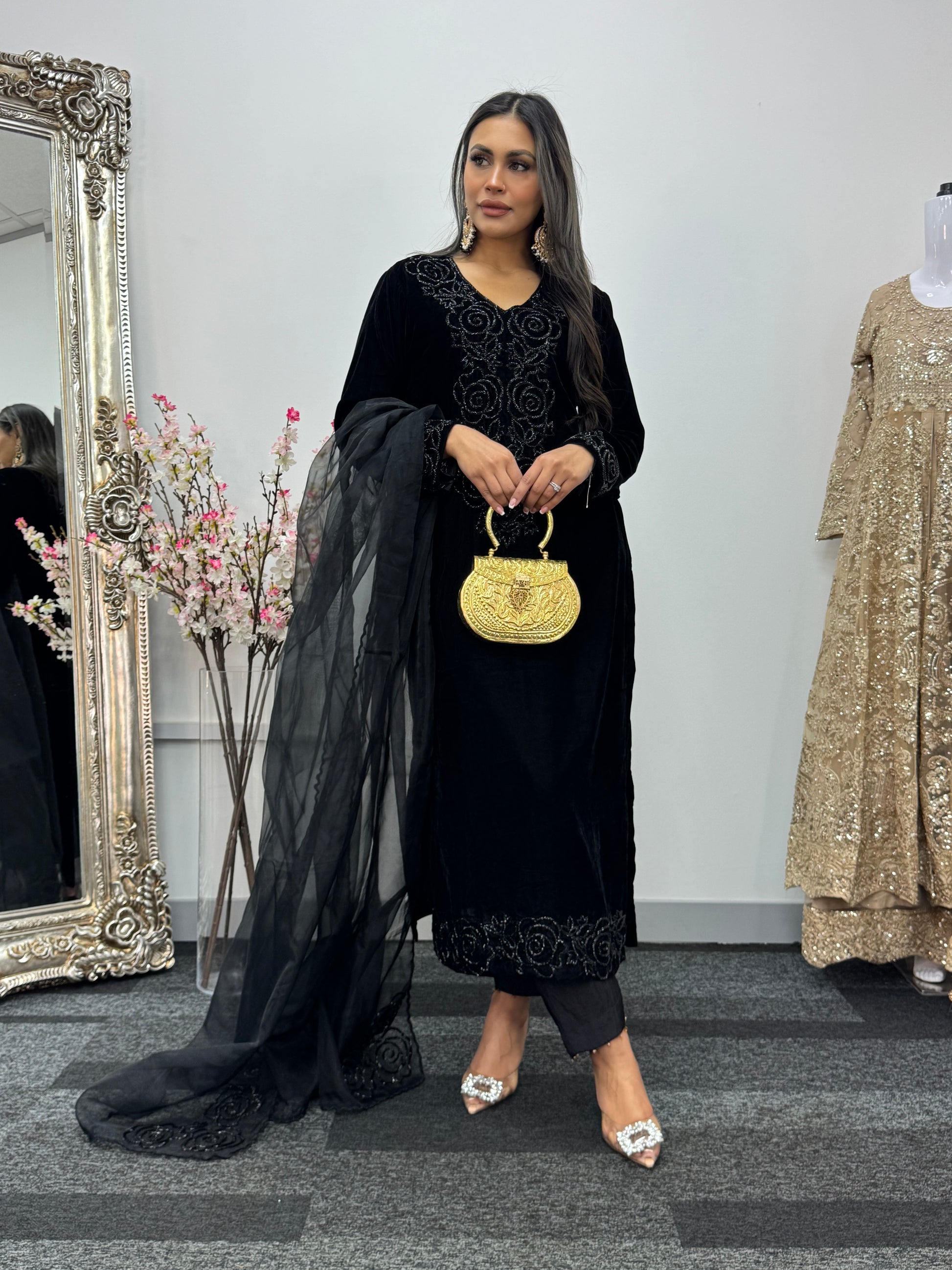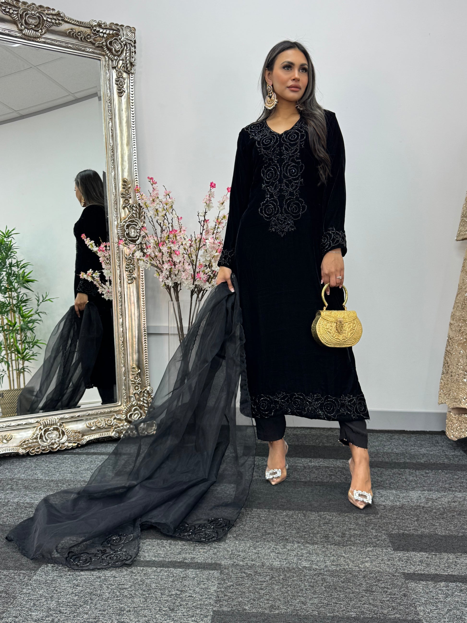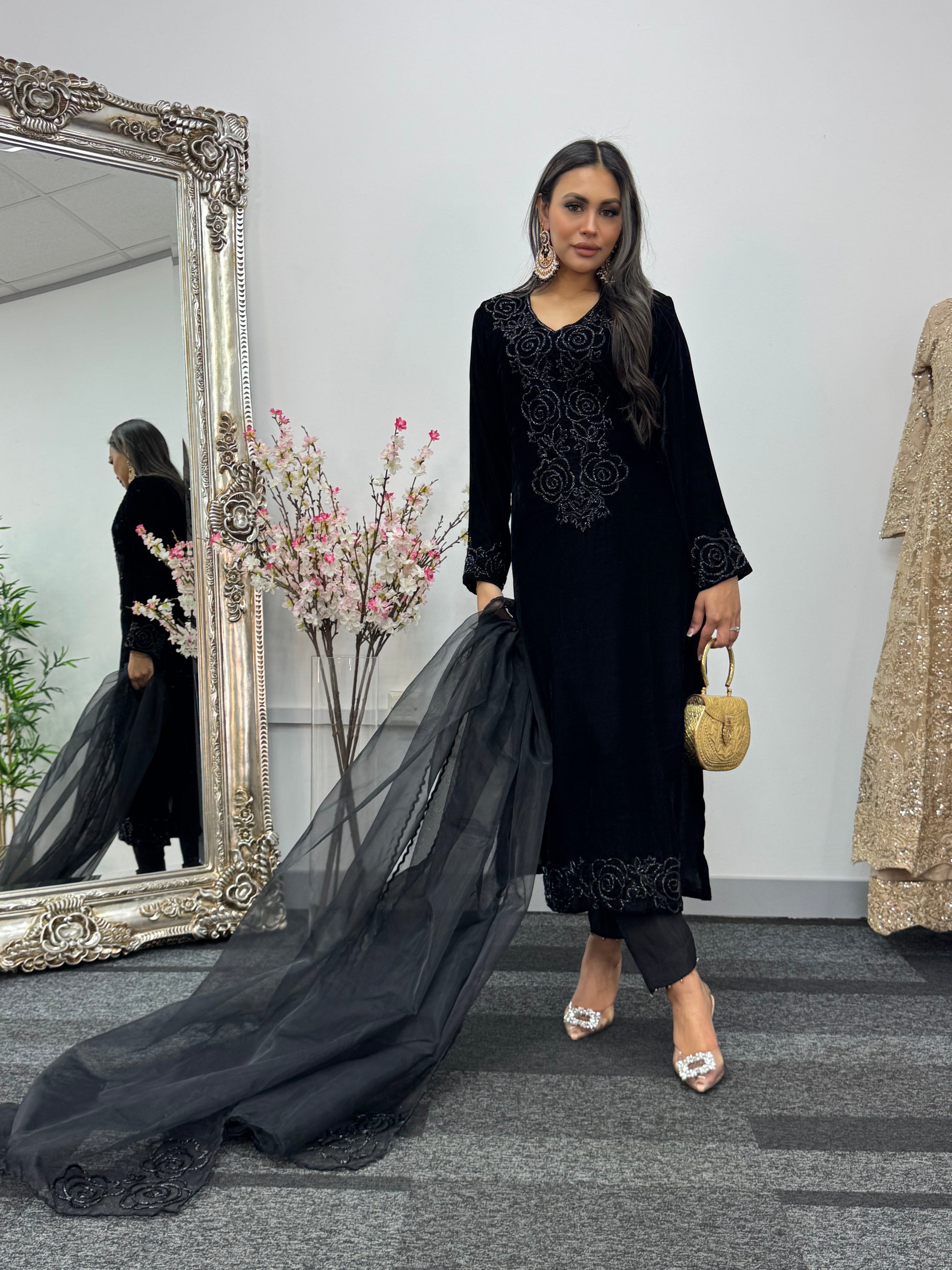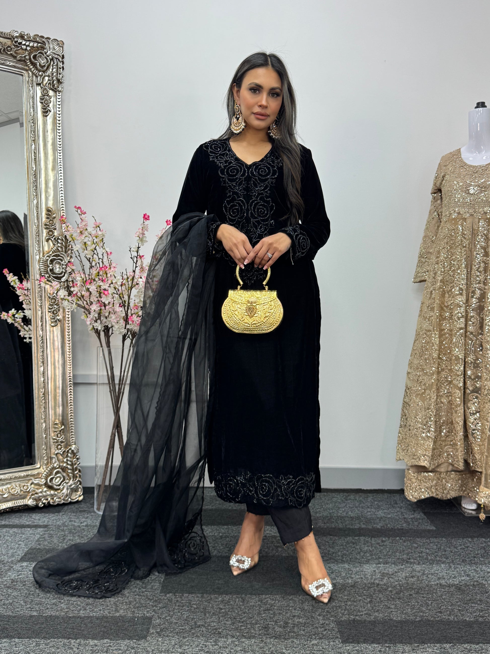 Moti Sitaray - Black Velvet Pret - Cutdana