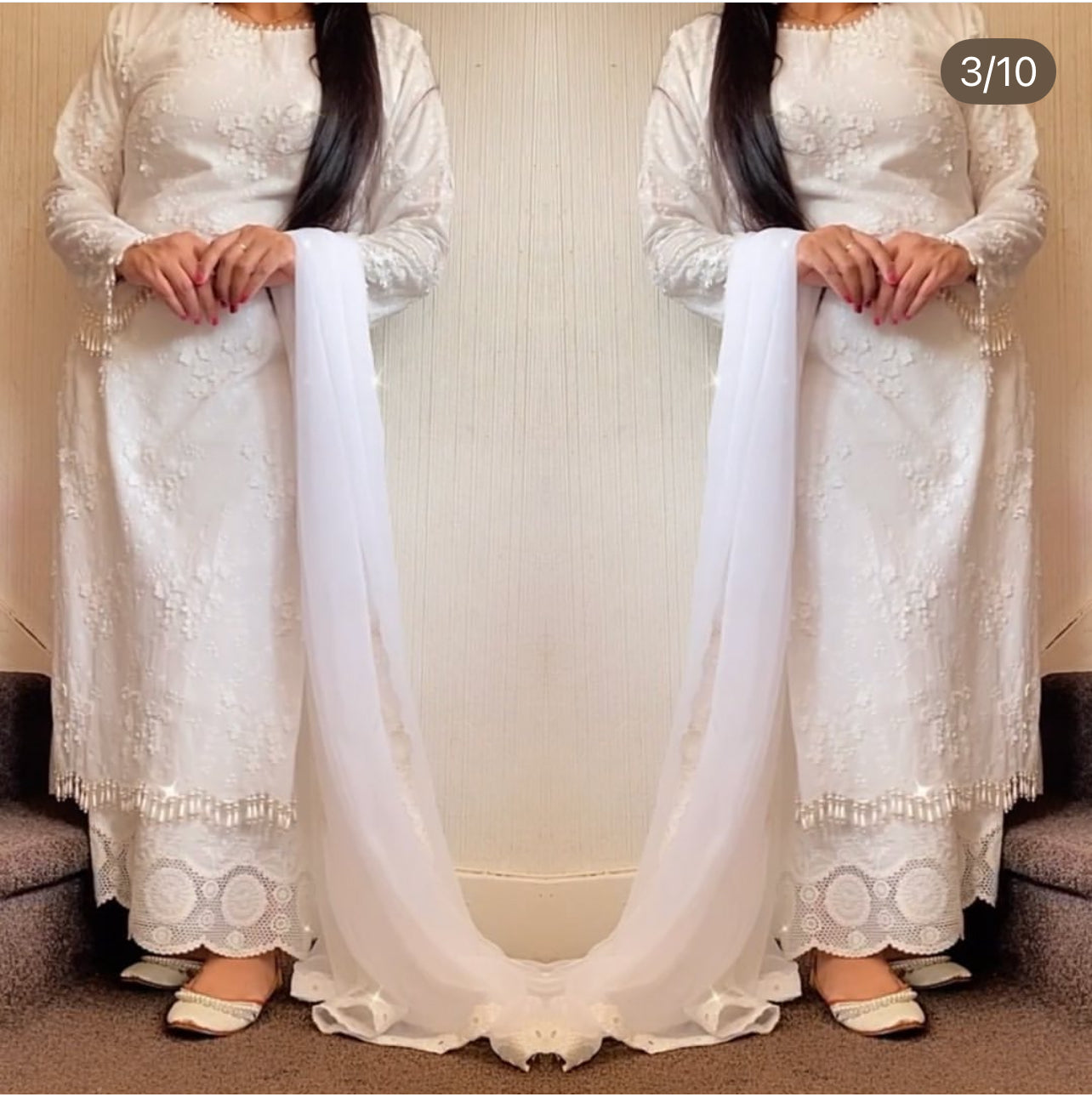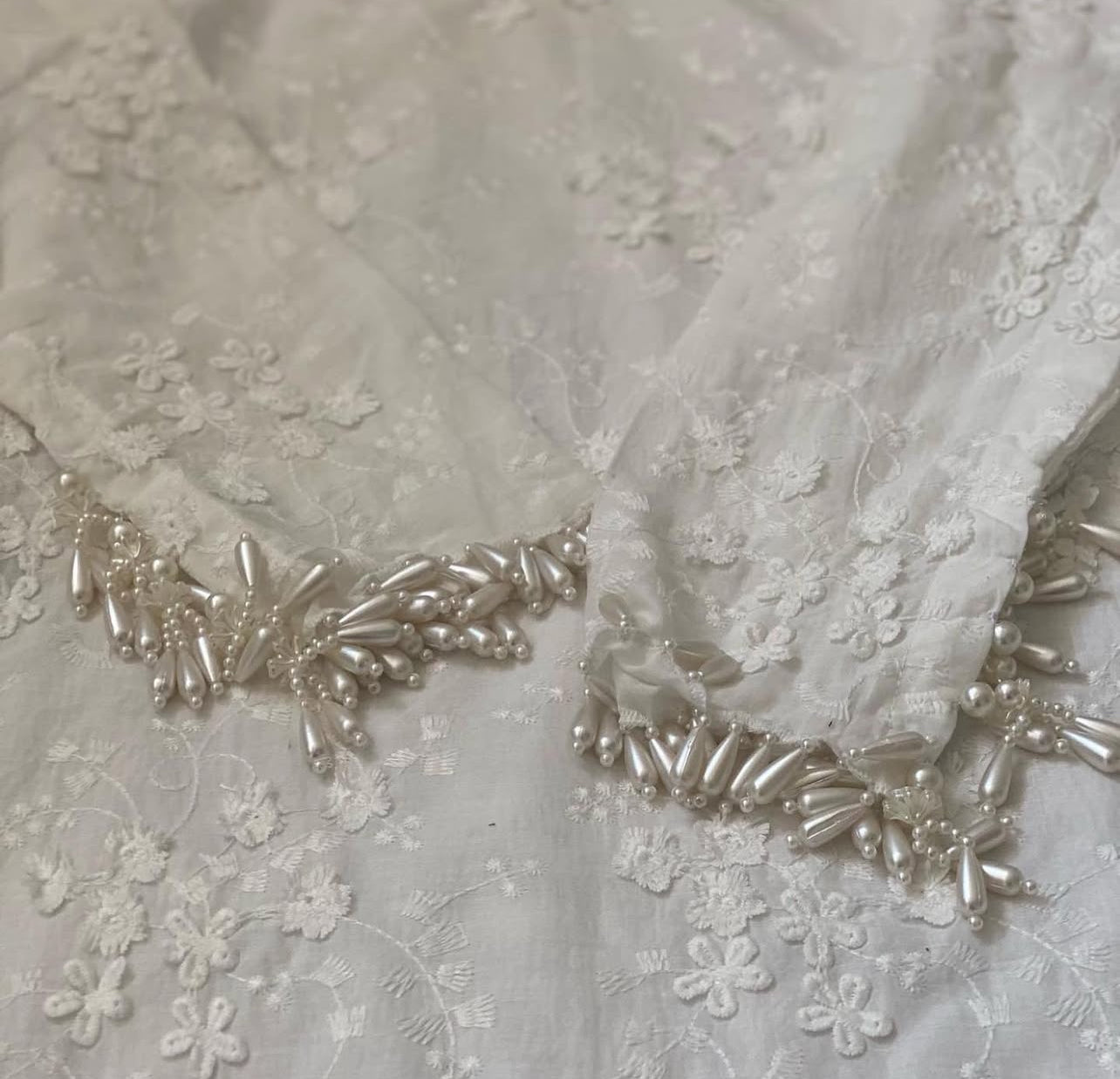3d Luxury chikankaari shirt with high quality pearls and crystals detailing on Front and back daman