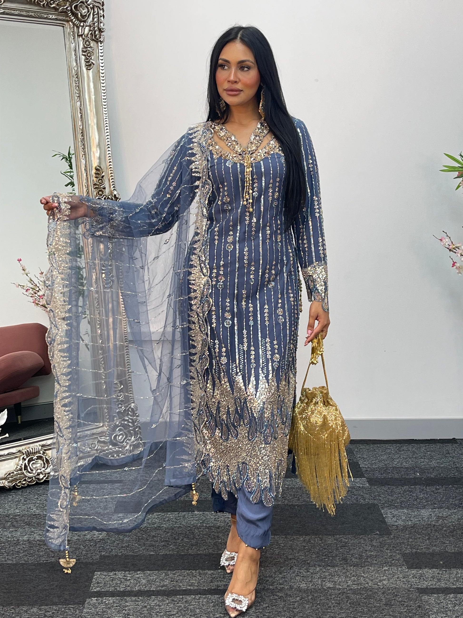 Introducing a stunning net shirt adorned with intricate heavy cutdana embellishments.