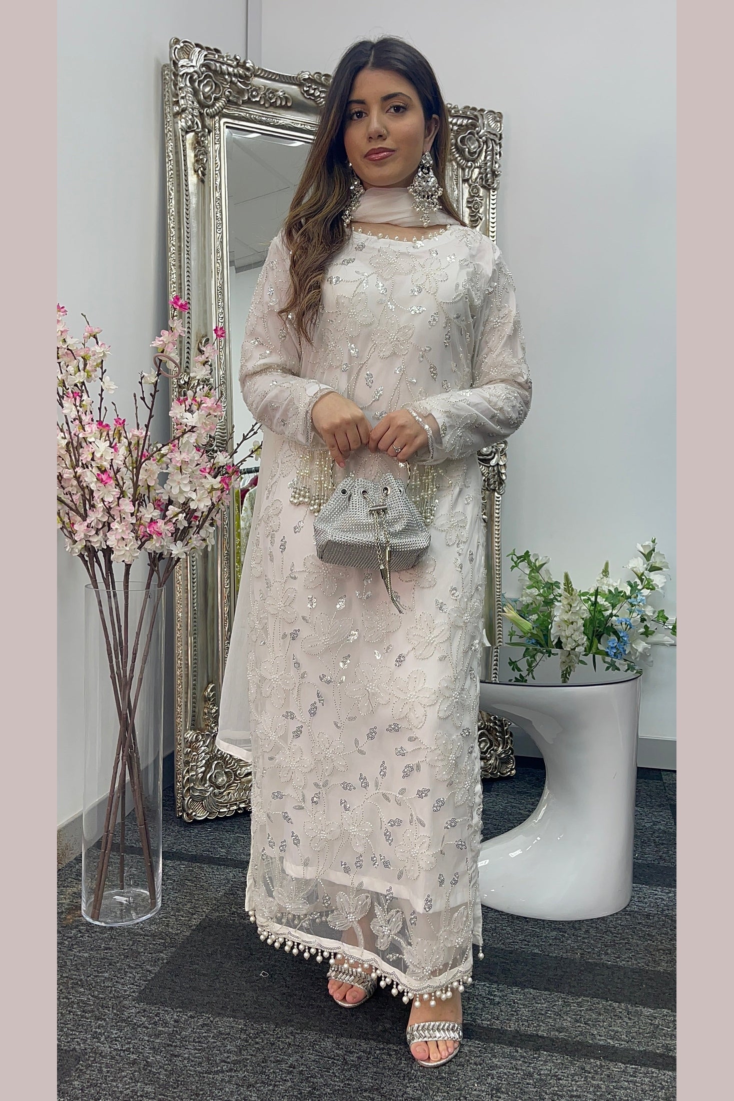 Pearl Crush Twist - White 3D Cutdana - Nikkah Outfit -