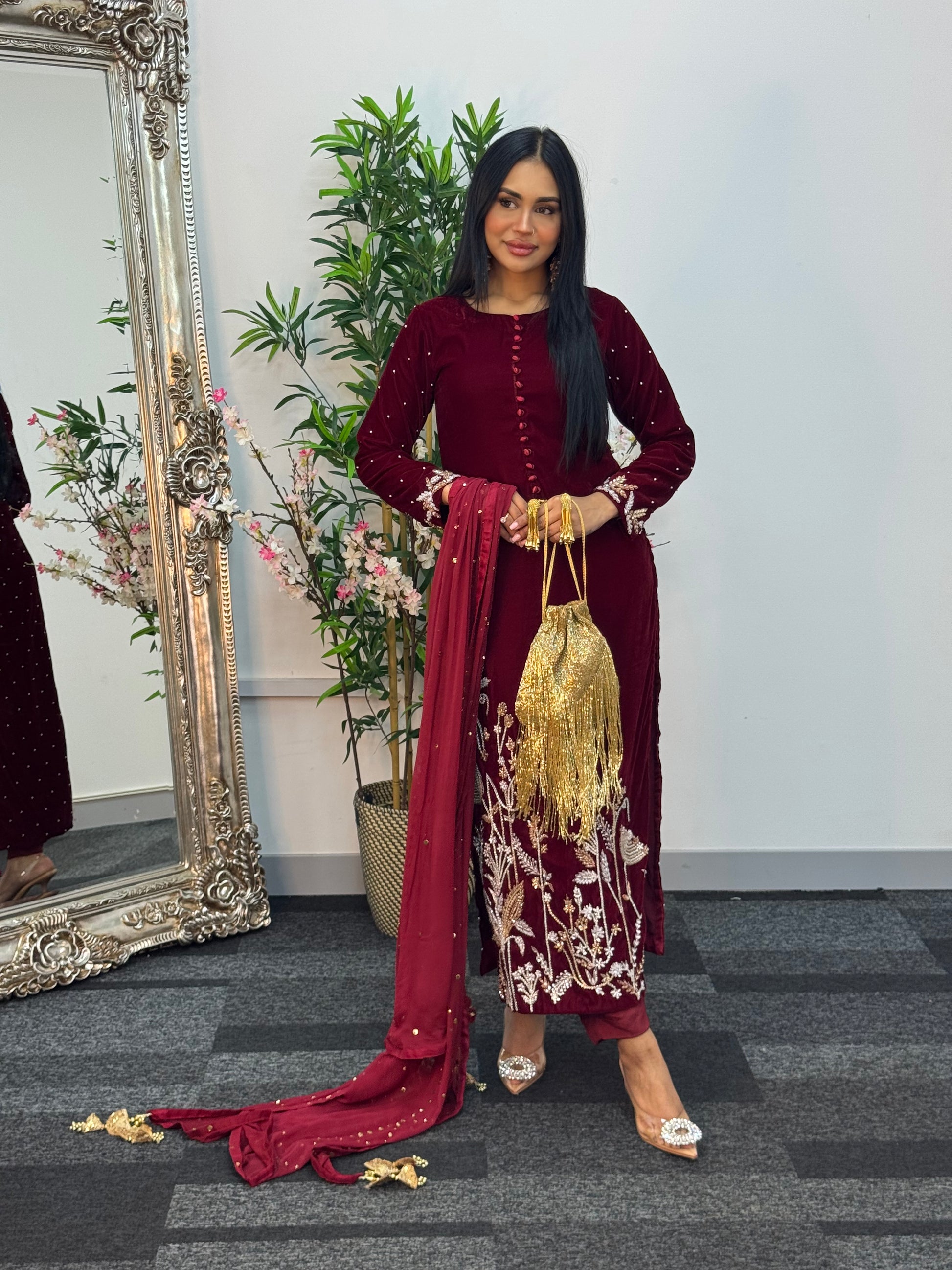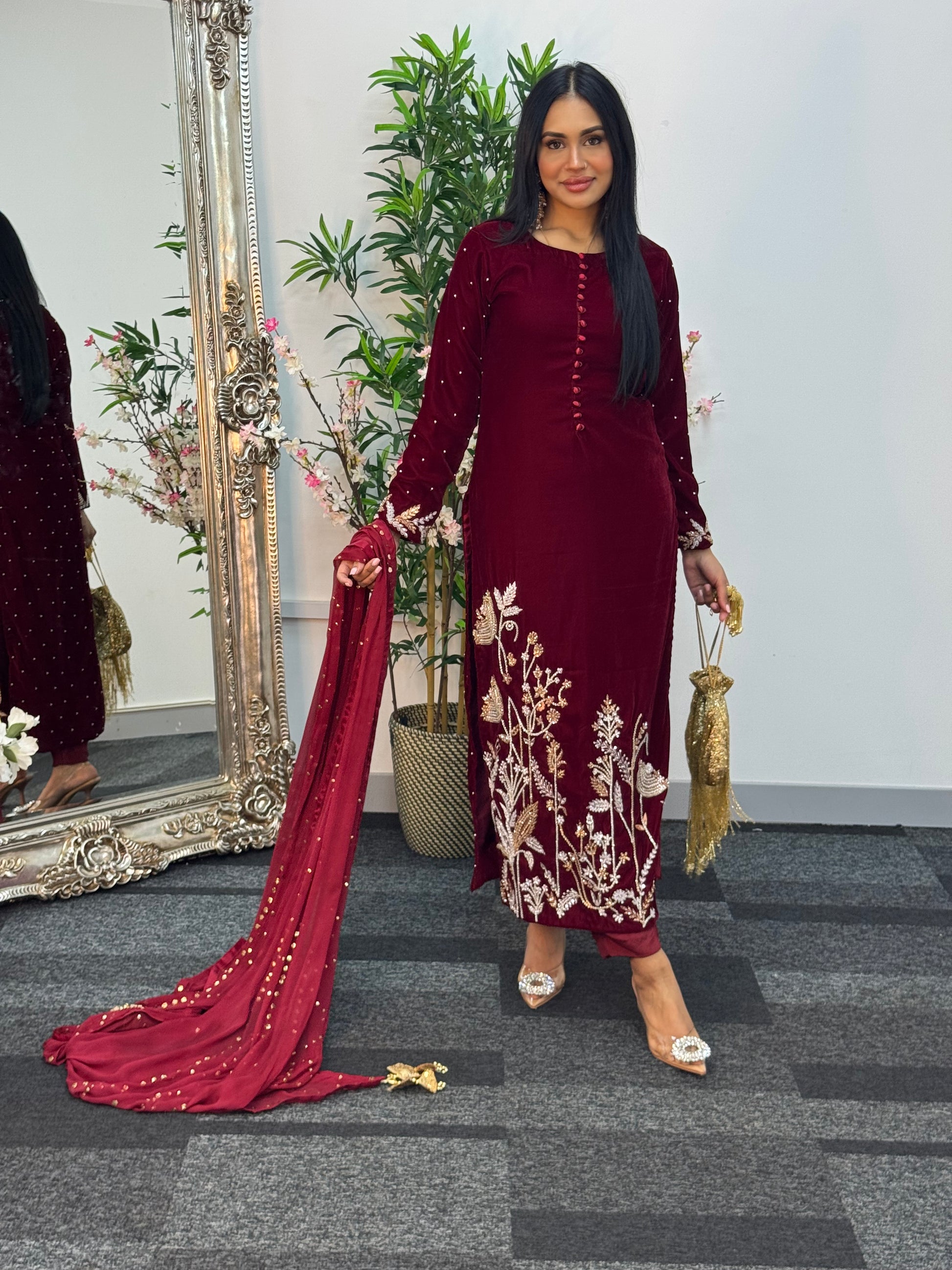 (Pre Order 3/4 Weeks) “Ayeza”Velvet - Maroon