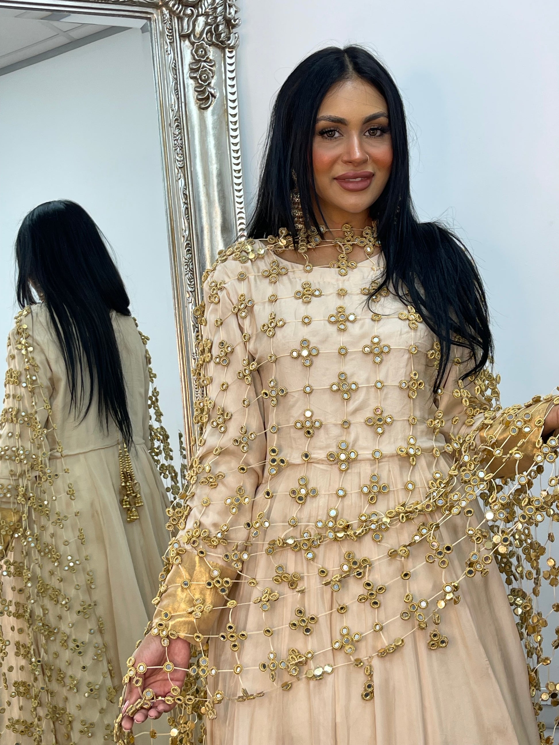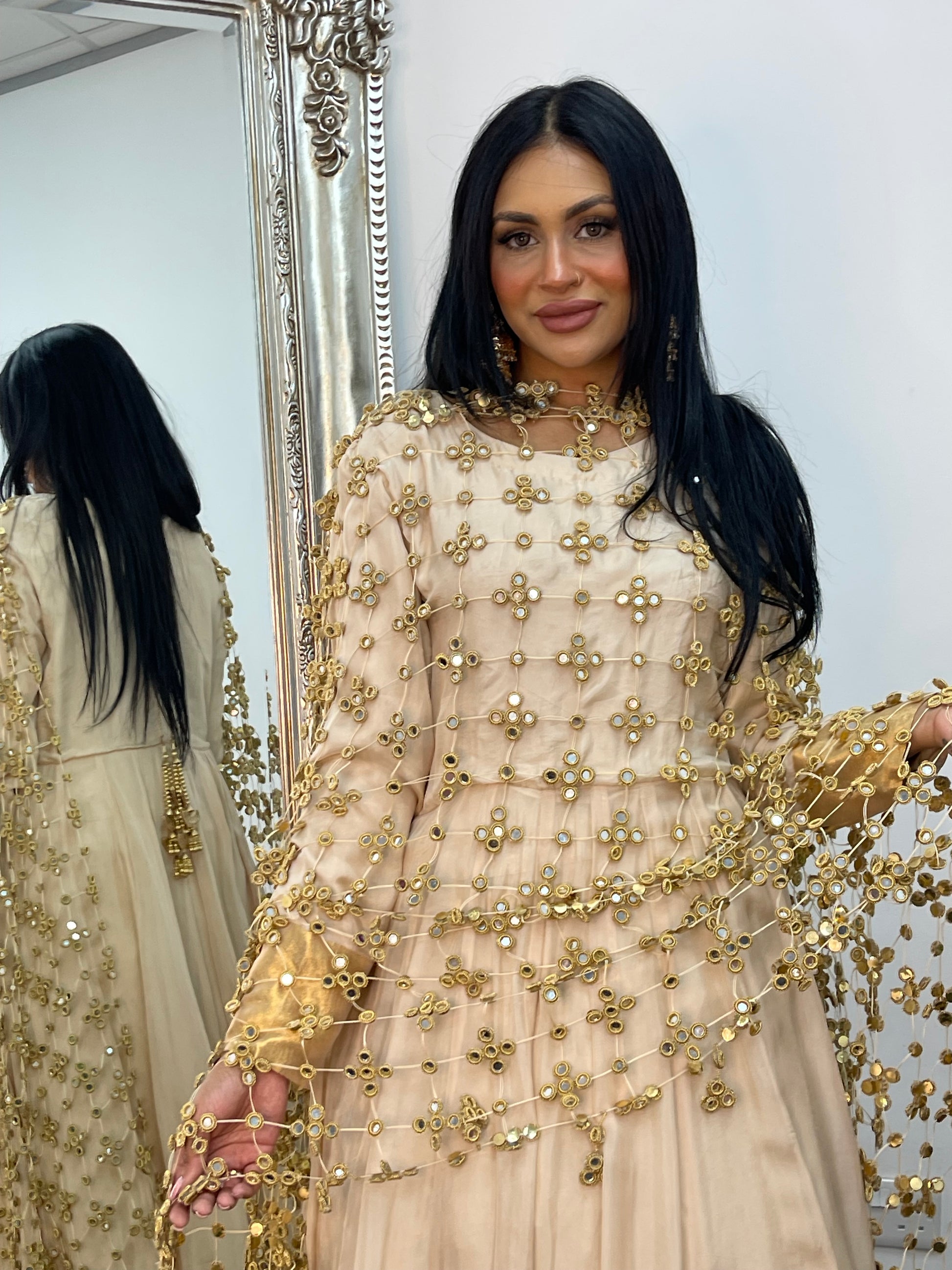(Preorder 4-5 weeks) Posheeda Sheesh Dupatta with MAXI DRESS- Poshida Mirror Dupata -