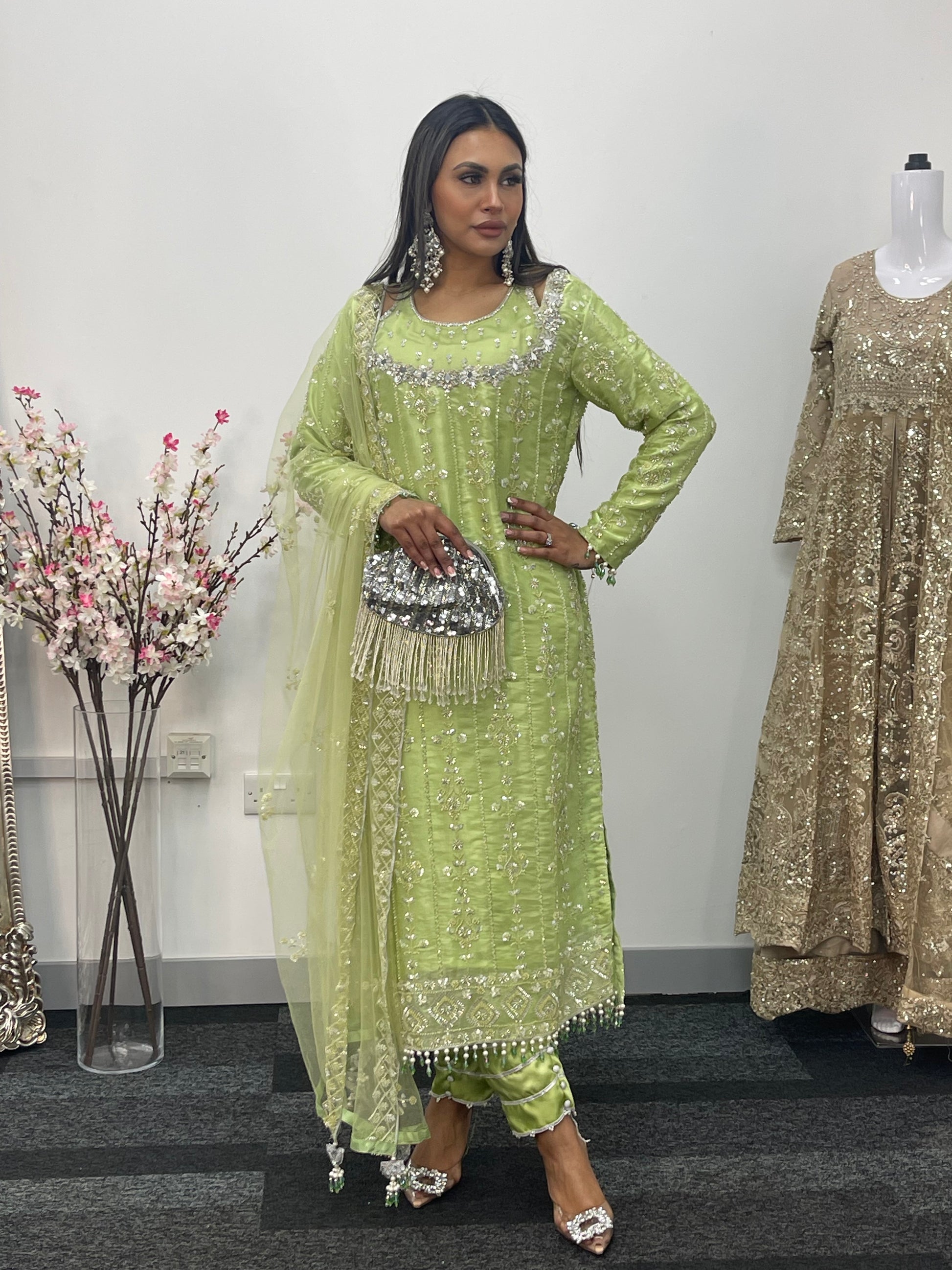• Embroidered Dupatta: A heavily embroidered net dupatta, further enhances the look with exquisite craftsmanship. The dupatta features high quality, heavy tassels.