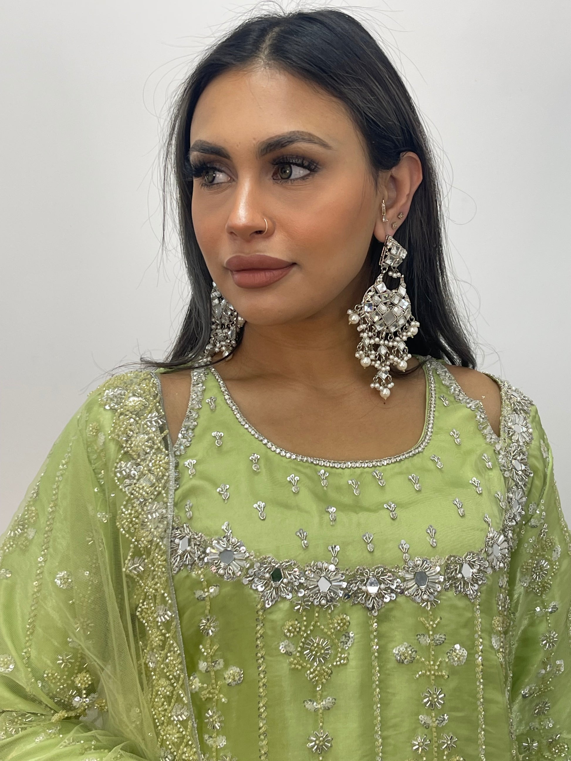 Ronaq- Korean Silk Cut Dana - Party Wear - Mint Green