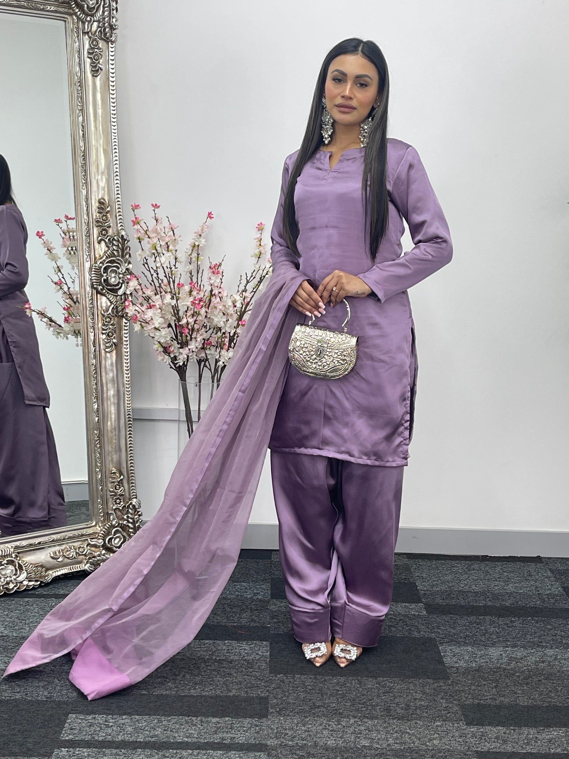 The shirt is thoughtfully lined for added luxury, while the ensemble is complemented by an elegant organza dupatta adorned with a beautifully detailed heavy palta on the pallu.