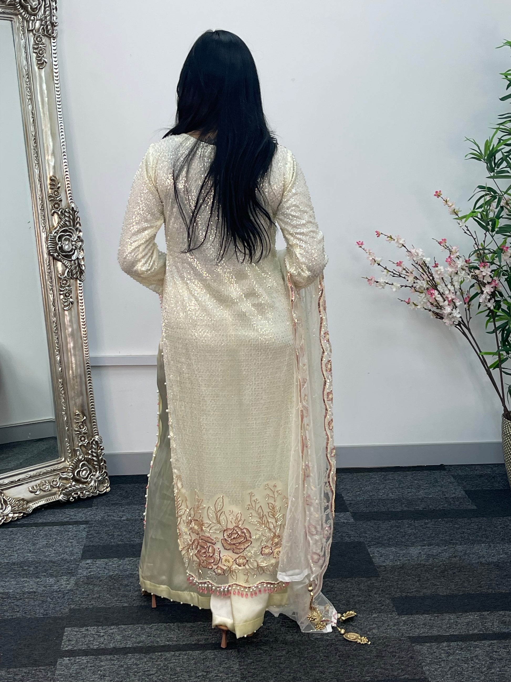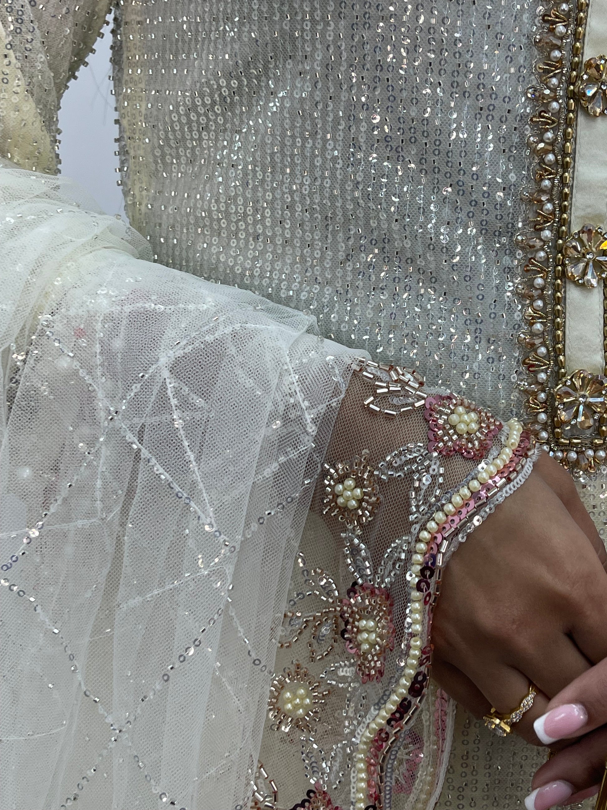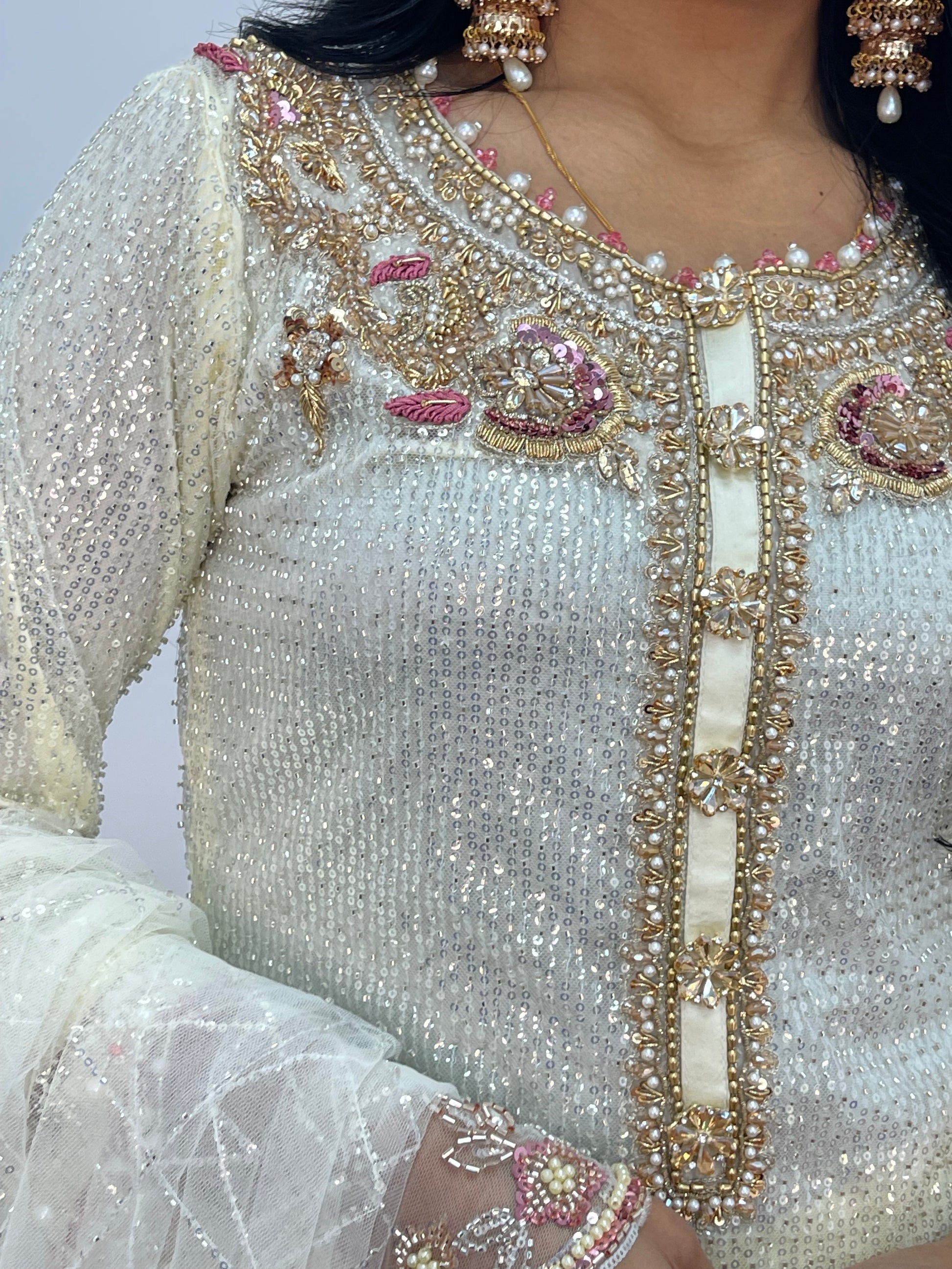 Introducing a stunning net shirt adorned with intricate heavy cutdana embellishments.