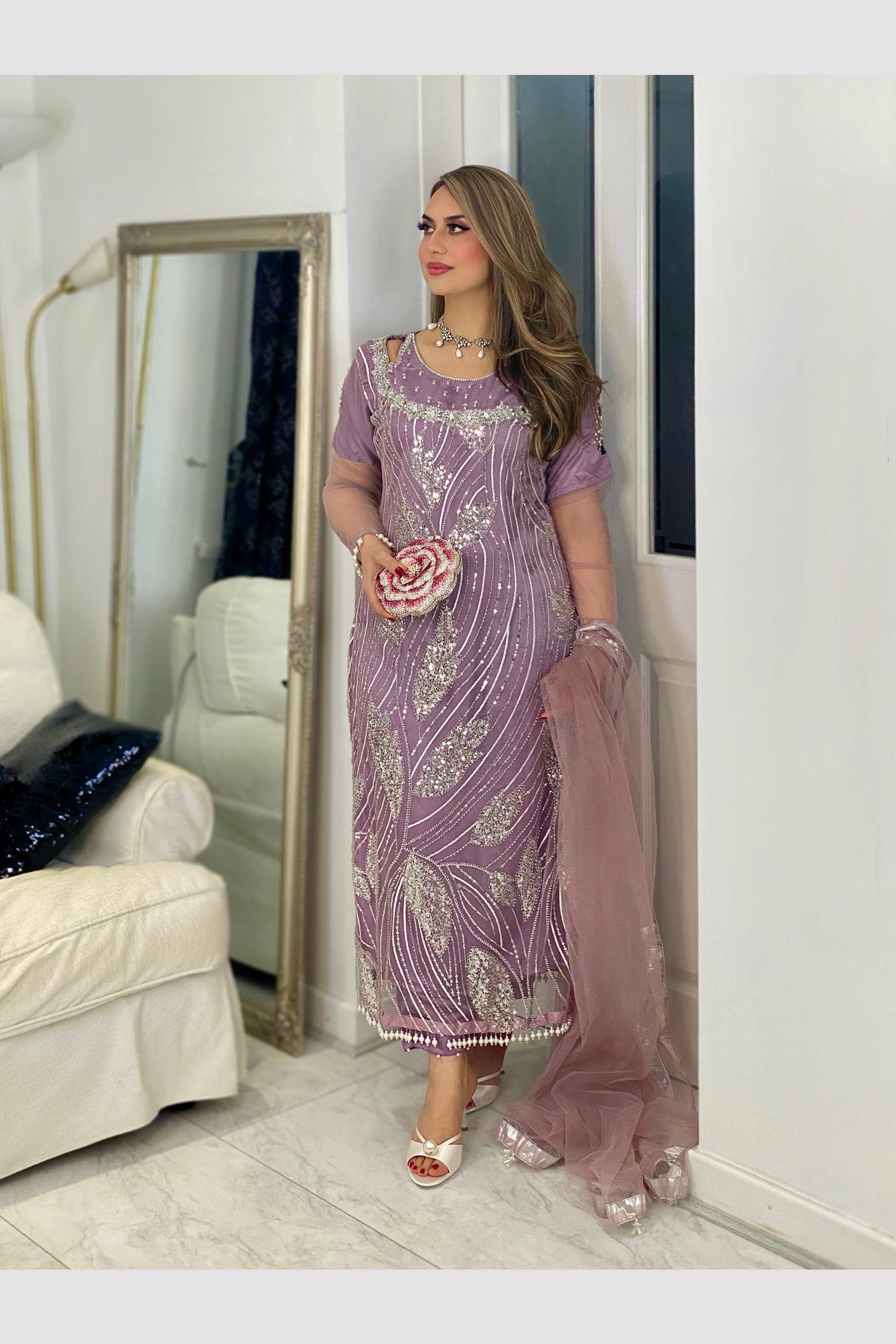 • Heavily Embroidered Front: Adorned with intricate cutdana and crystal details on the daman.