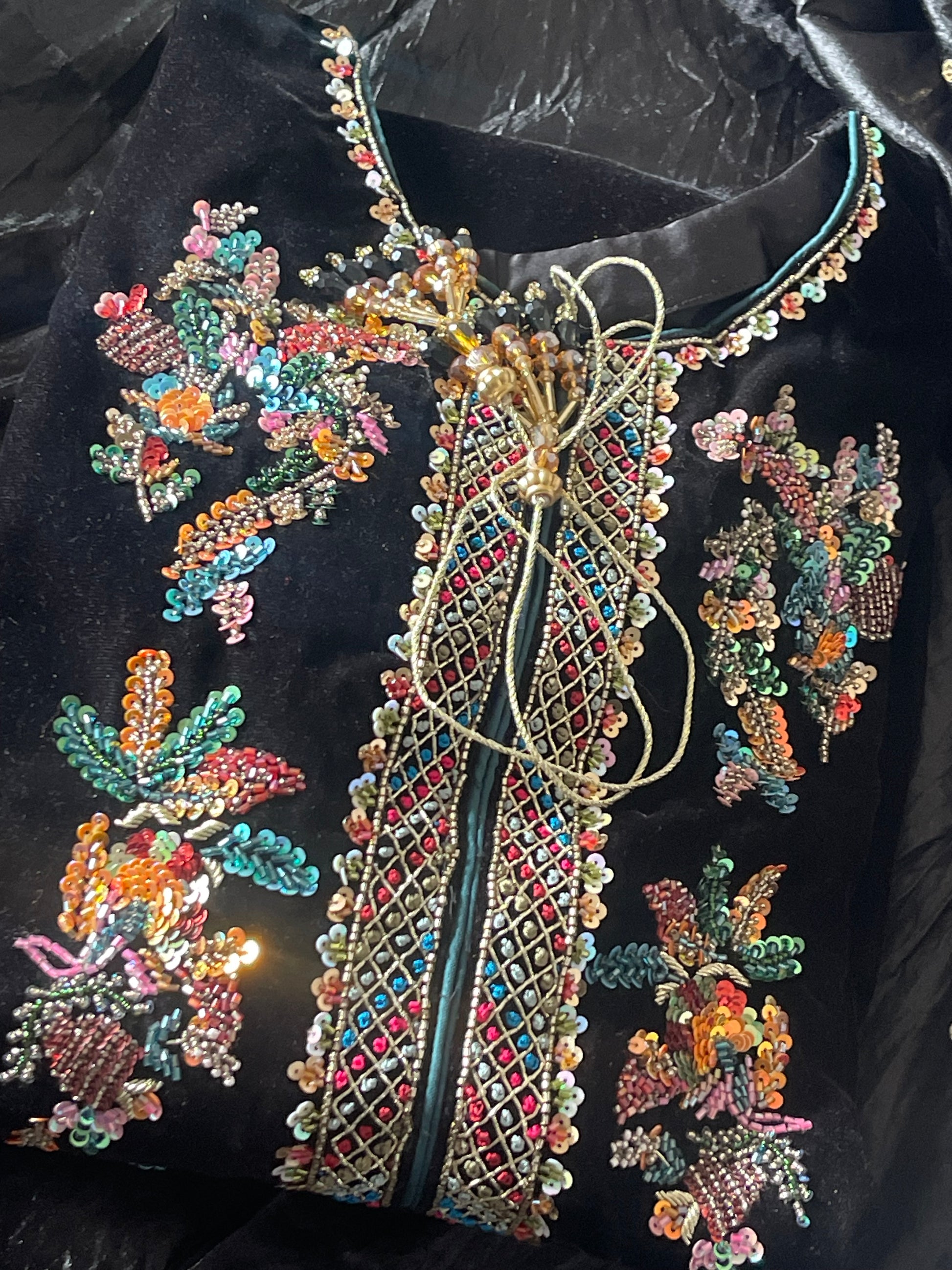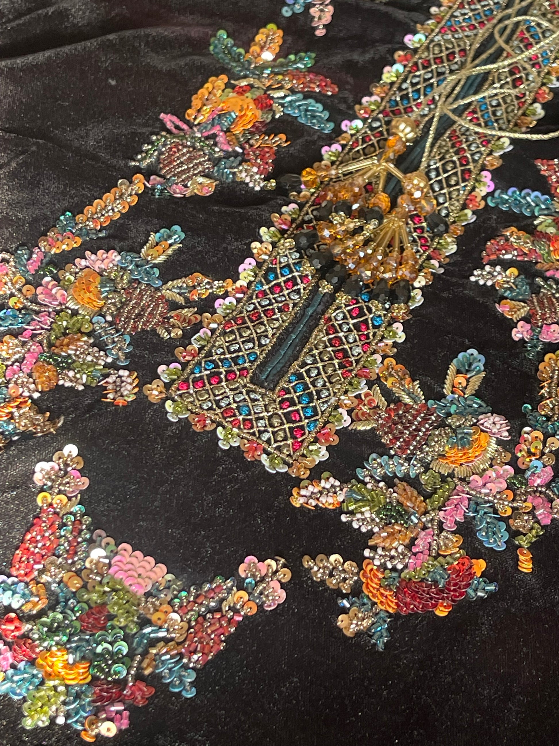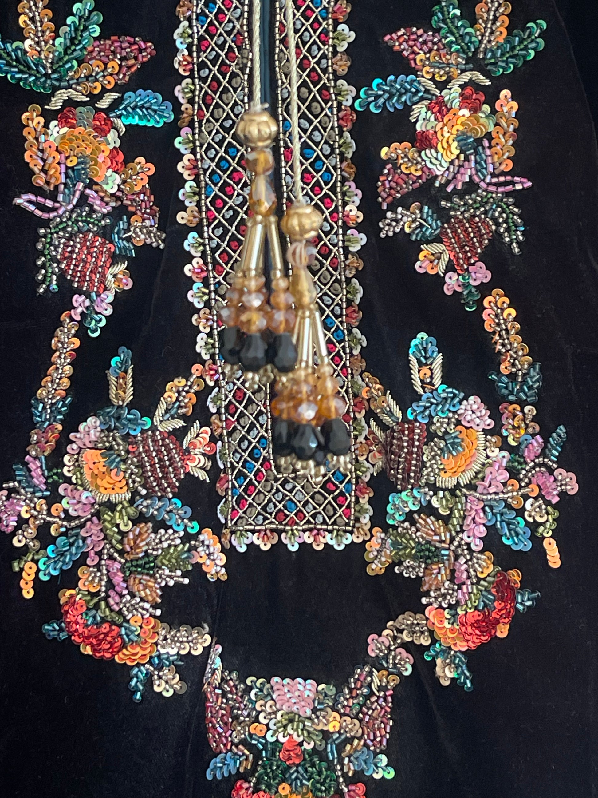 Stunning Velvet Shirt with Multi-Colored Embroidery