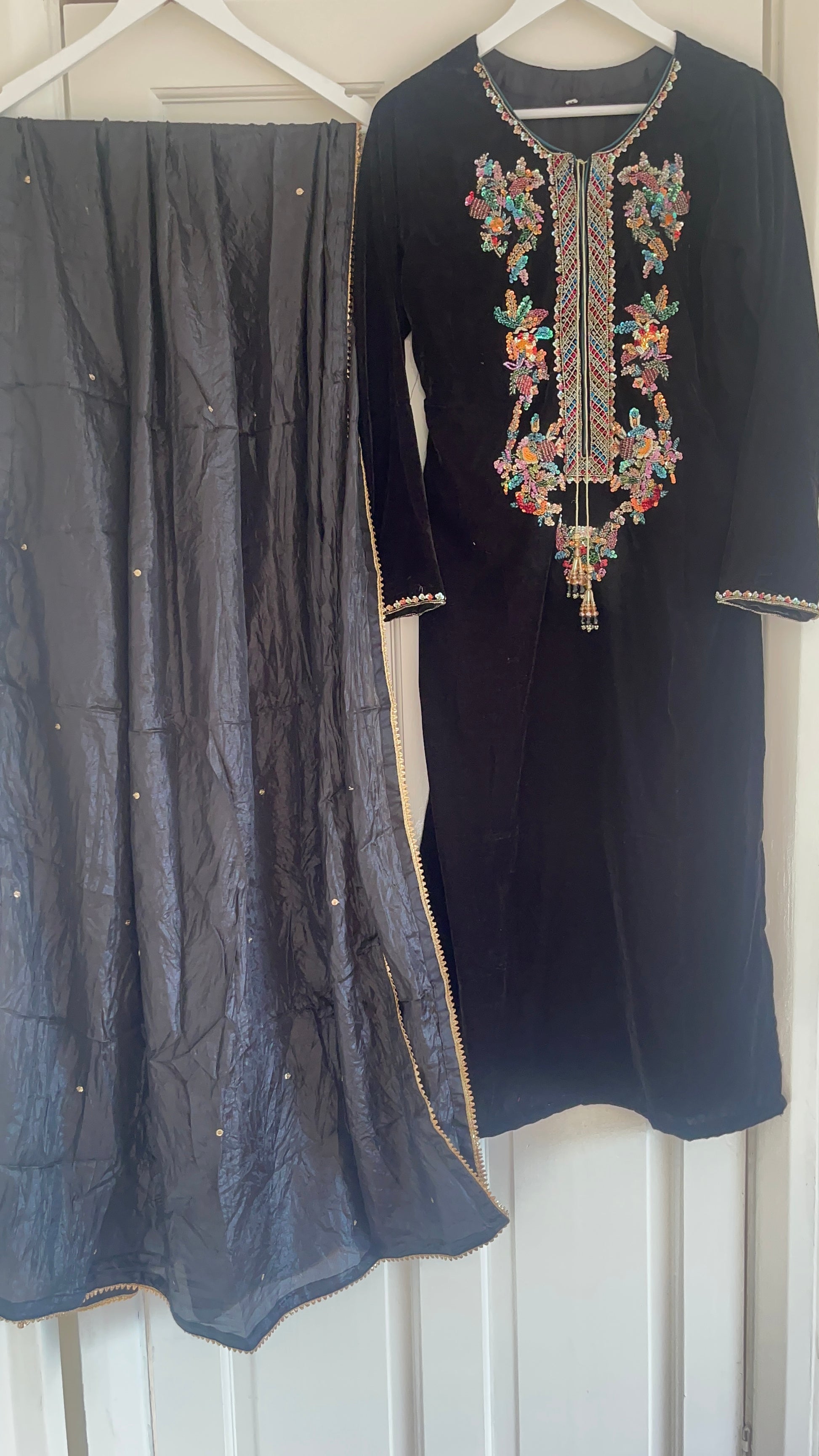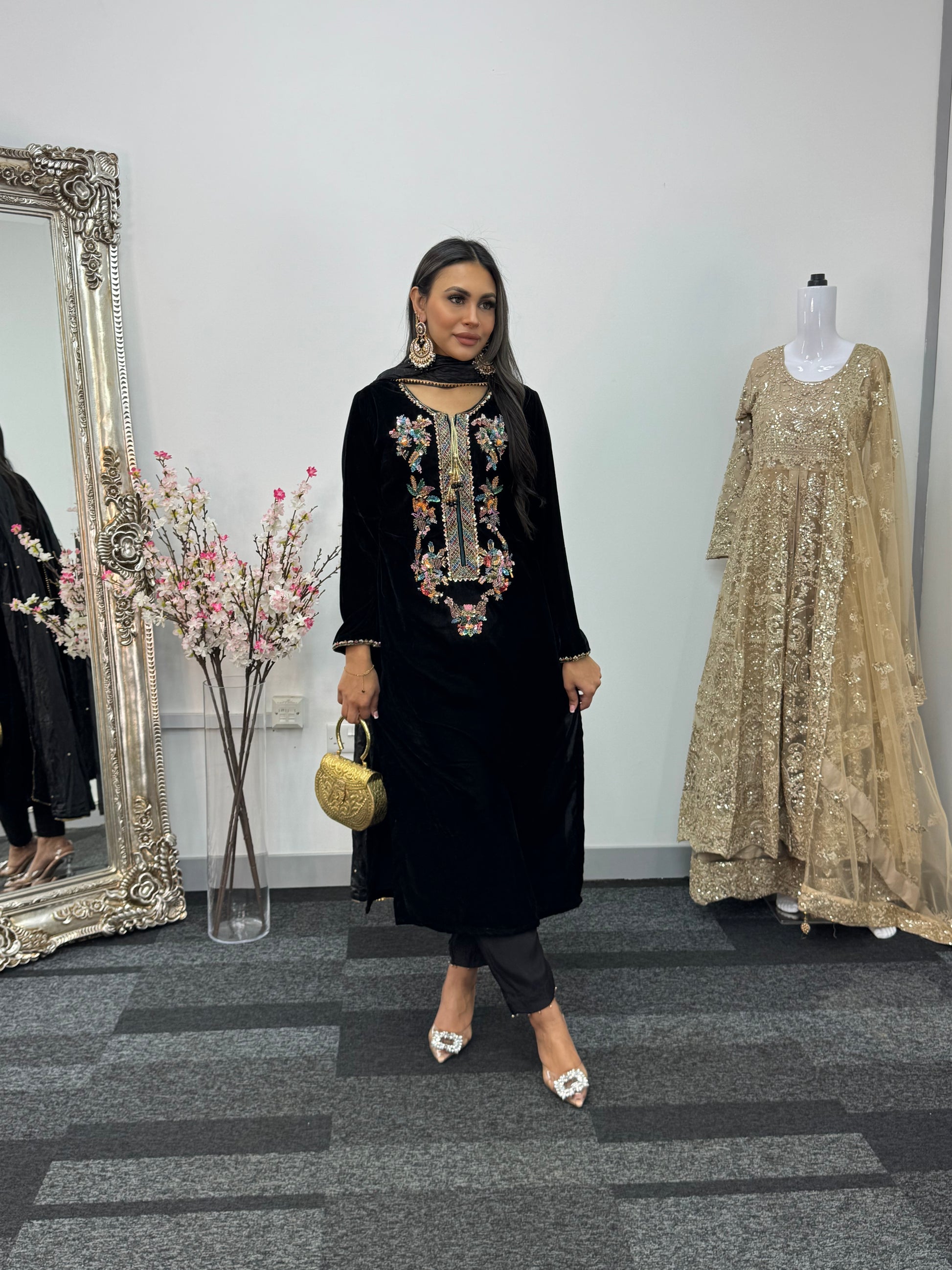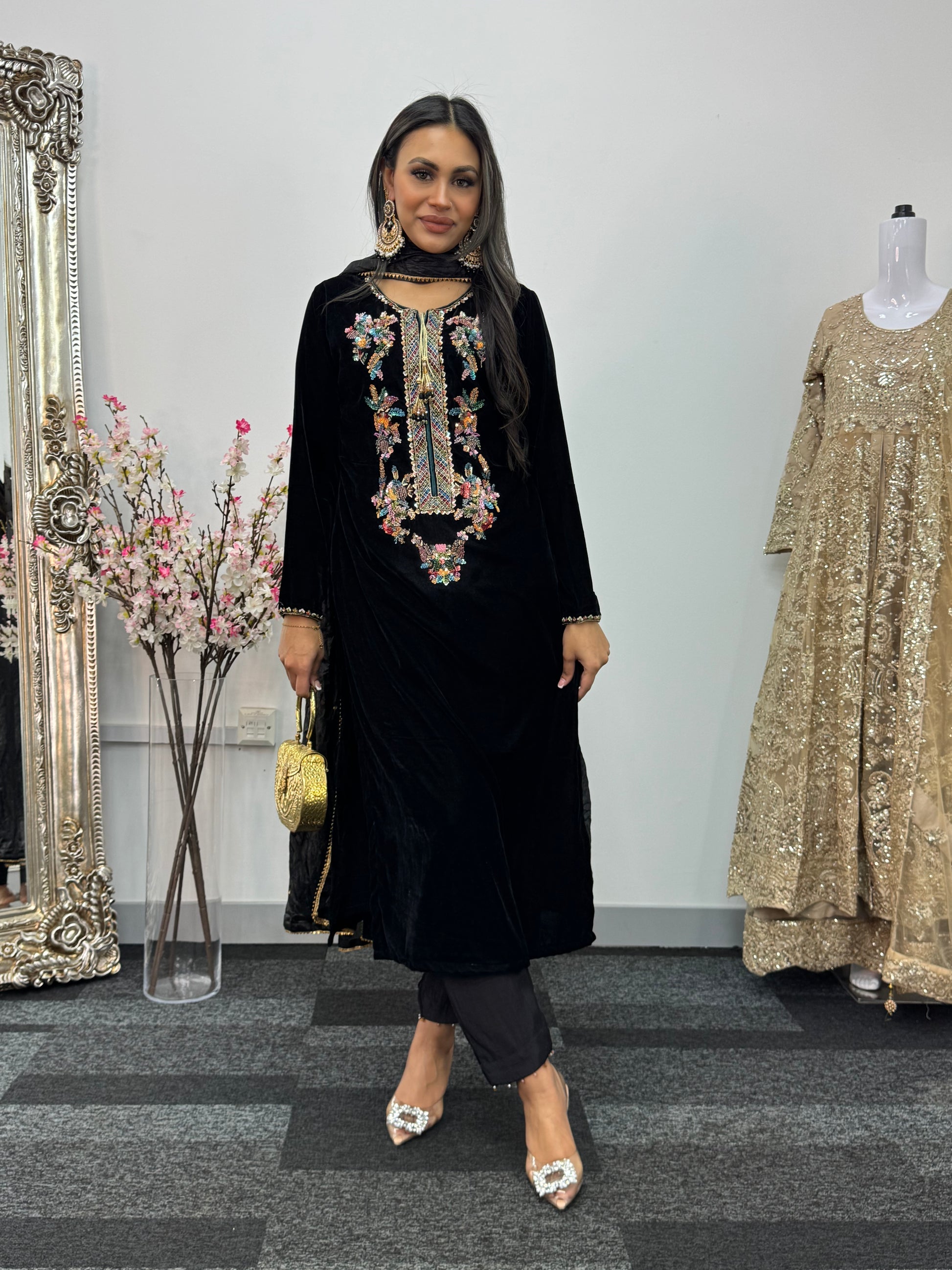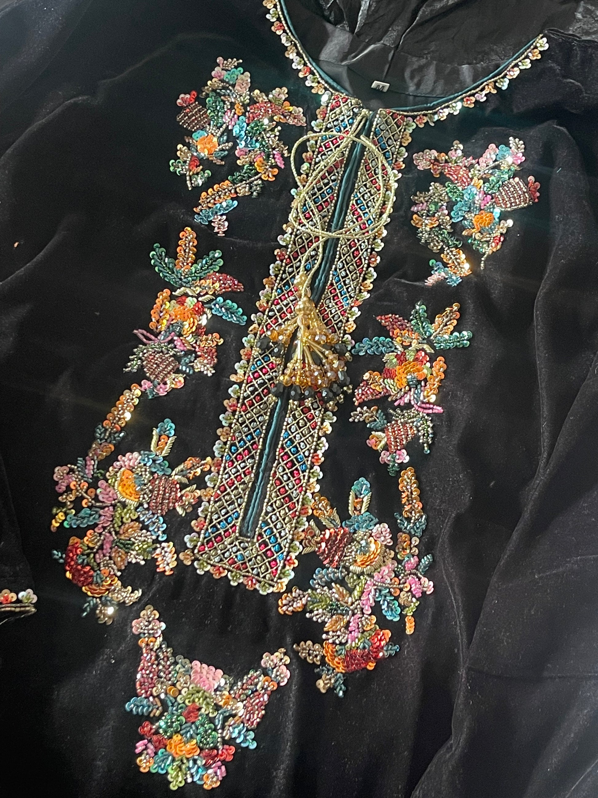 Stunning Velvet Shirt with Multi-Colored Embroidery