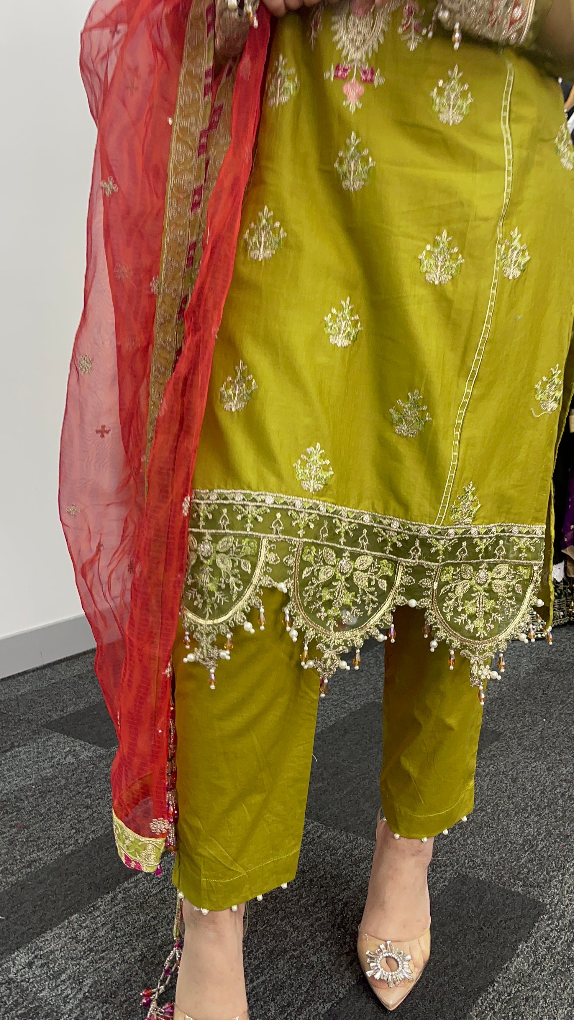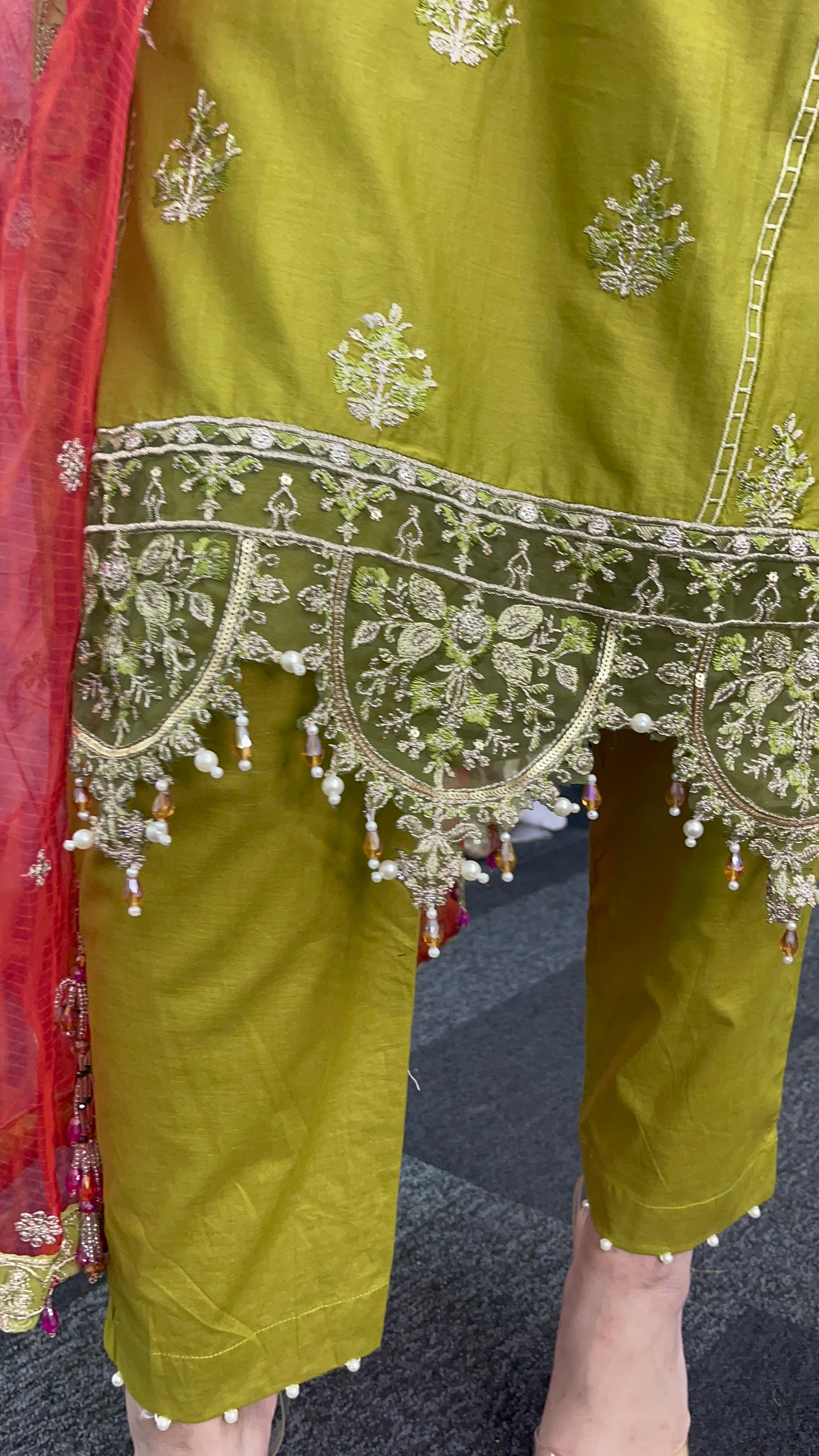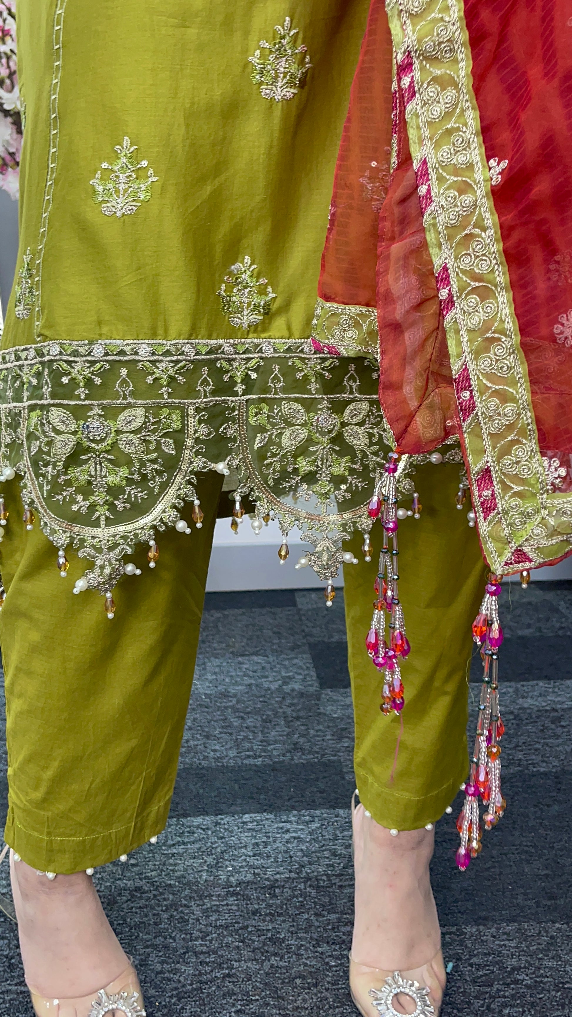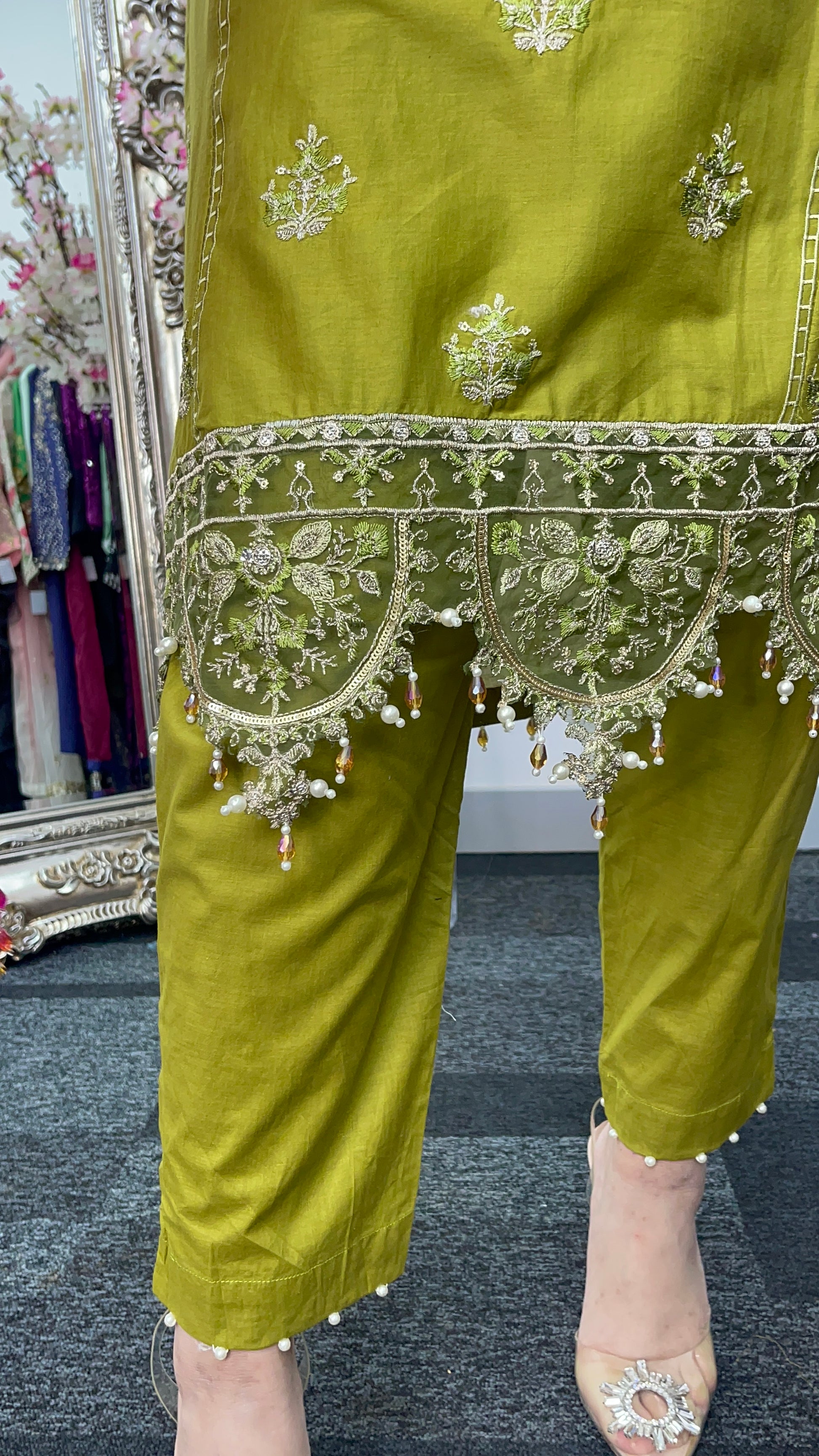 hand attached crystals and beads on daman