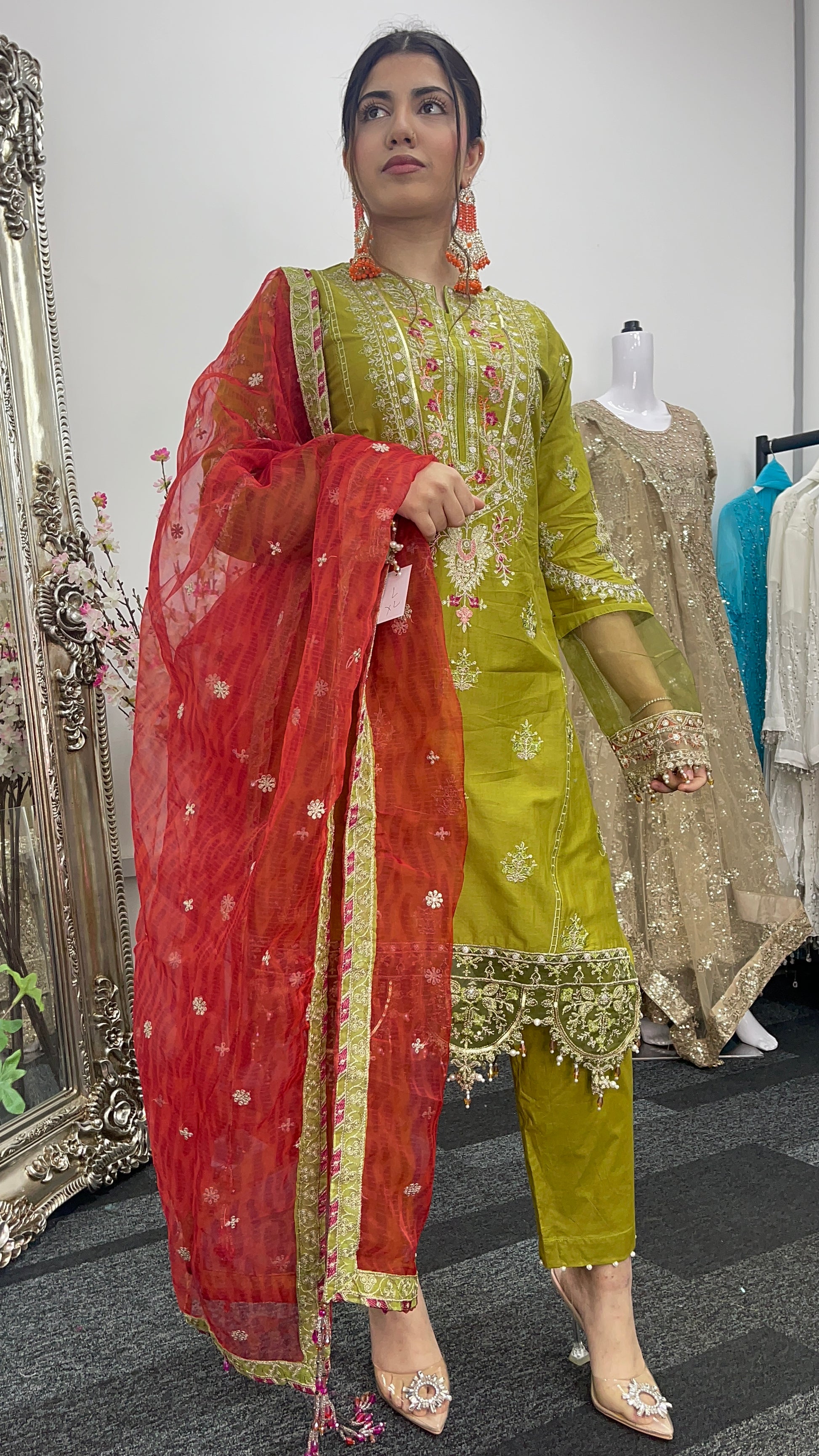 Shola _ Maria B inspired - Green & Orange -