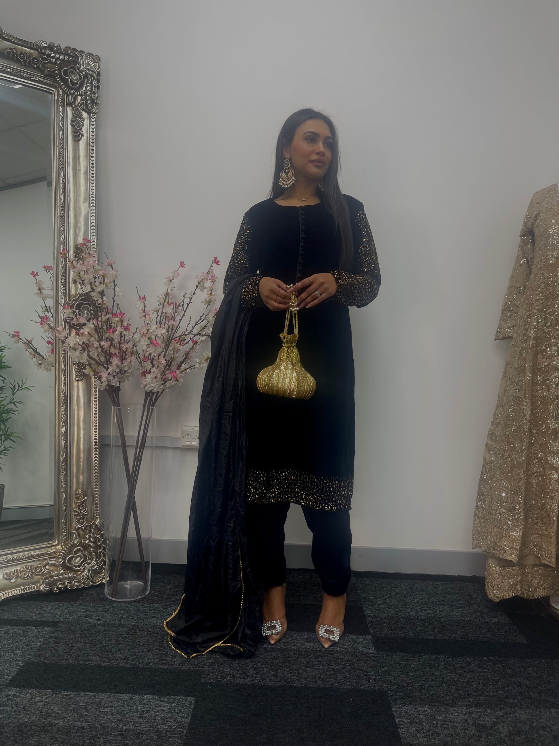 Swarovski Velvet- 3 pc - Winter Collection - Black -AA
