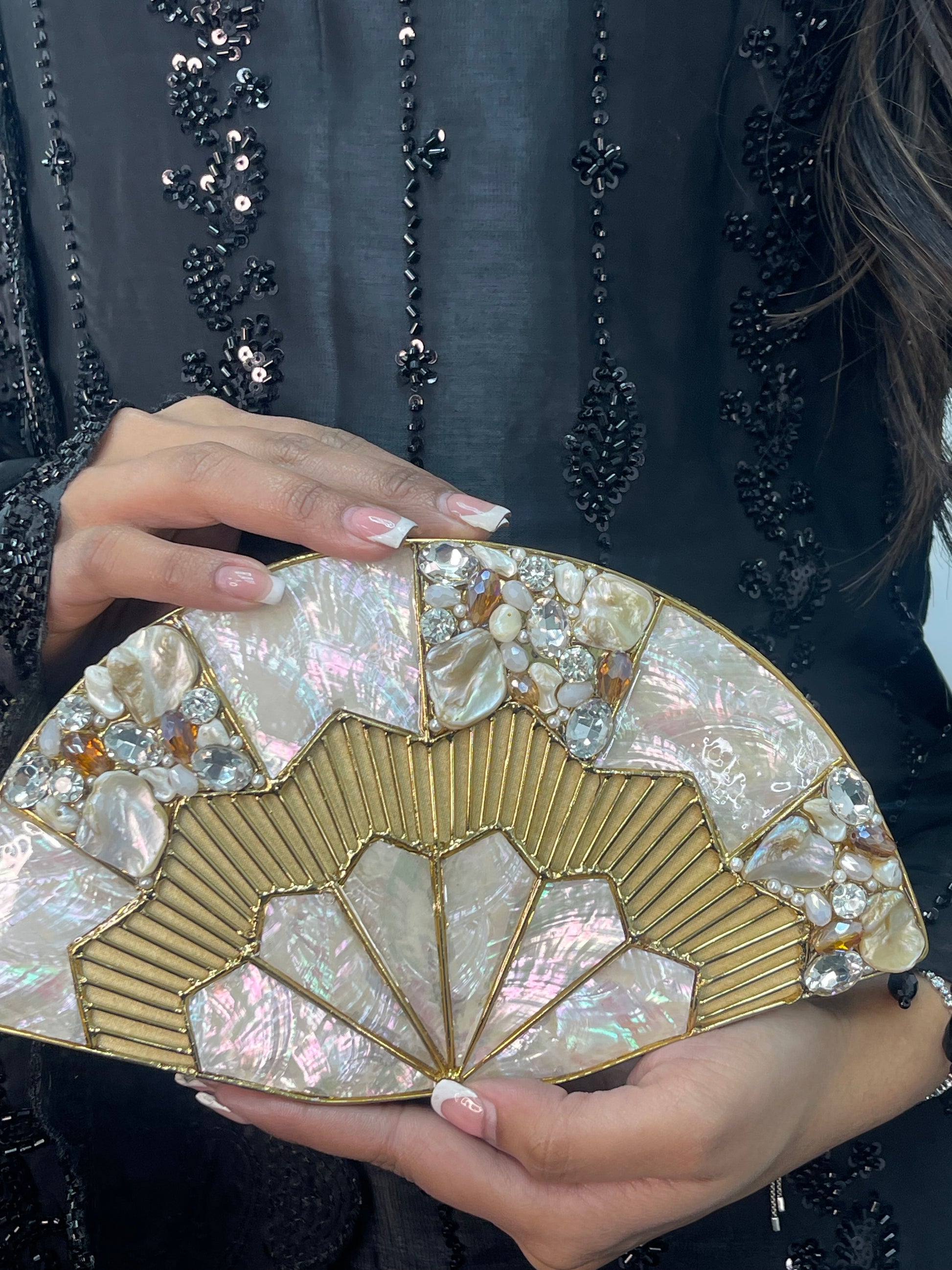3. pearls/crystal details on neckline