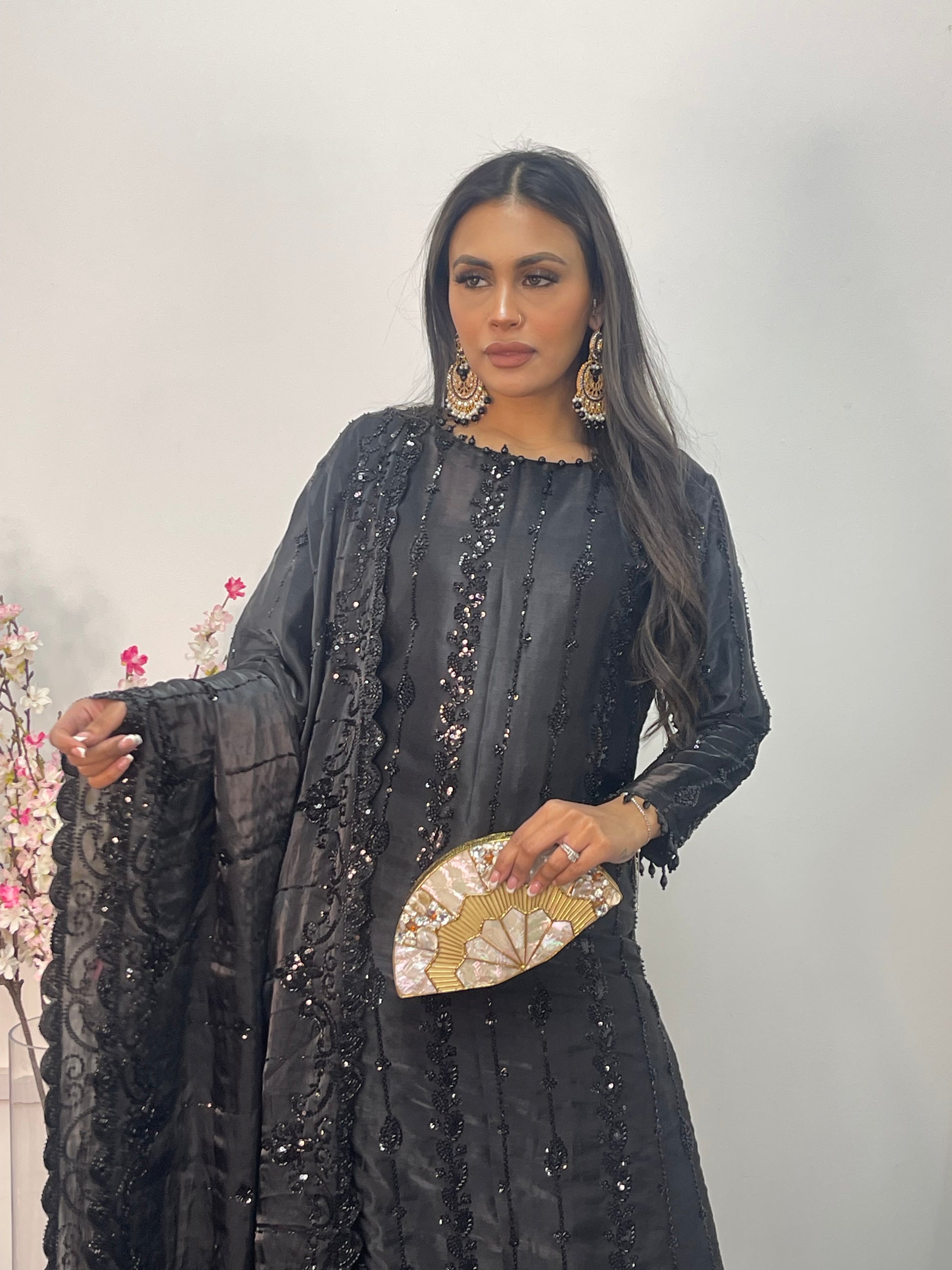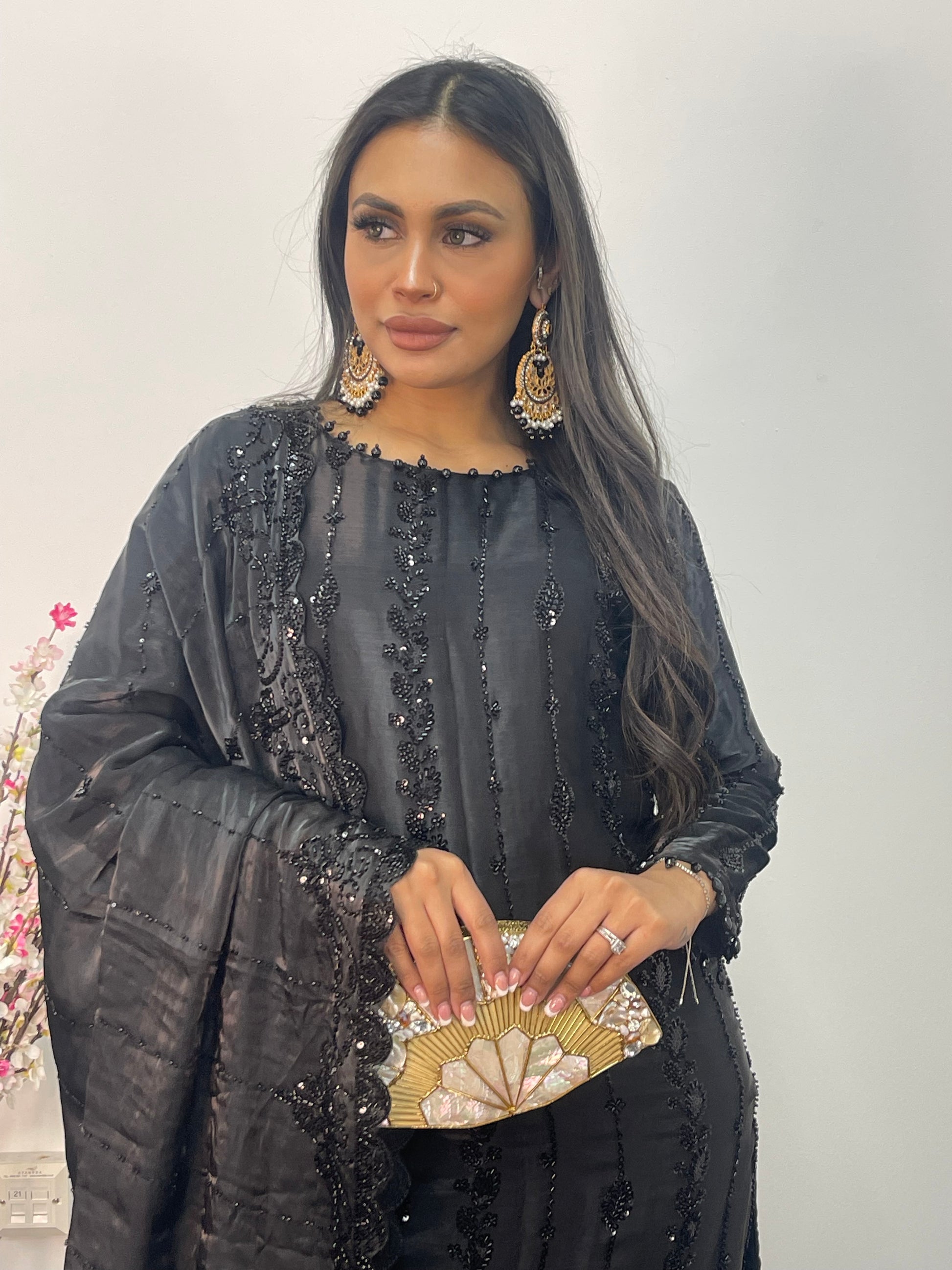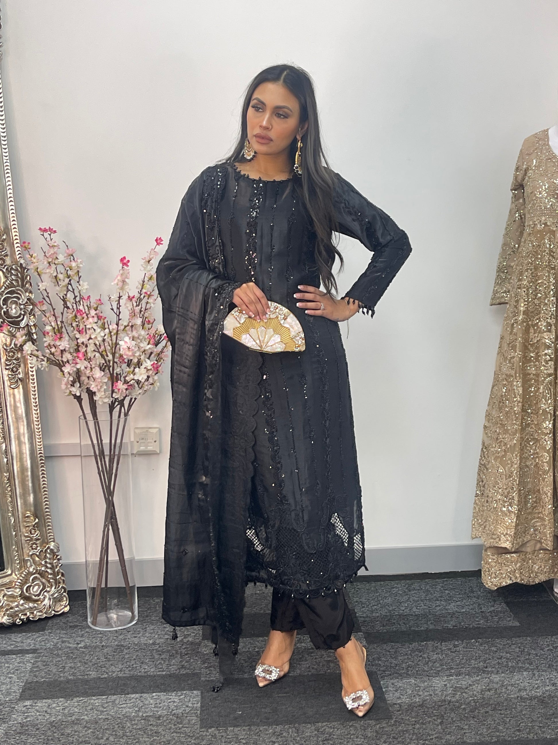 1. Korean silk shirt with heavily embroidered cutdana work