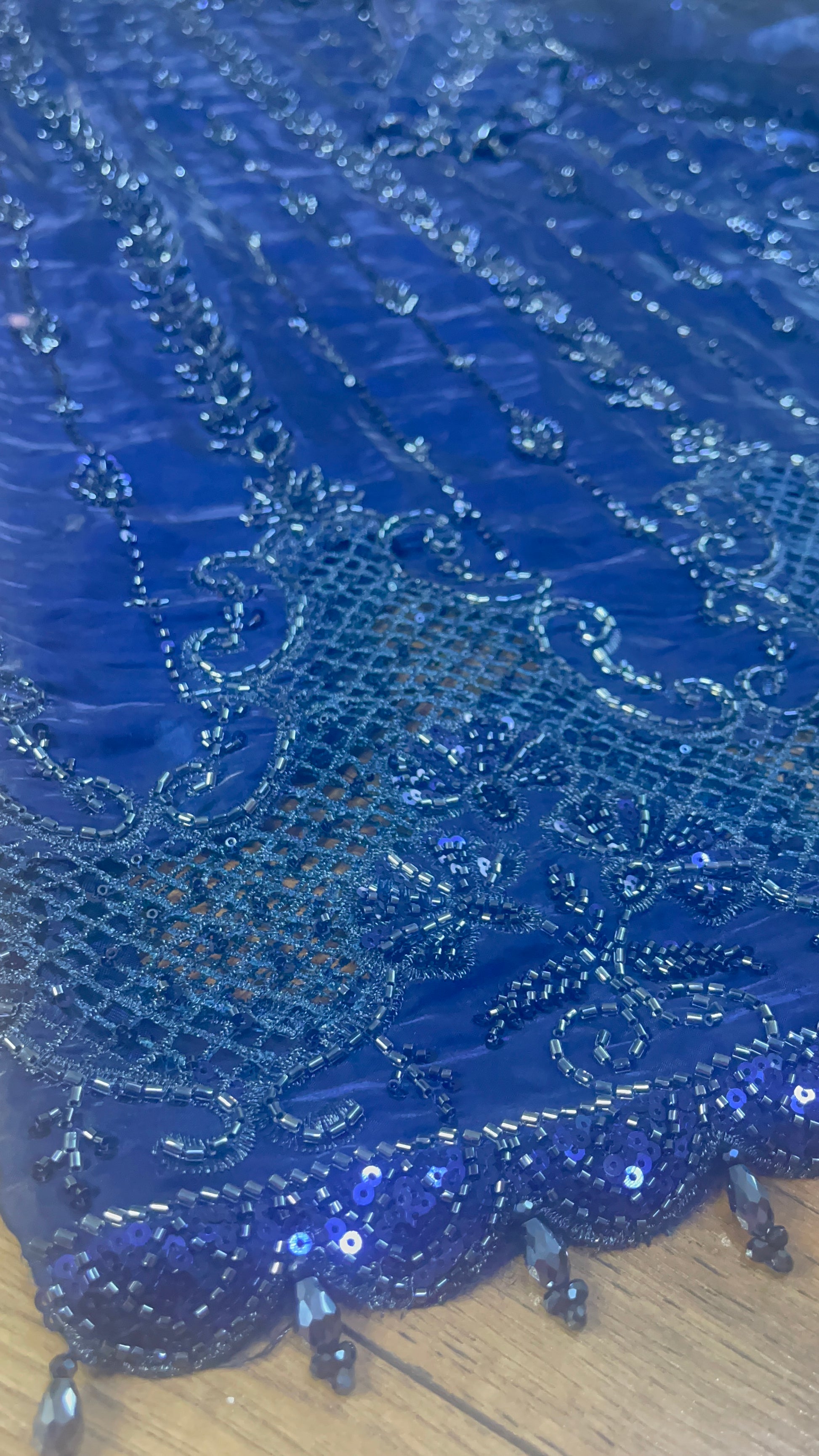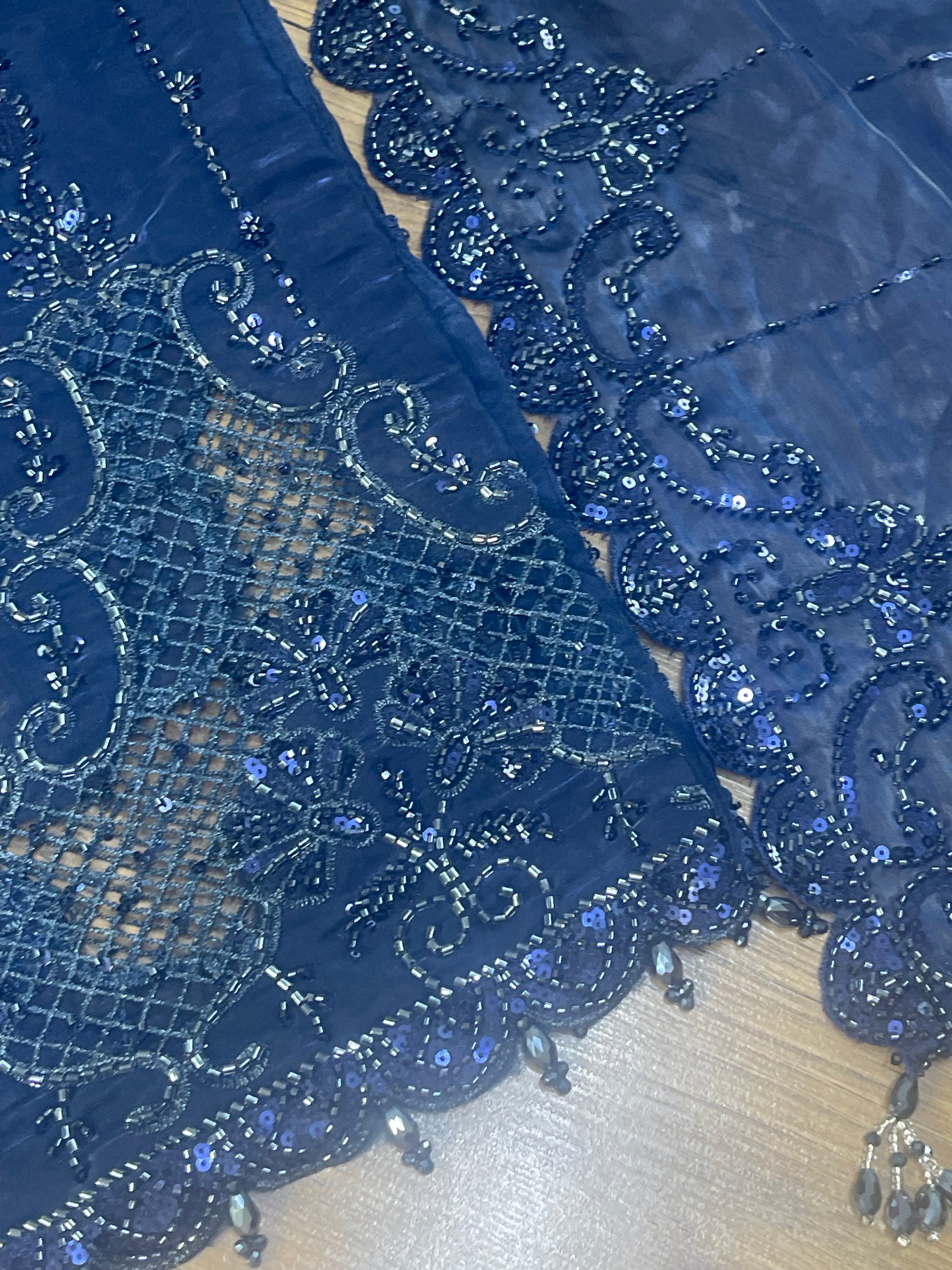 Tara - Korean Silk Cut Dana - Party Wear - CutWork - Navy Blue - taara
