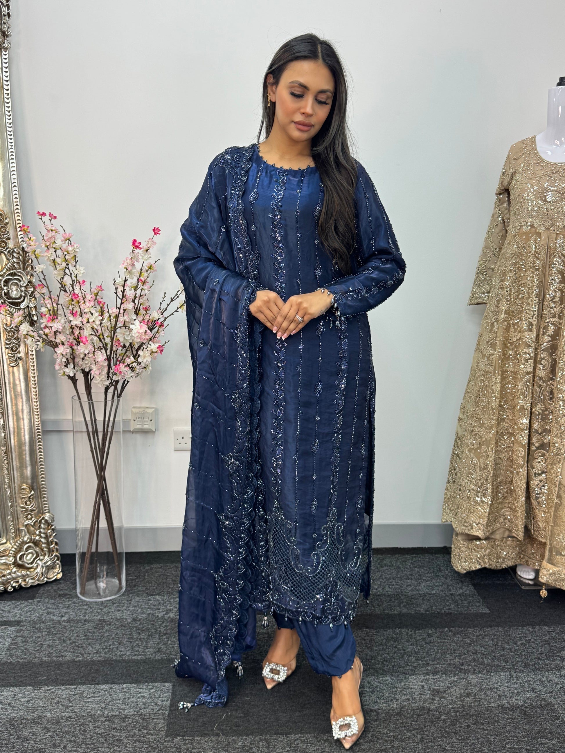 1. Korean silk shirt with heavily embroidered cutdana work