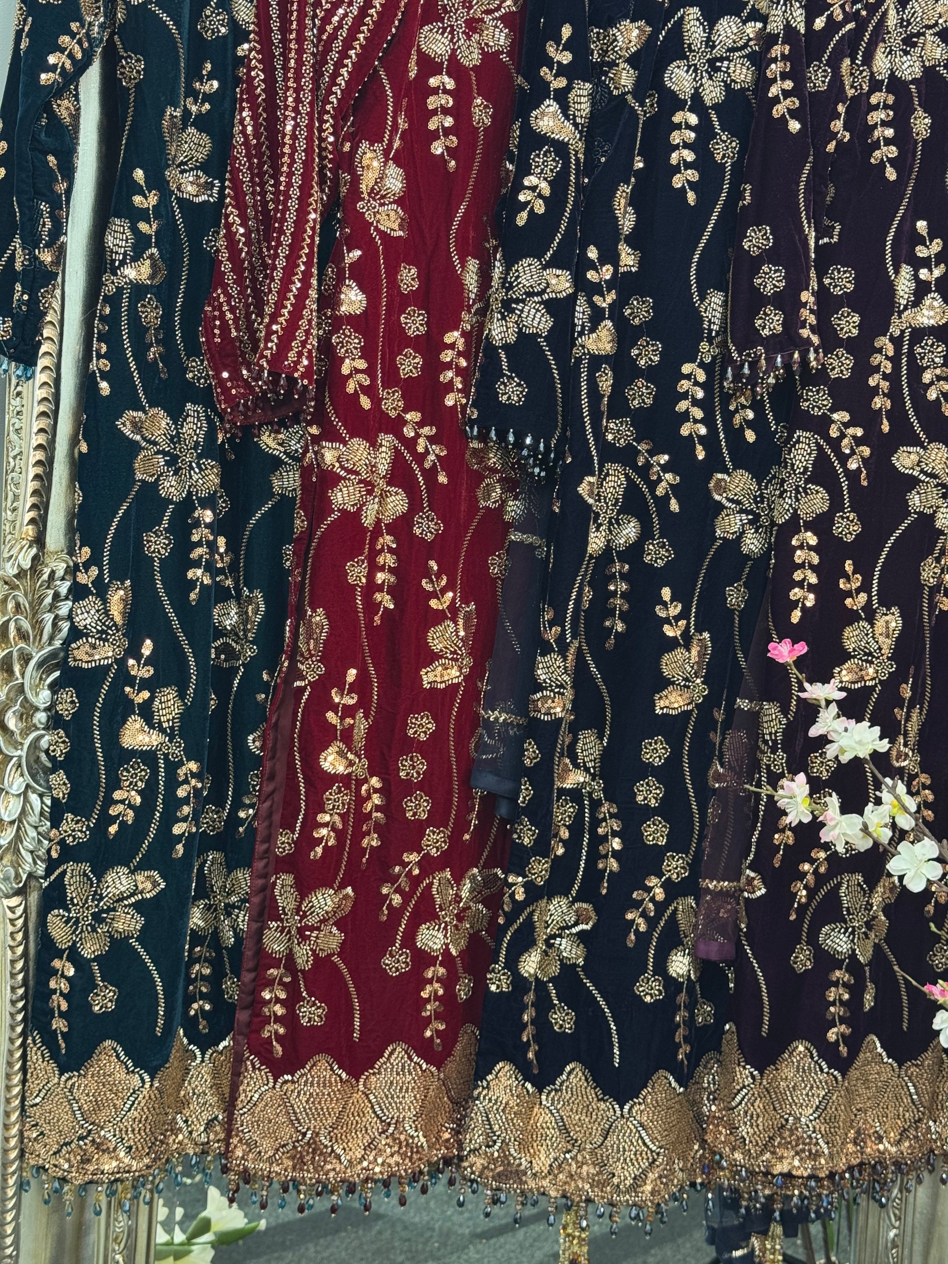 Introducing our New Velvet Cutdana Collection—a stunning blend of luxury, artistry, and contemporary elegance. Each piece showcases heavy, high-quality Cutdana embroidery meticulously crafted on the front, back, and sleeves. The neckline features an embellished adds-work design with a modern cut-out style, creating a bold yet sophisticated look.